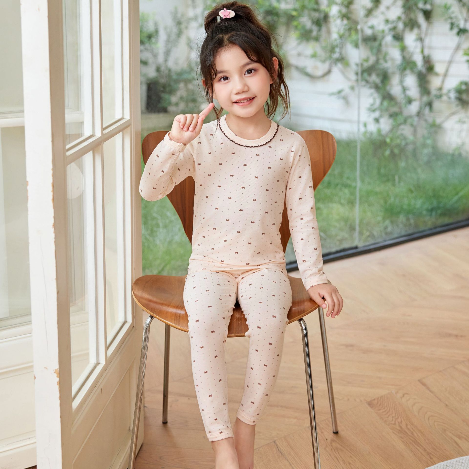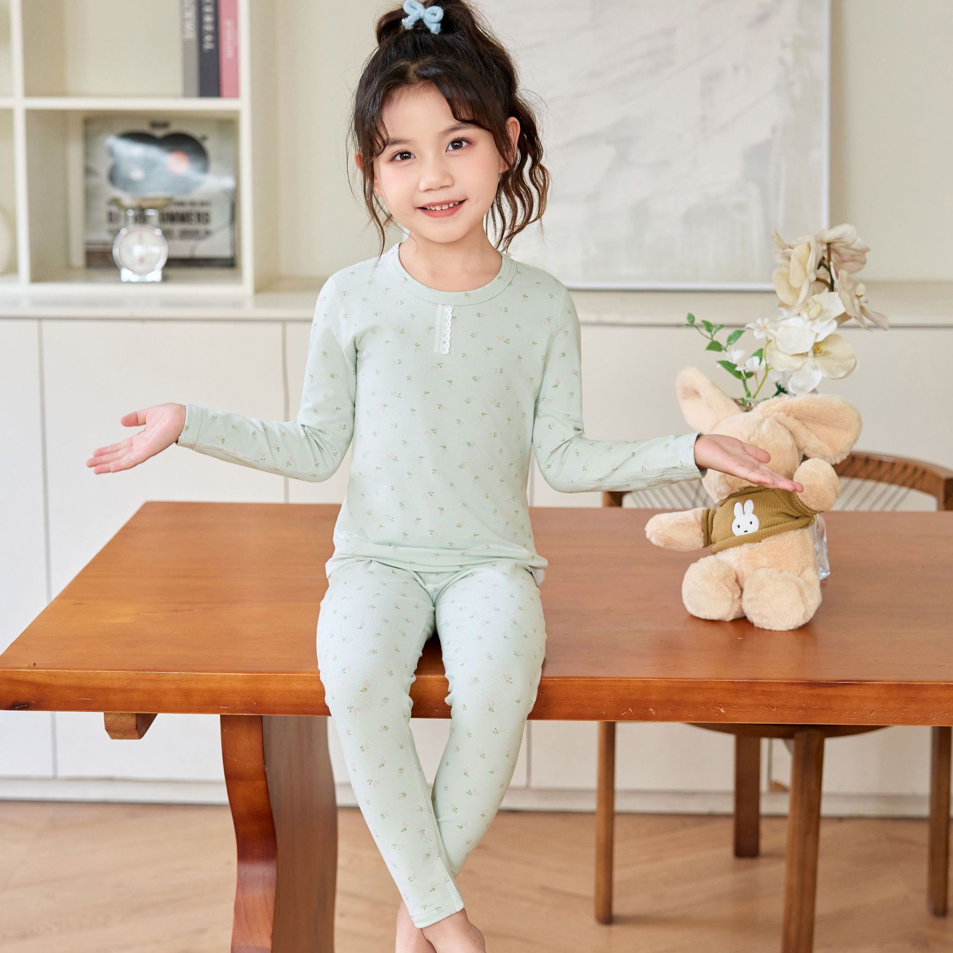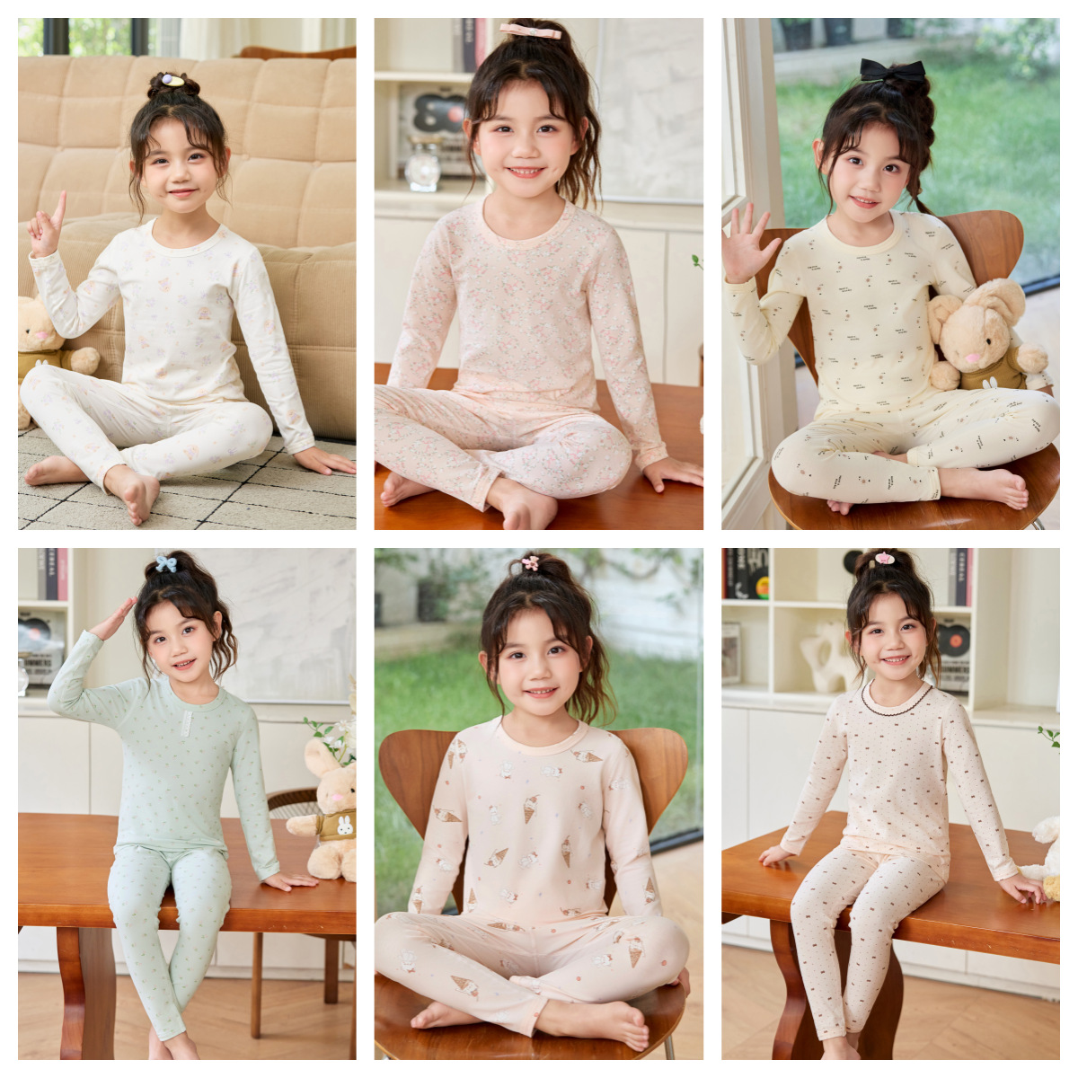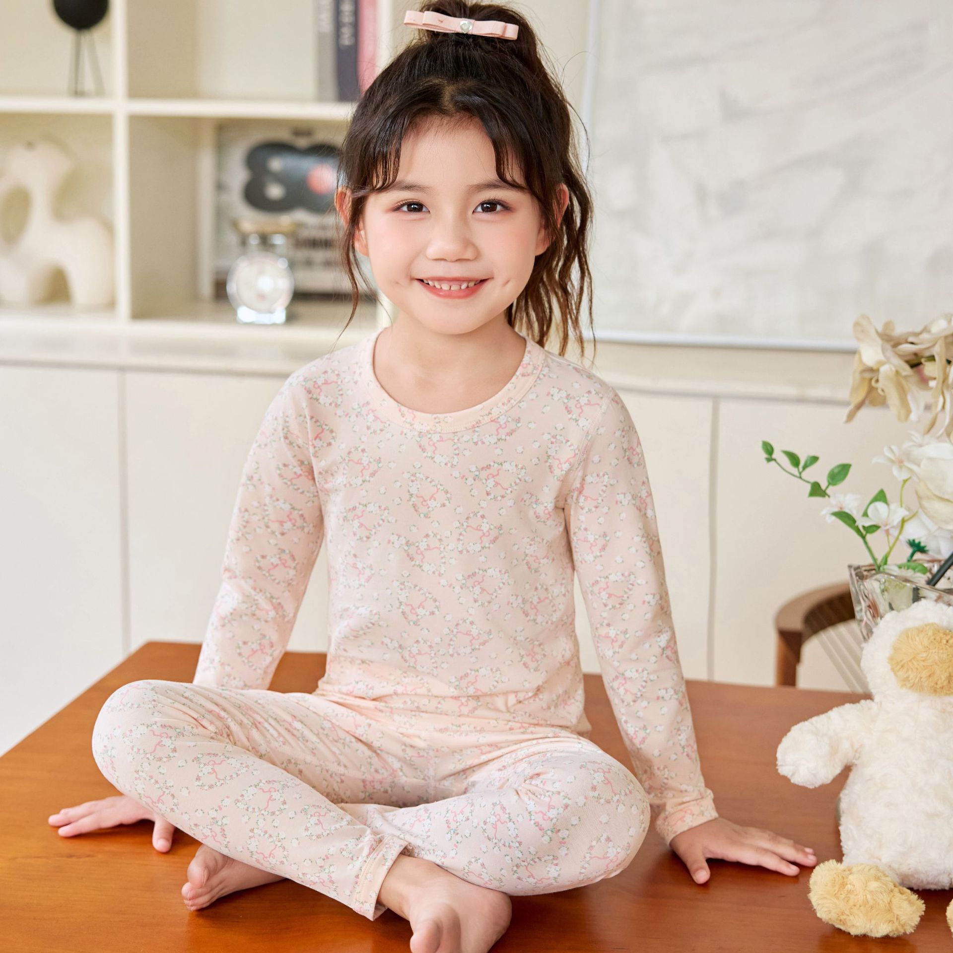 어린이 홈웨어 한국 스타일 무봉제 기모 라이크라 면 만화 캐릭터 가을옷 세트 따뜻한 속옷 귀여운 스타일스토어 가기
