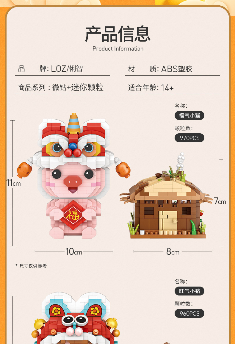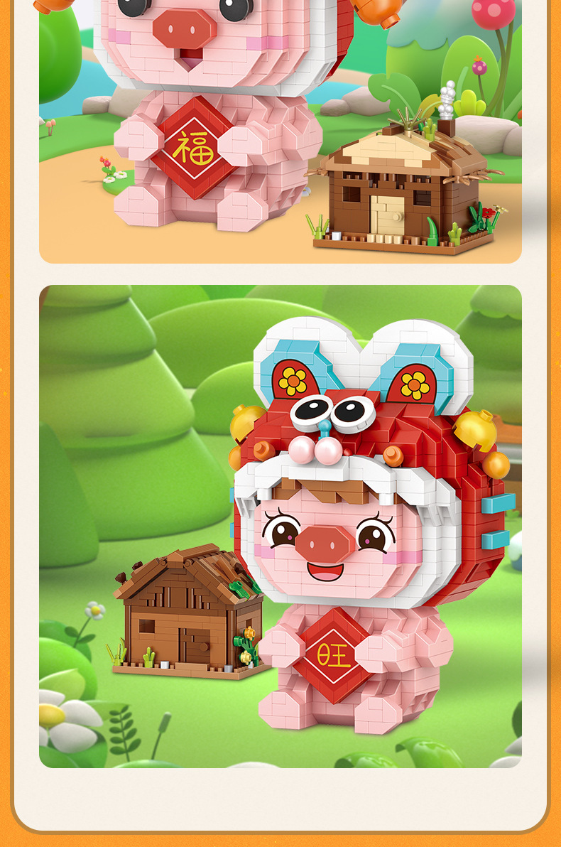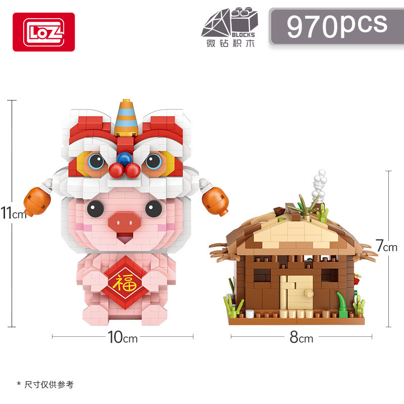 LOZ8921 돼지 마이크로 입자 빌딩 블록 어린이 빌딩 블록 장난감 소년 소녀 생활 장식품 상서로운 선물 국경스토어 가기