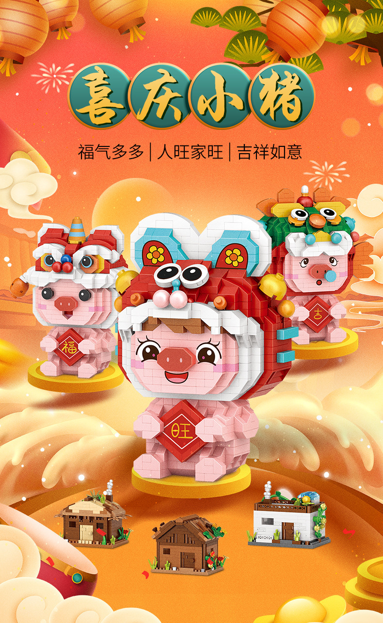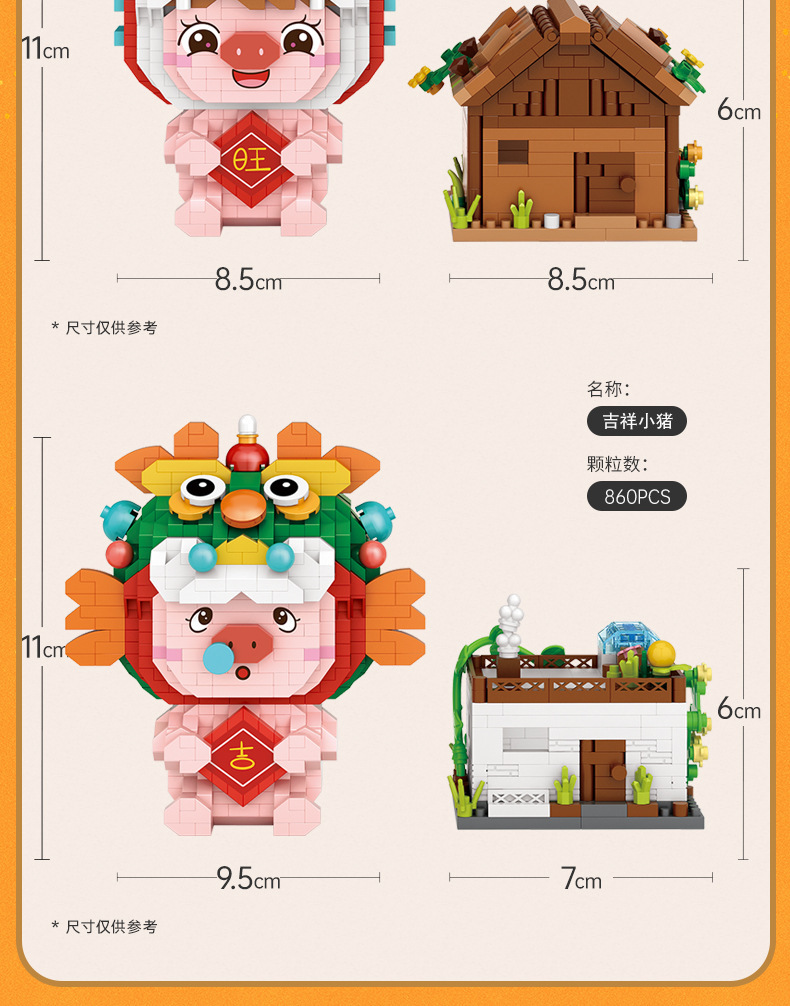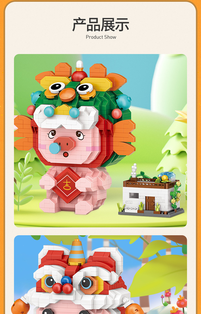 LOZ8921 돼지 마이크로 입자 빌딩 블록 어린이 빌딩 블록 장난감 소년 소녀 생활 장식품 상서로운 선물 국경