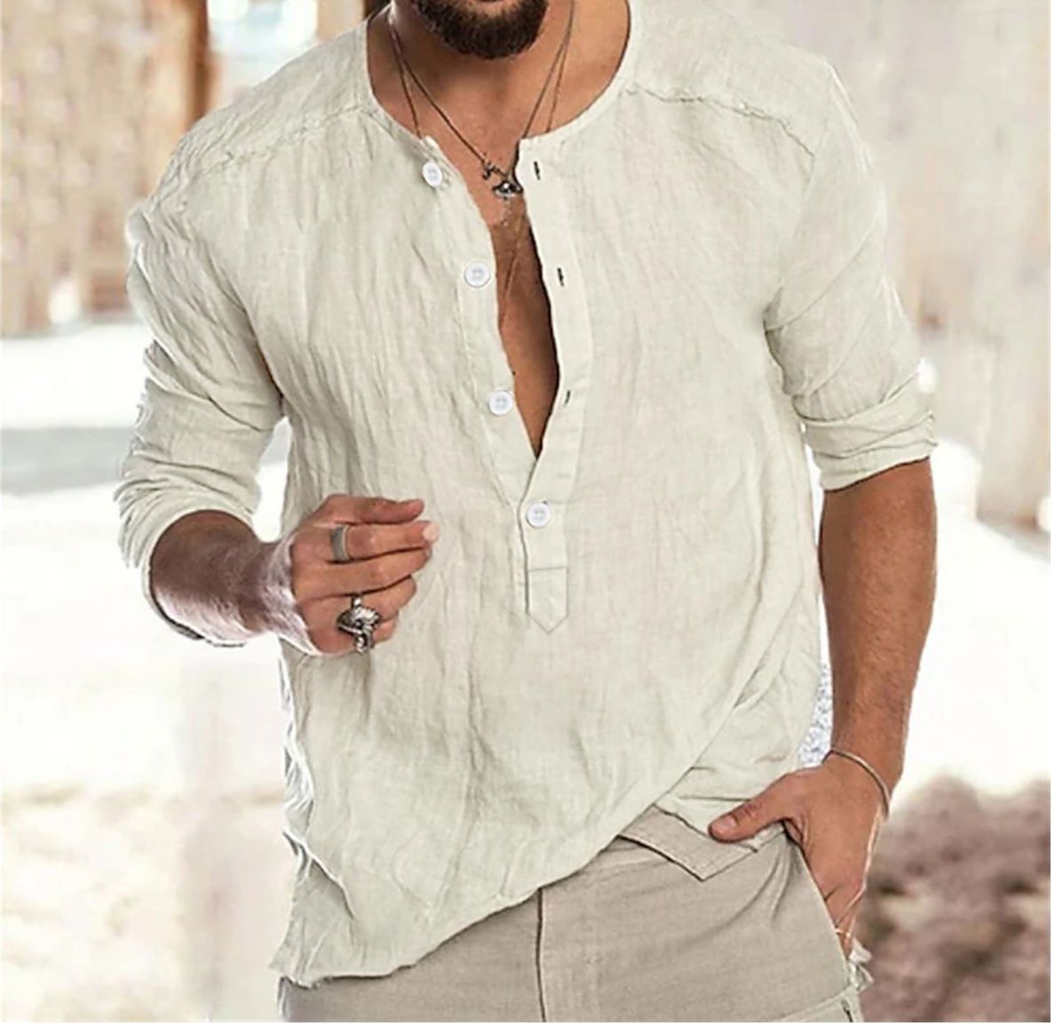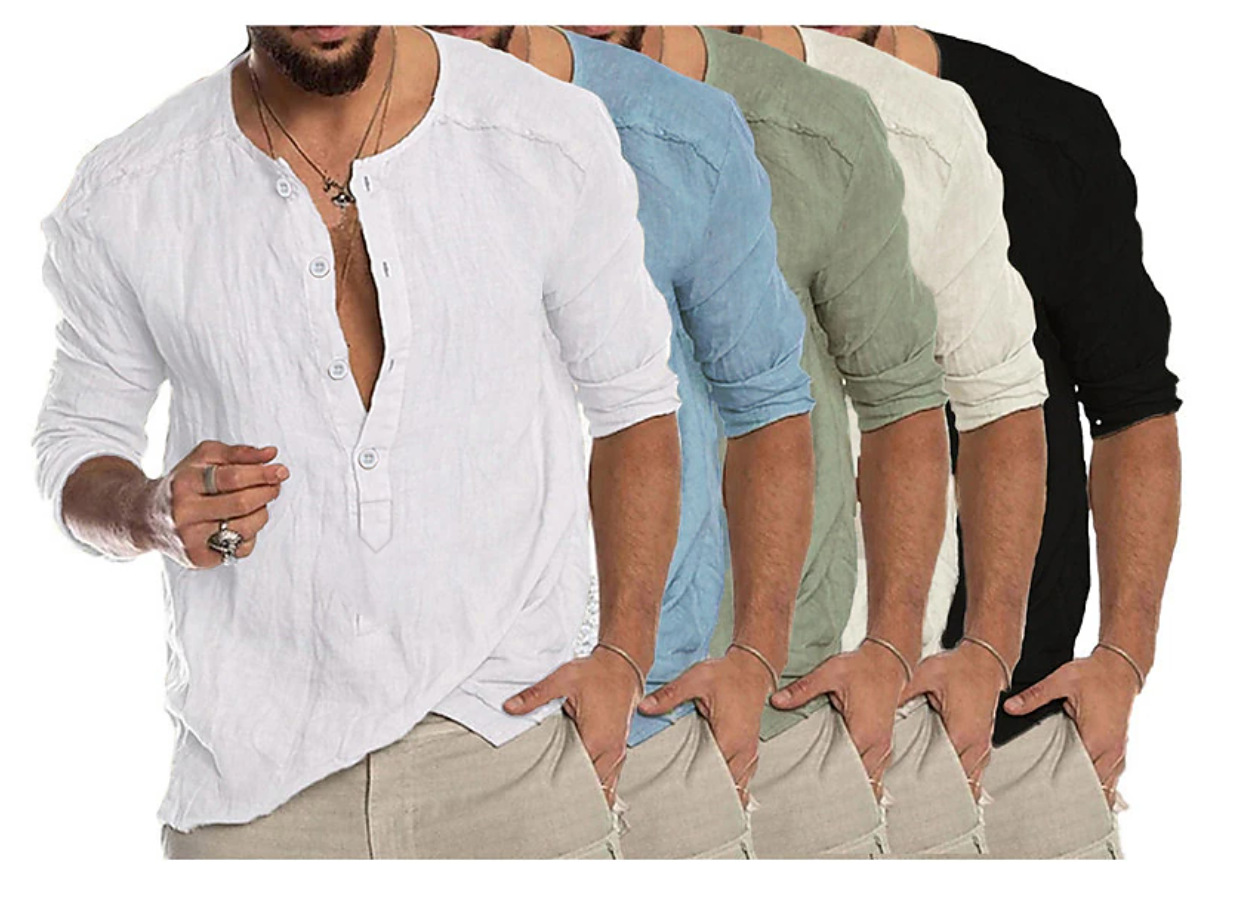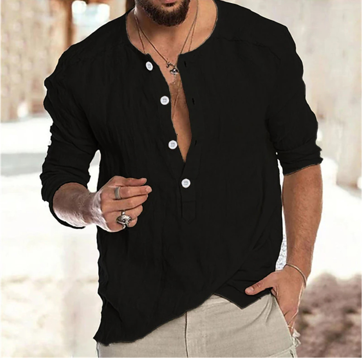 긴 소매 2023 AliExpress 남성용 코튼 리넨 셔츠 느슨한 캐주얼 단색 긴 소매 셔츠 남성용 최고 셔츠