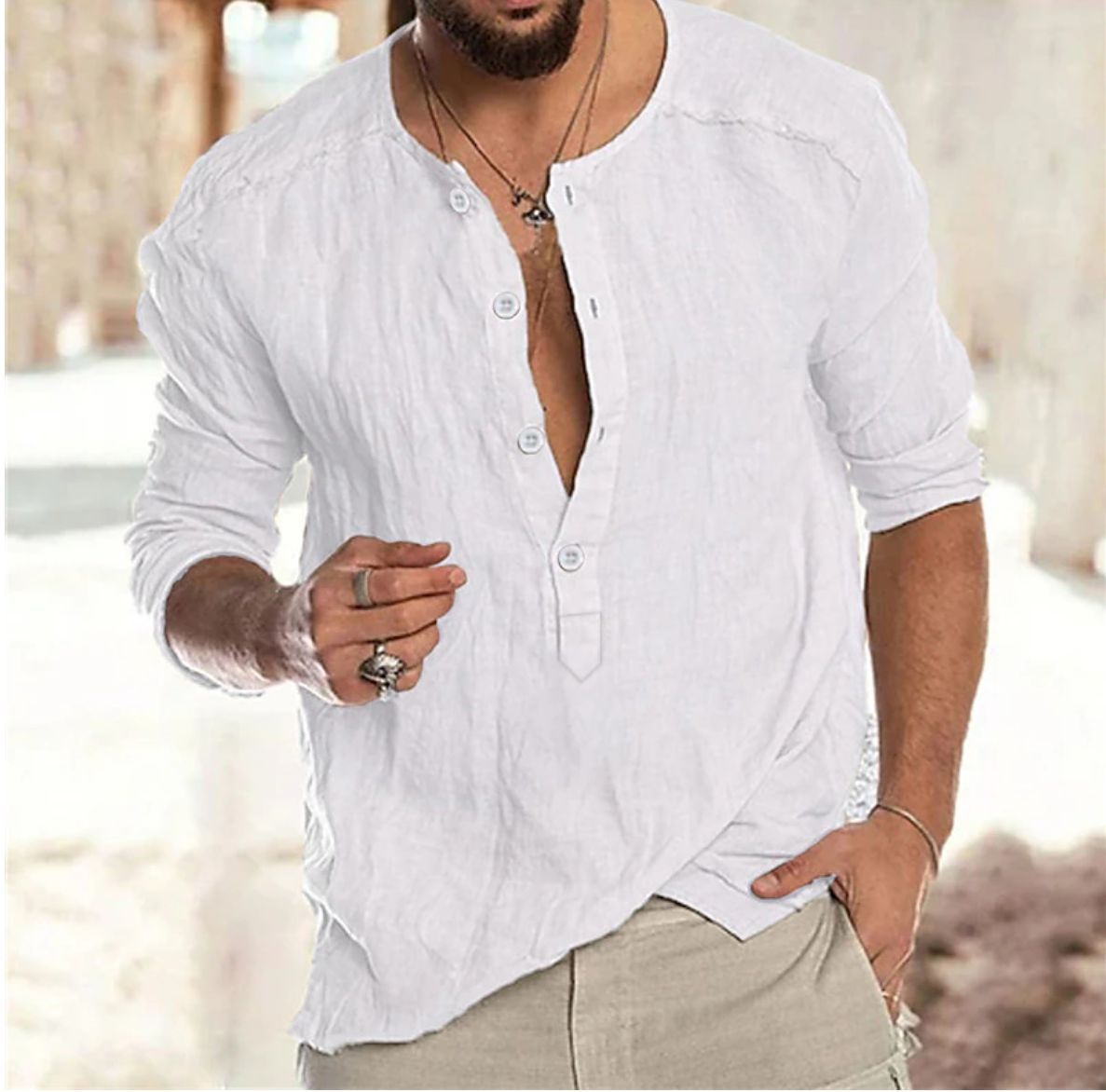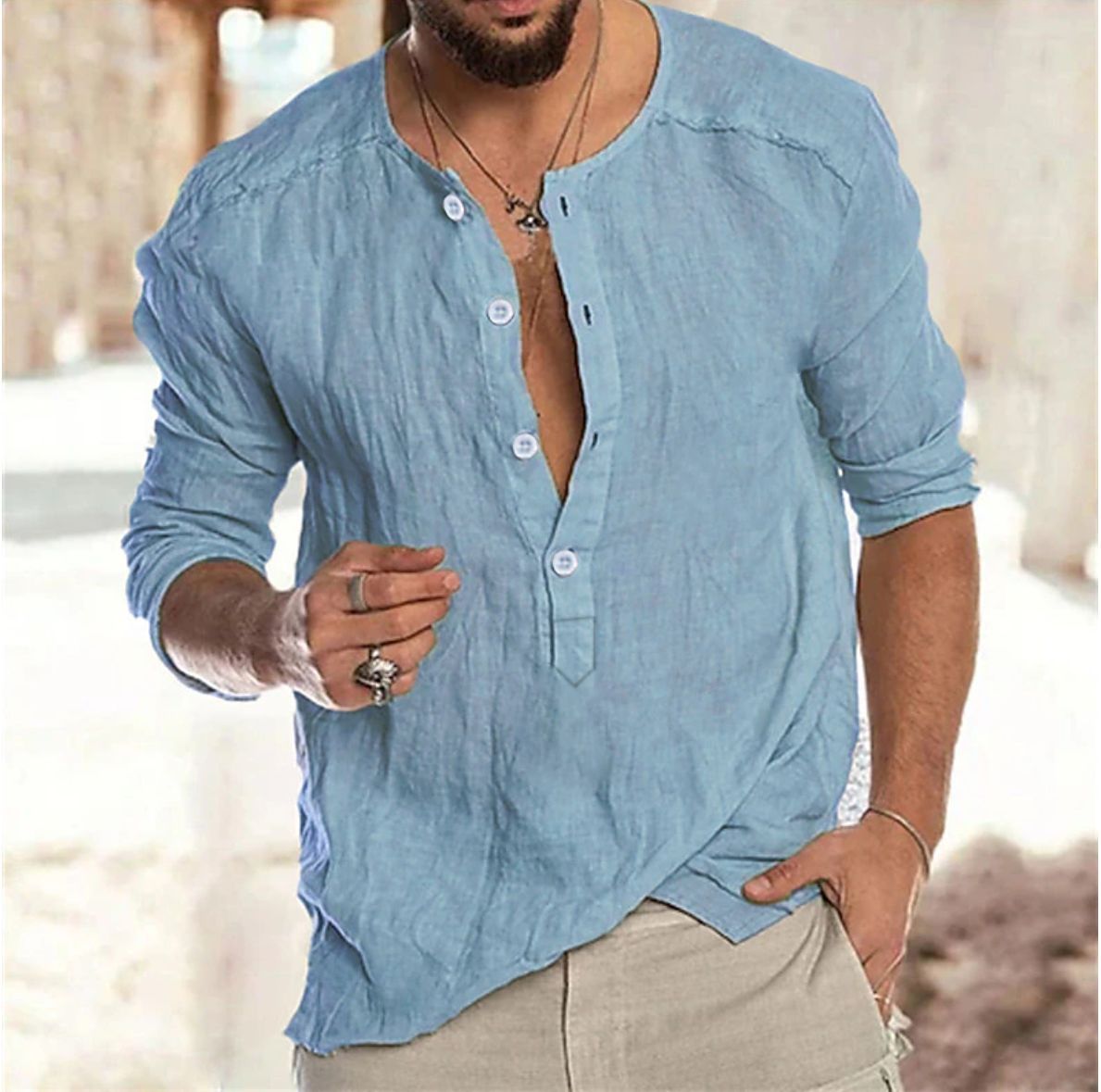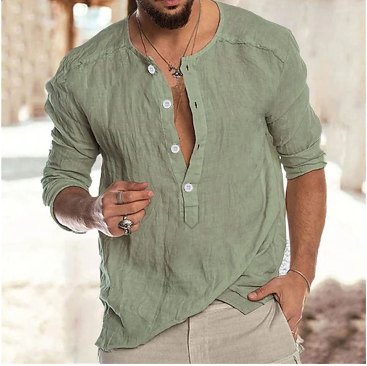 긴 소매 2023 AliExpress 남성용 코튼 리넨 셔츠 느슨한 캐주얼 단색 긴 소매 셔츠 남성용 최고 셔츠
