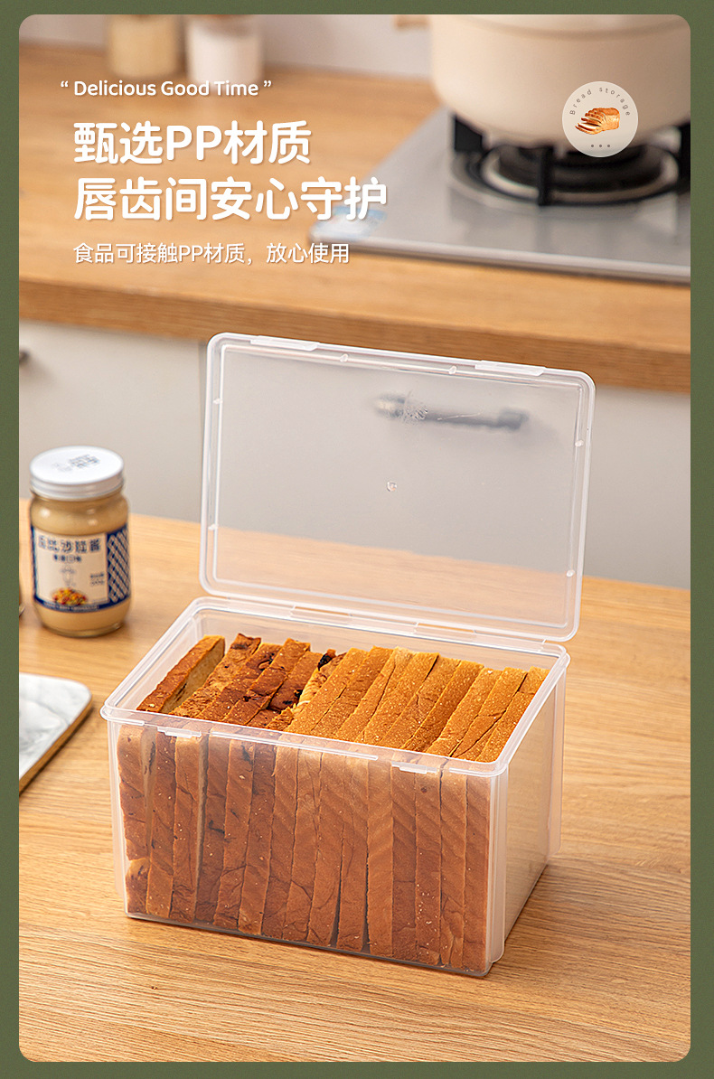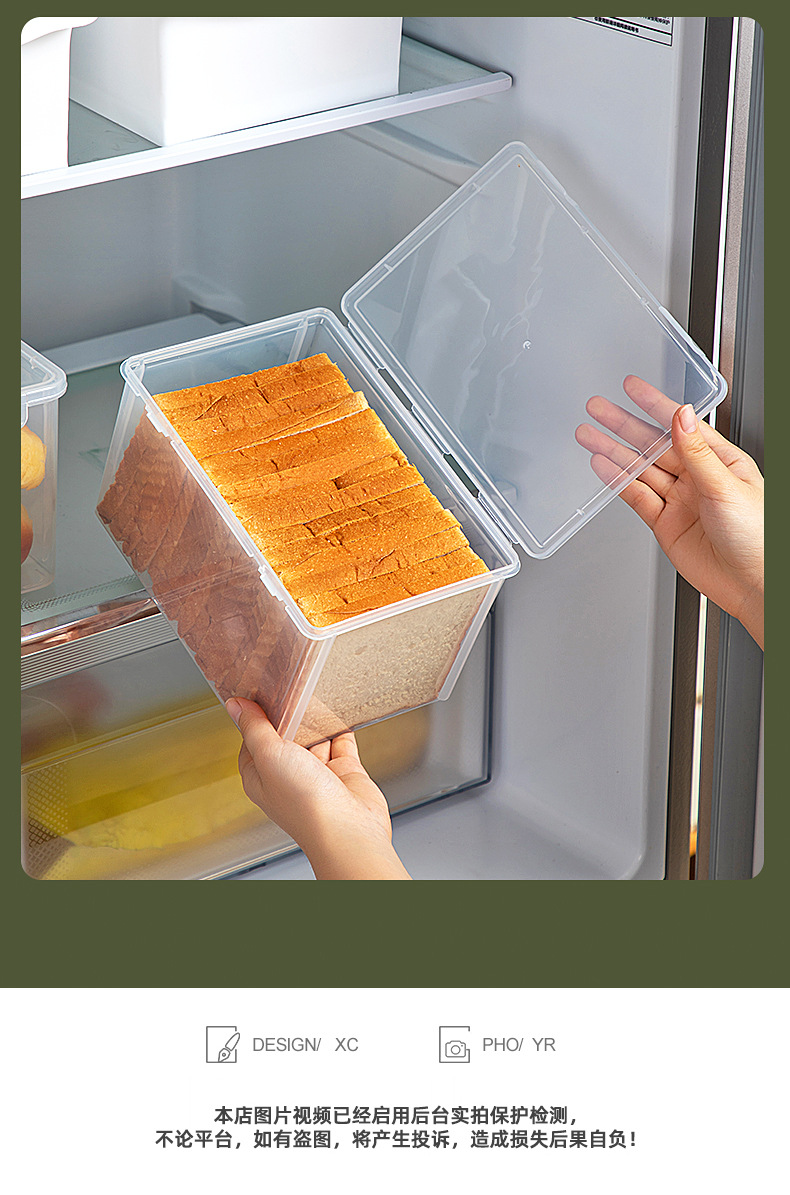 关于塑料制品运输问题:我们会在发出前仔细检查产品完好后再发货,但运输、搬运难免摩擦/磕碰,小概率可能会导致摩擦划痕、白痕等,但这些均不影响产品使用,介意勿拍,谢谢! 家用厨房冰箱保鲜盒食品级透明带盖塑料密封杂粮吐司面包收纳盒