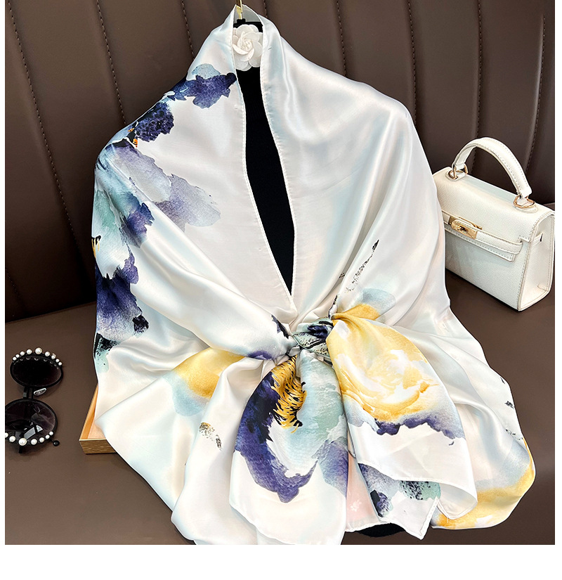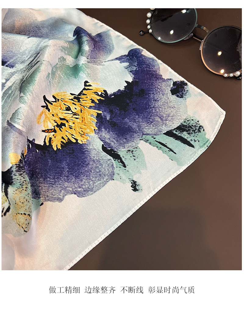 잉크 페인팅 고급 실크 스카프 선 스크린 롱 프린트 실크 스카프 여성용 롱 실크 스카프 비치 타월 도매