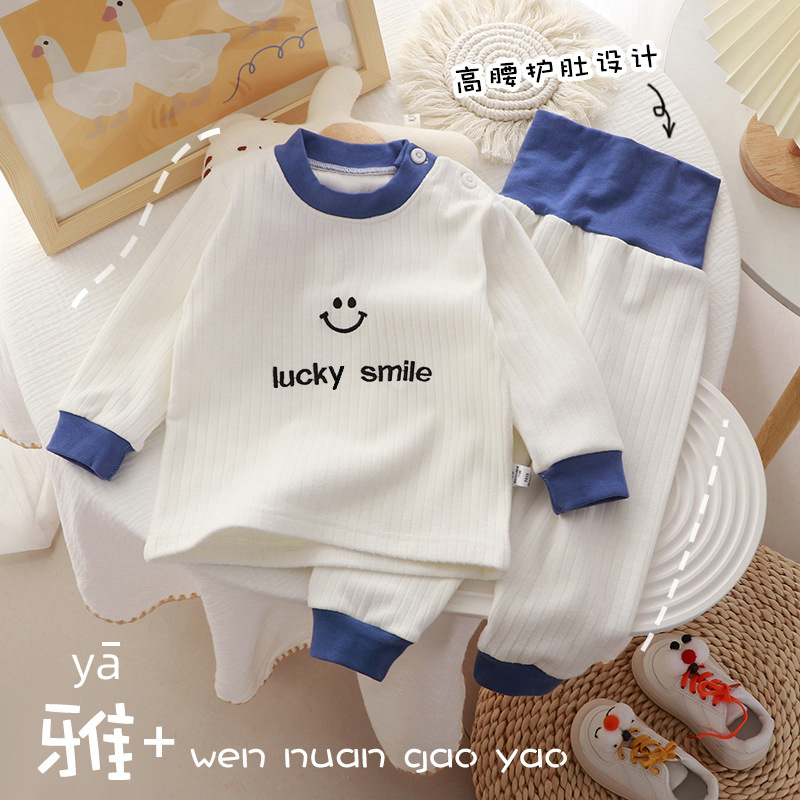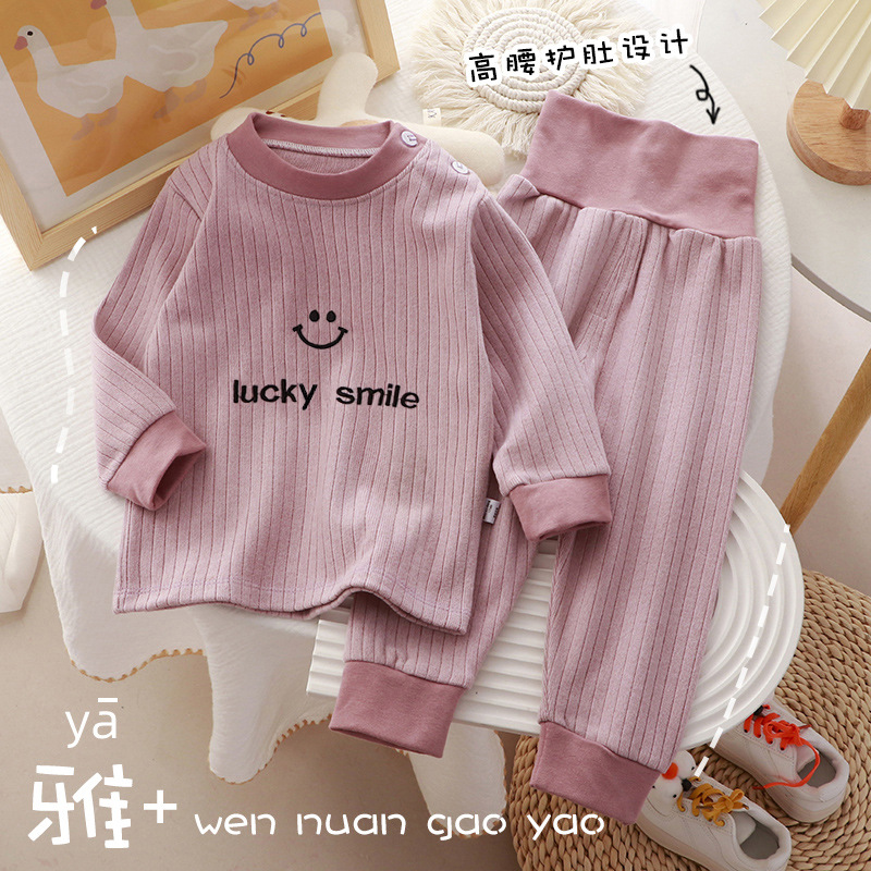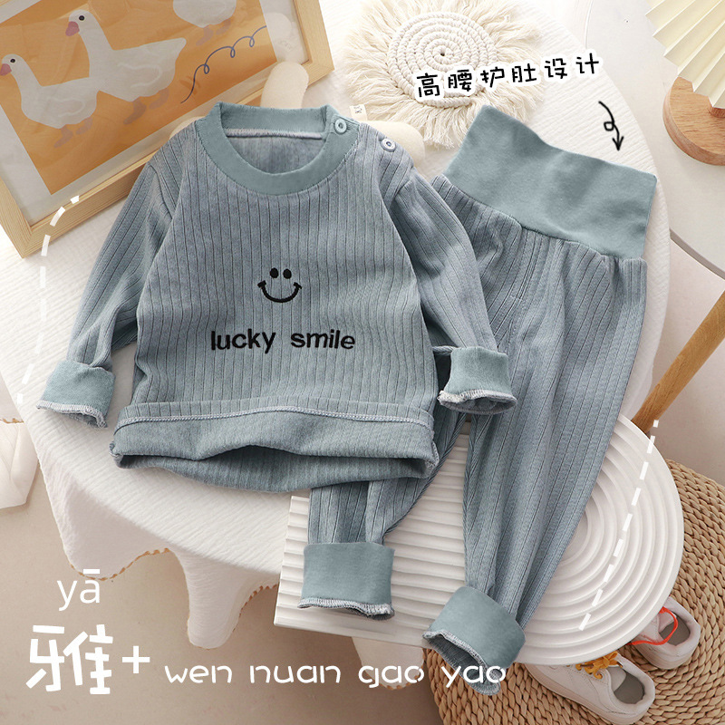 아이의 하이 웨이스트 속옷 세트 아기의 가을 벨벳 가을 옷 가을 바지 여자의 보물 소년의 따뜻한 가정 옷 한국 스타일스토어 가기