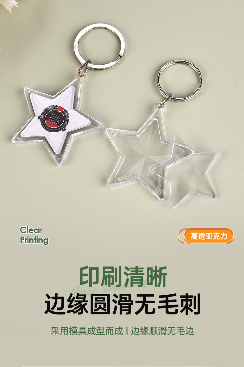 아크릴 키체인 재고 있음, 투명 DIY 인터넷 연예인 크리에이티브 블랭크 사과 나비 모양 액자 키체인 펜던트스토어 가기