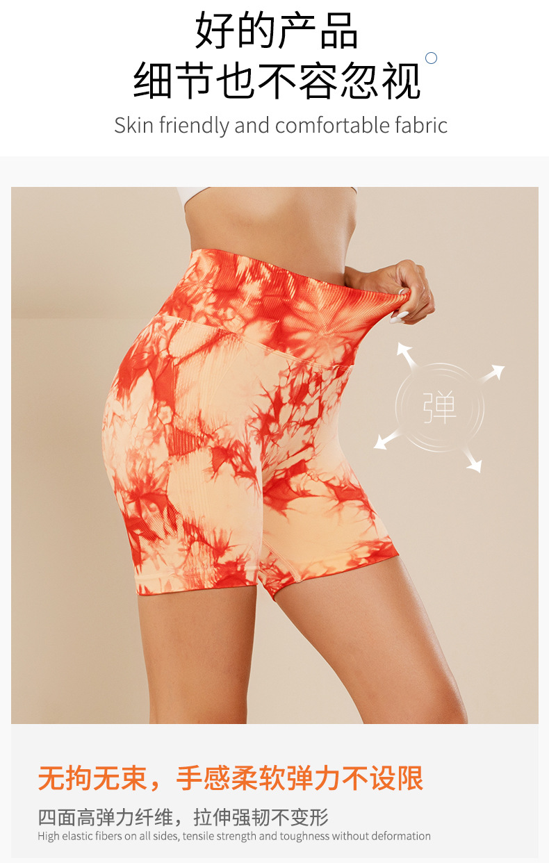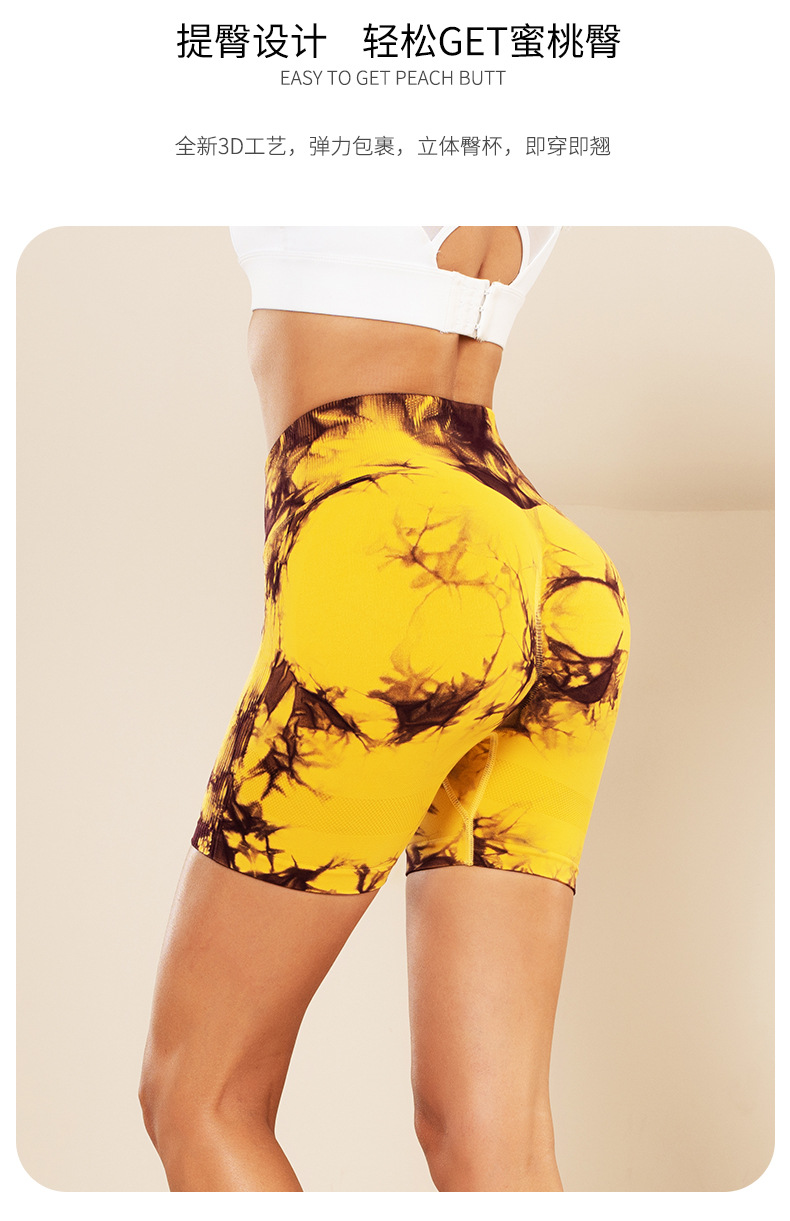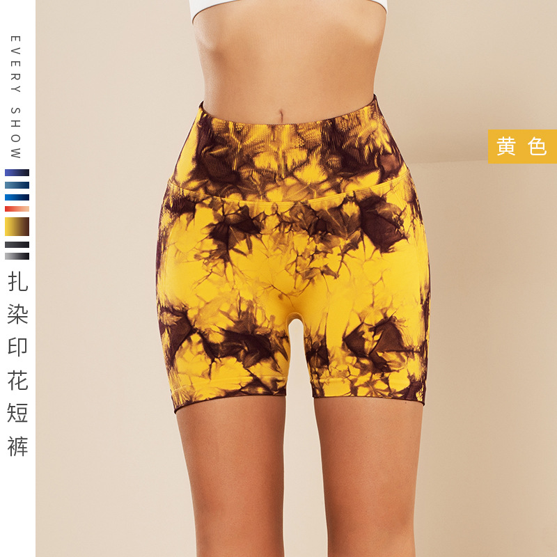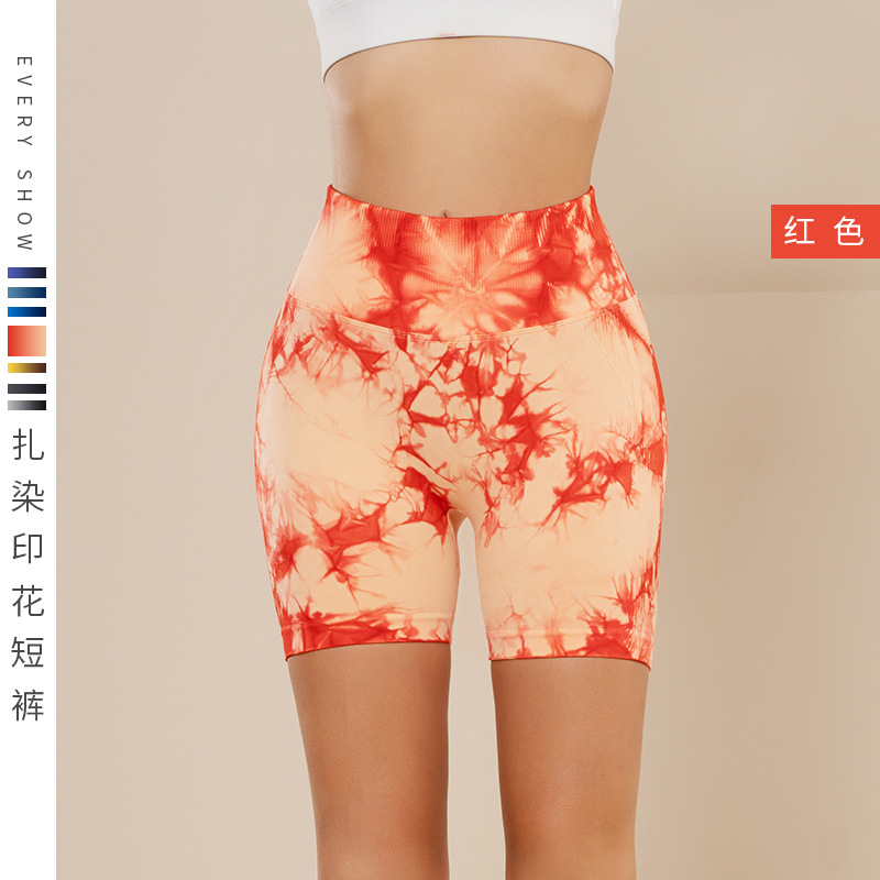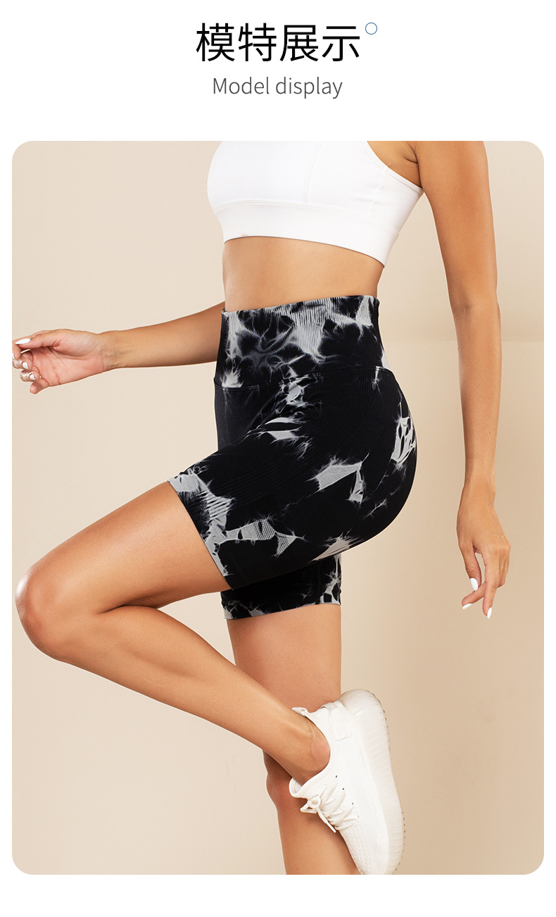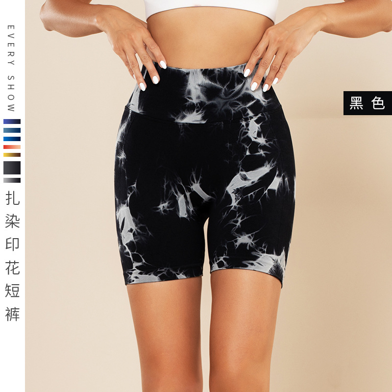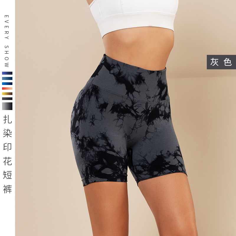 피트니스 및 스포츠 심리스 타이 염색 반바지, 크로스보더 하이웨이스트 복부 조절 고탄력 타이트 팬츠, 편안한 엉덩이 리프팅 속건 요가 팬츠