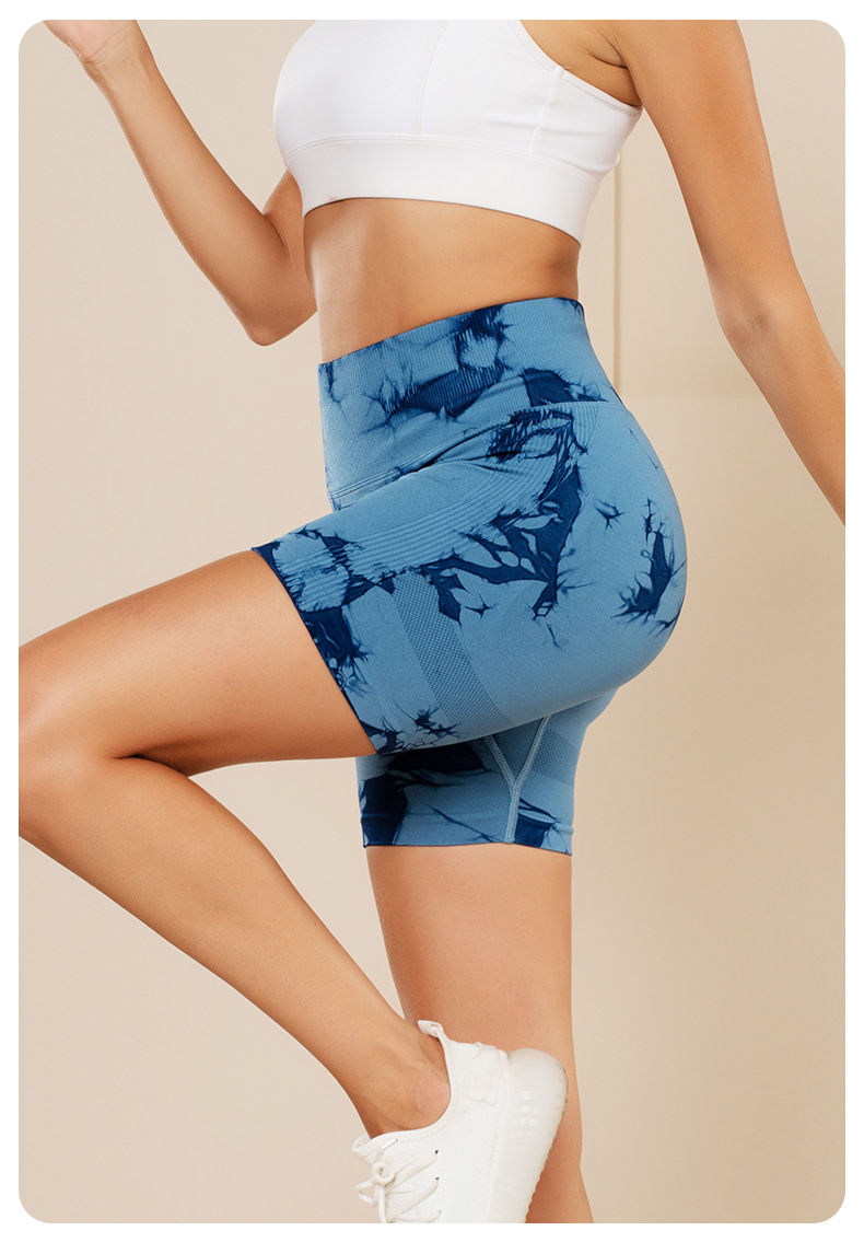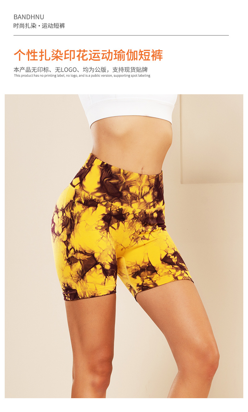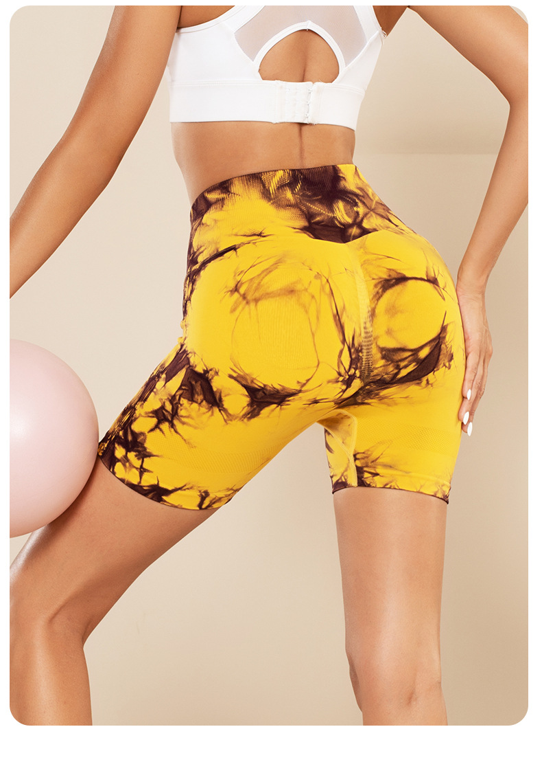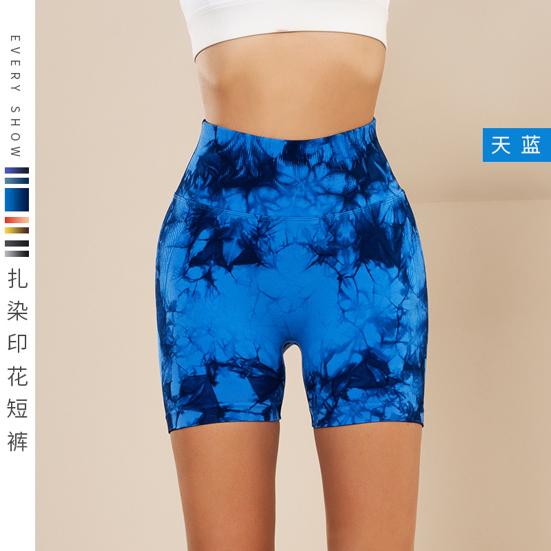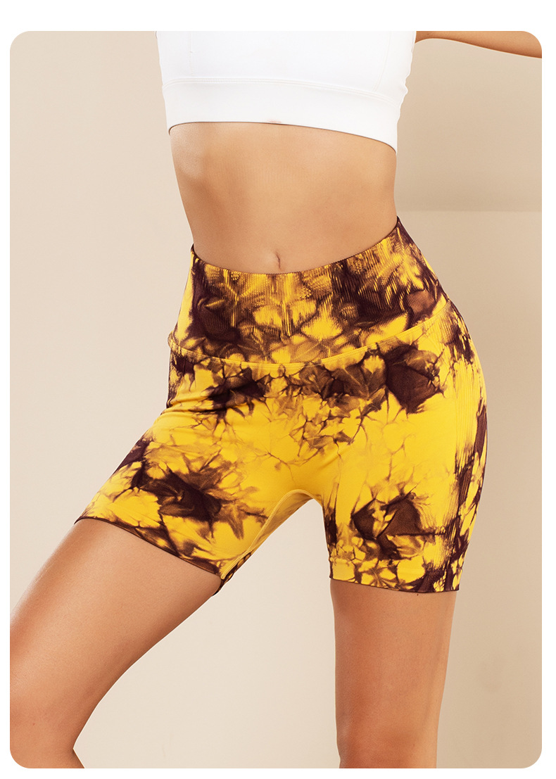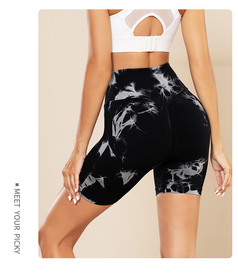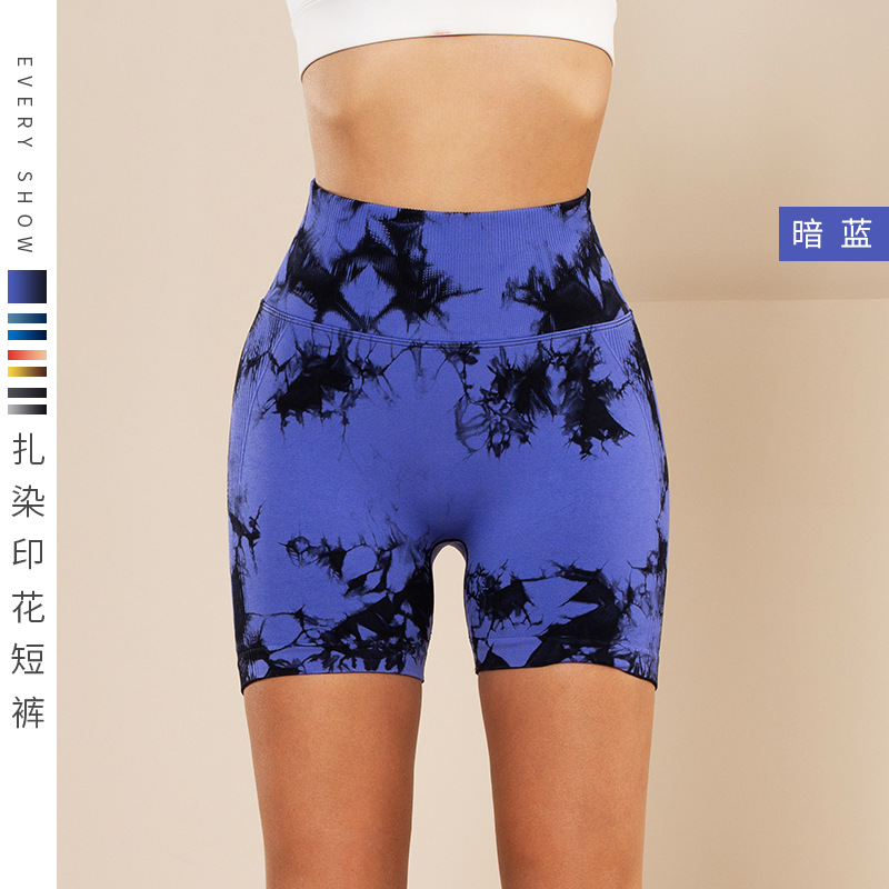 피트니스 및 스포츠 심리스 타이 염색 반바지, 크로스보더 하이웨이스트 복부 조절 고탄력 타이트 팬츠, 편안한 엉덩이 리프팅 속건 요가 팬츠