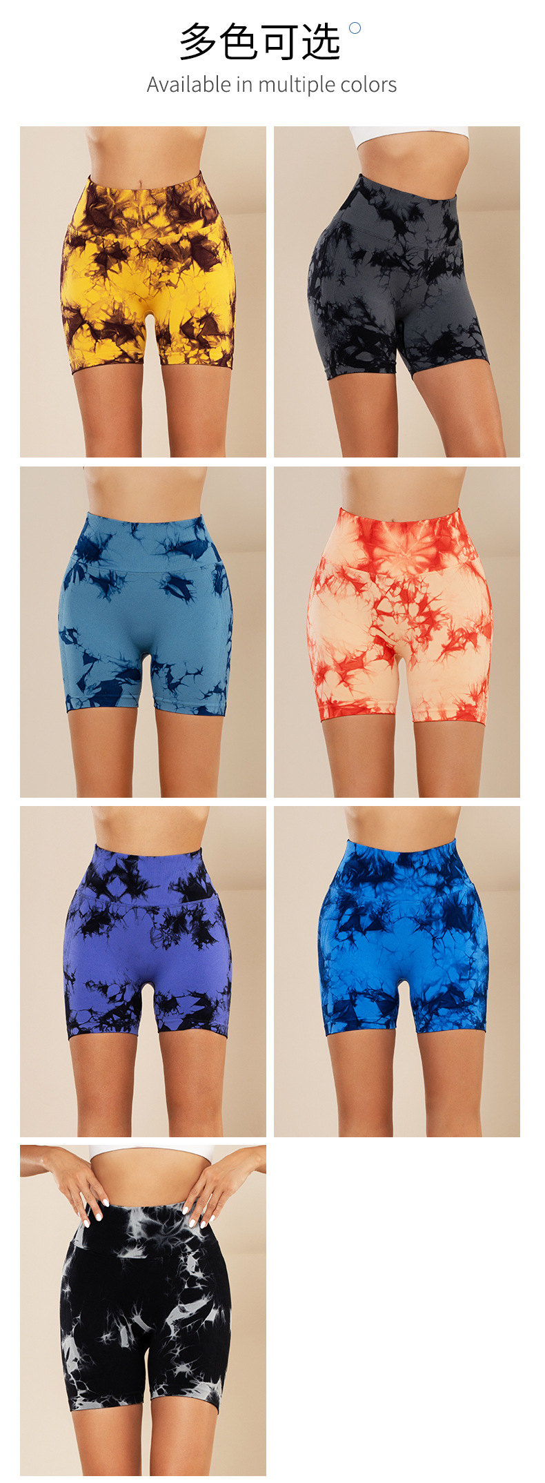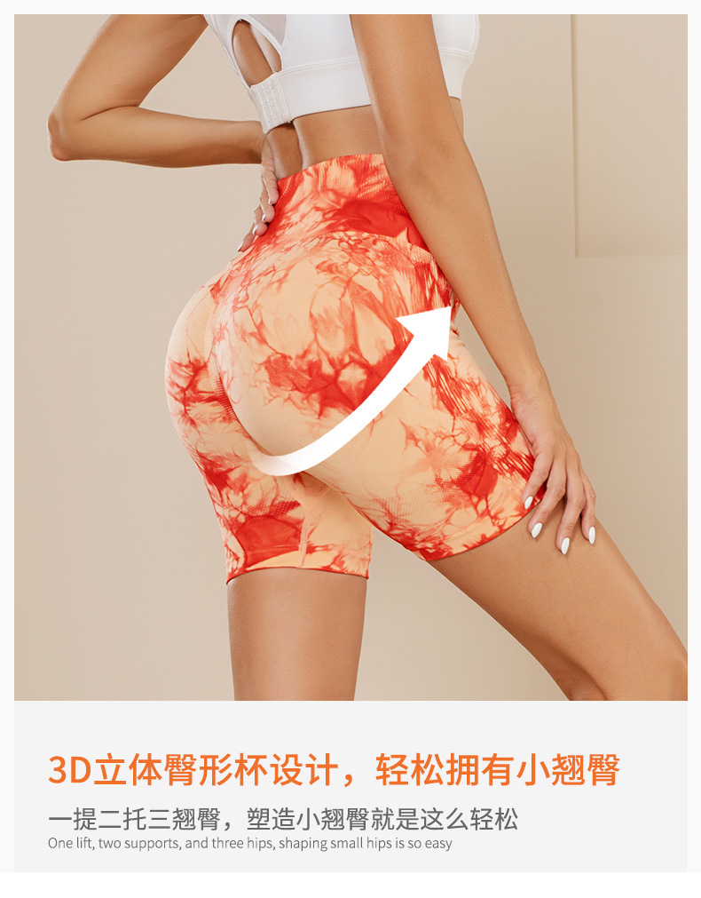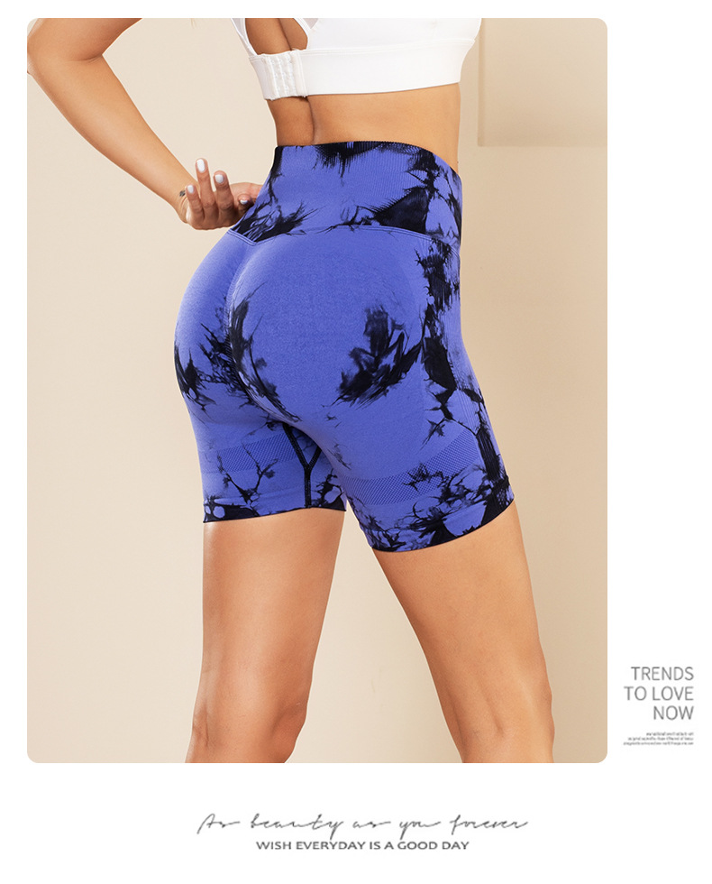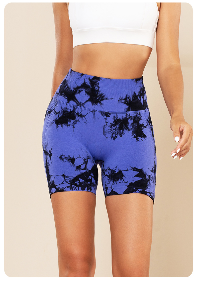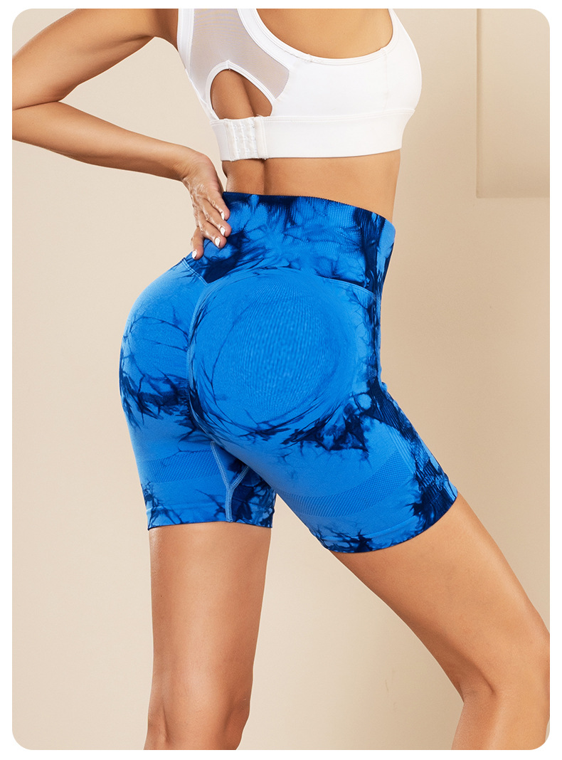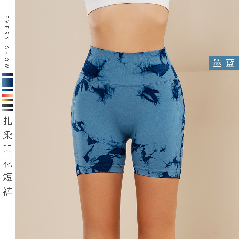 피트니스 및 스포츠 심리스 타이 염색 반바지, 크로스보더 하이웨이스트 복부 조절 고탄력 타이트 팬츠, 편안한 엉덩이 리프팅 속건 요가 팬츠