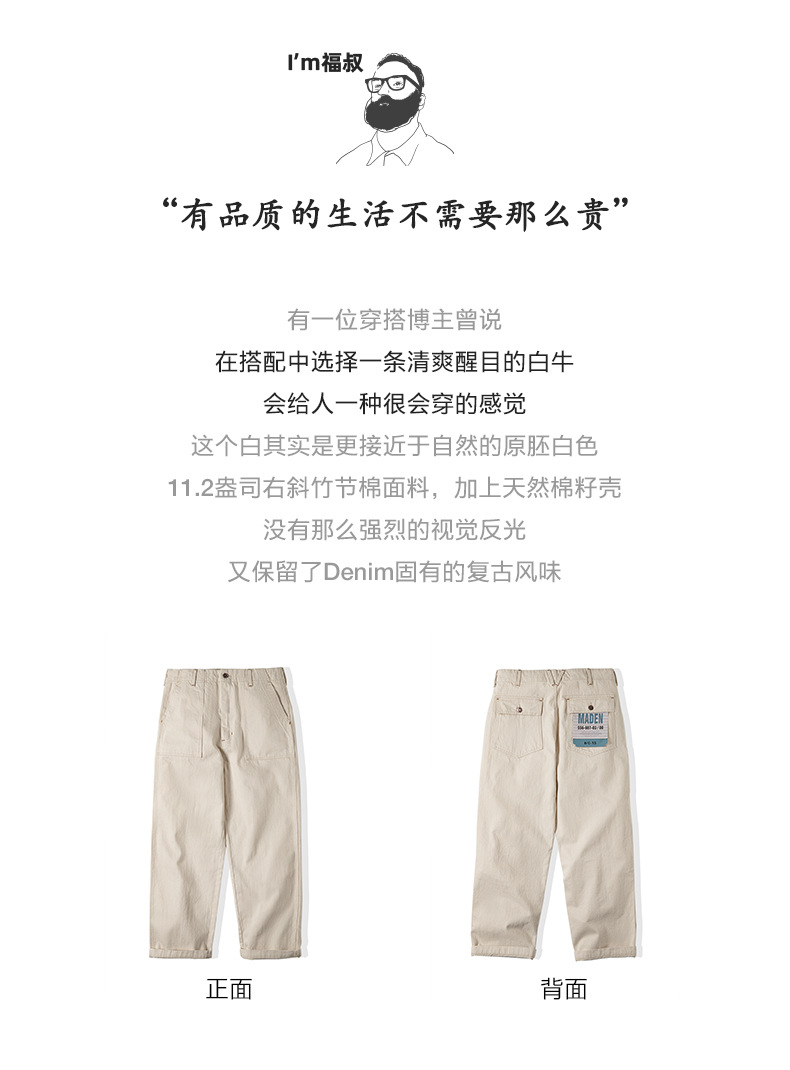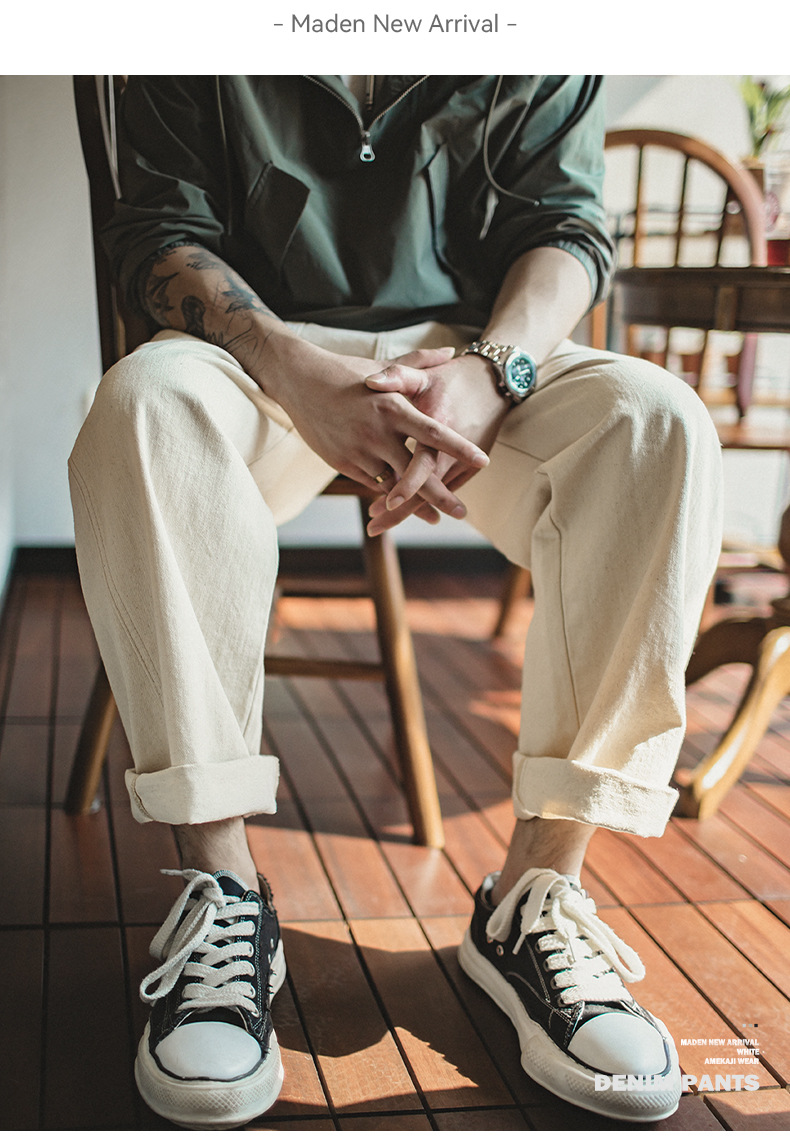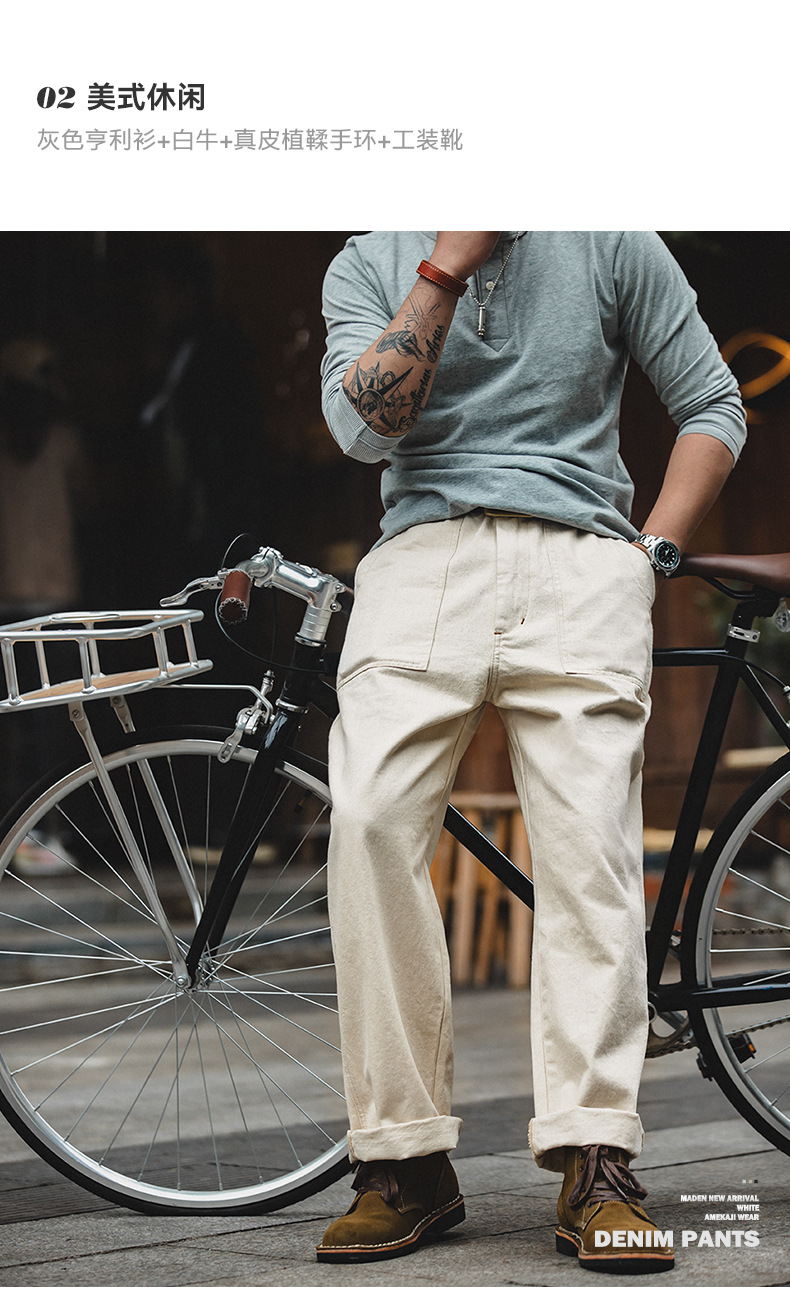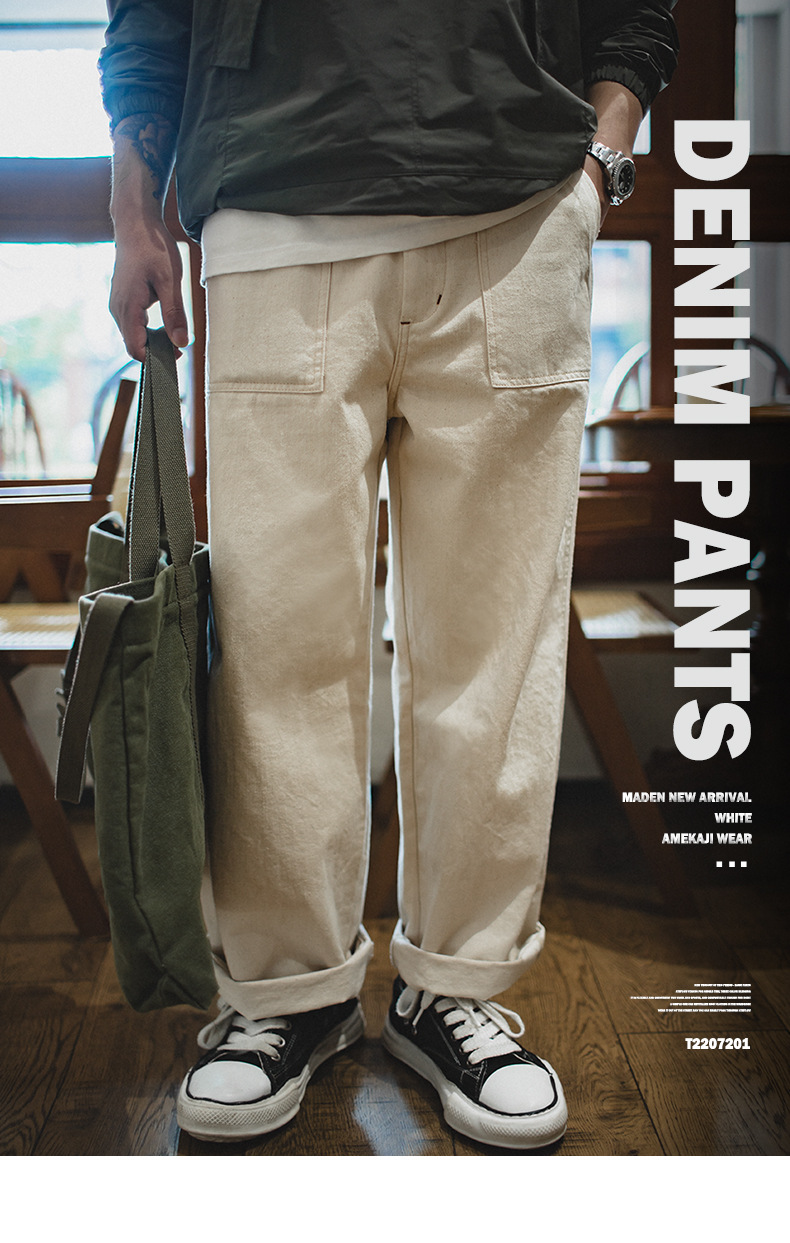 Madden 툴링 빈티지 면씨 쉘 아이보리 청바지 느슨한 스트레이트 툴링 캐주얼 긴 바지 남자의 가을