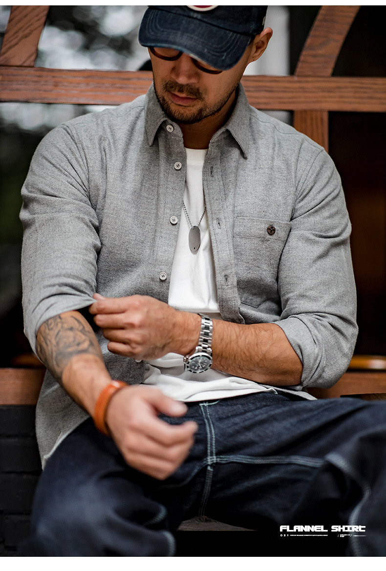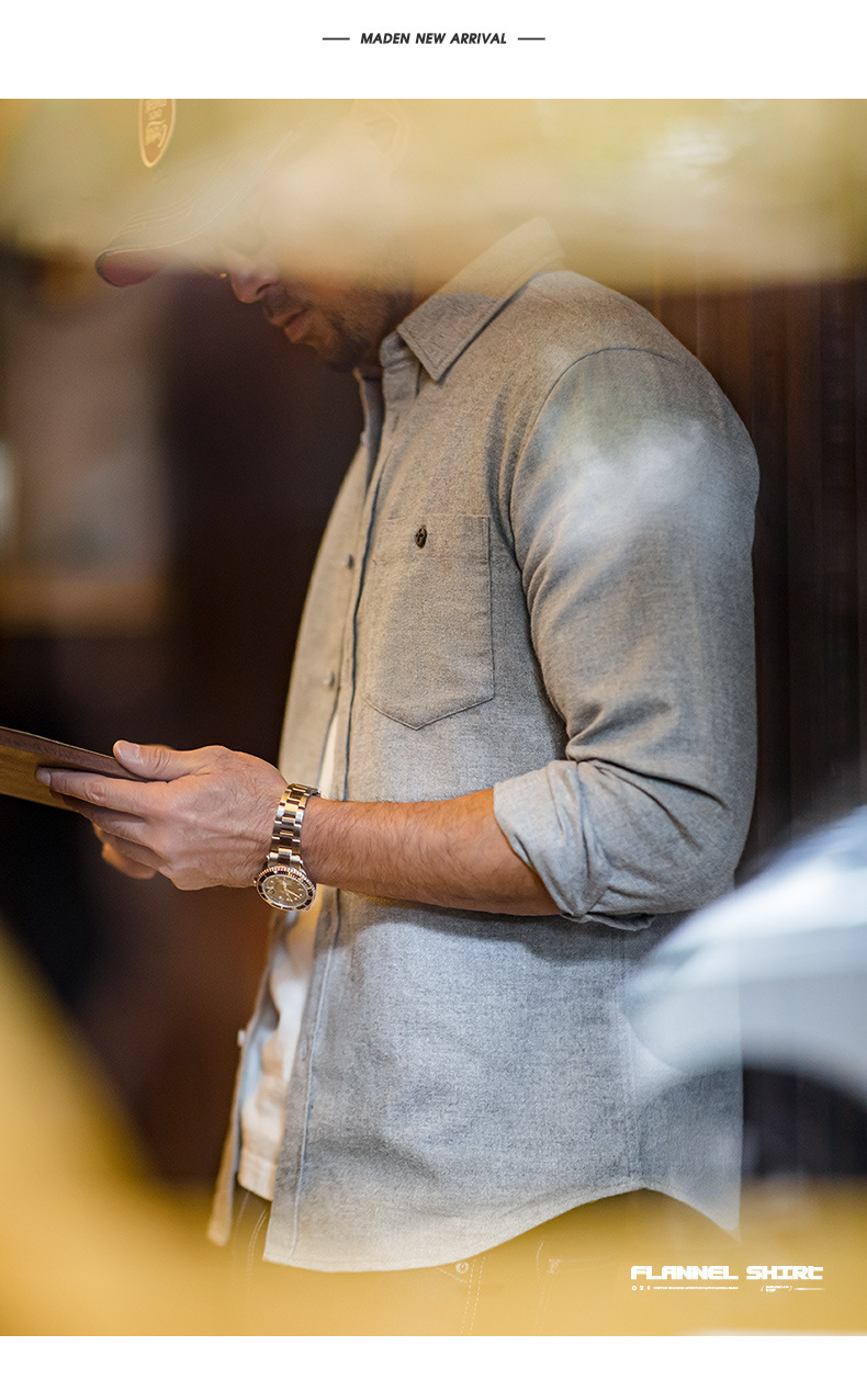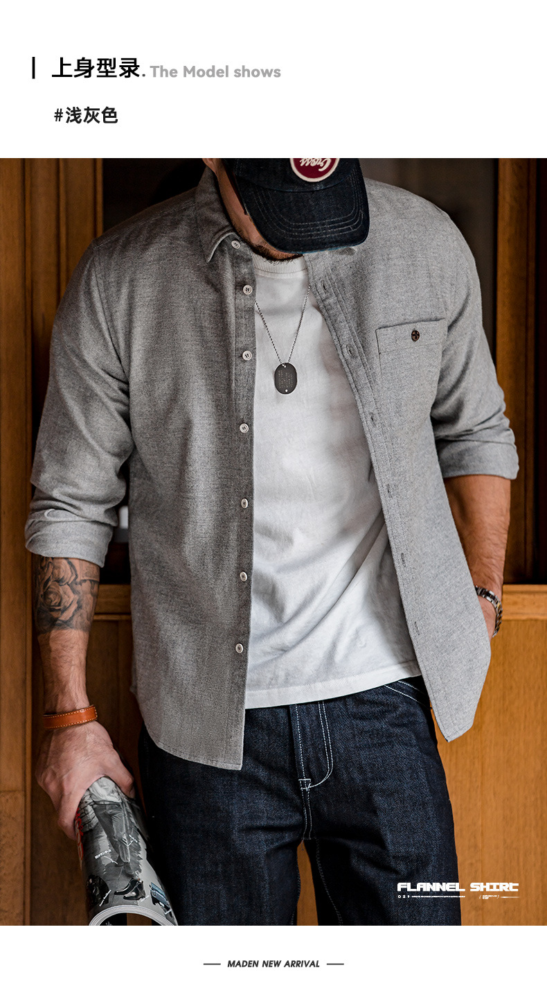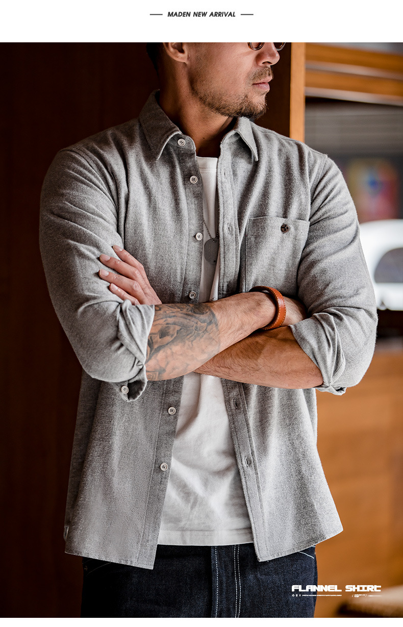 Madden Tooling 아메리칸 캐주얼 플란넬 셔츠 그레이 비즈니스 통근 샌딩 남성용 긴팔 셔츠 가을
