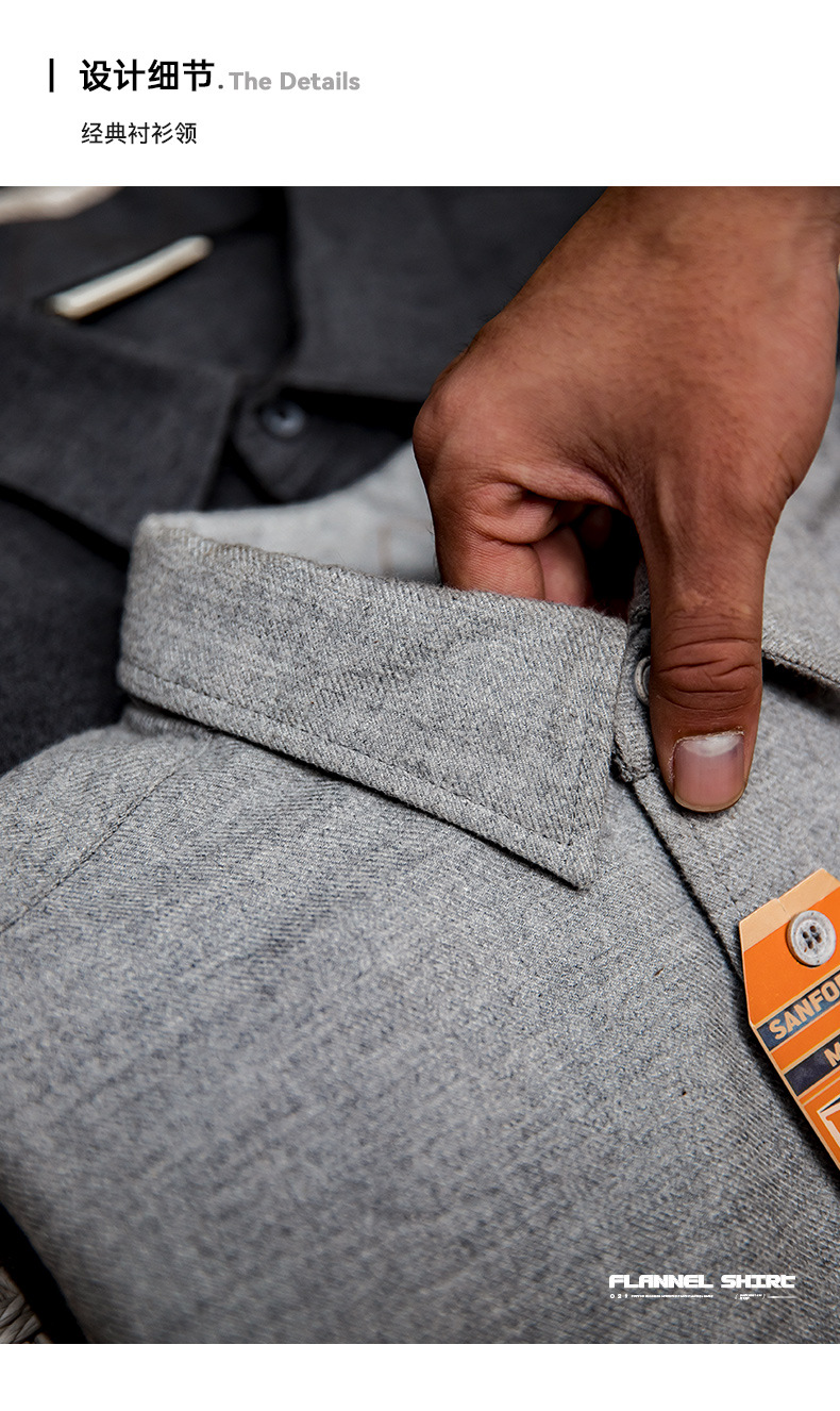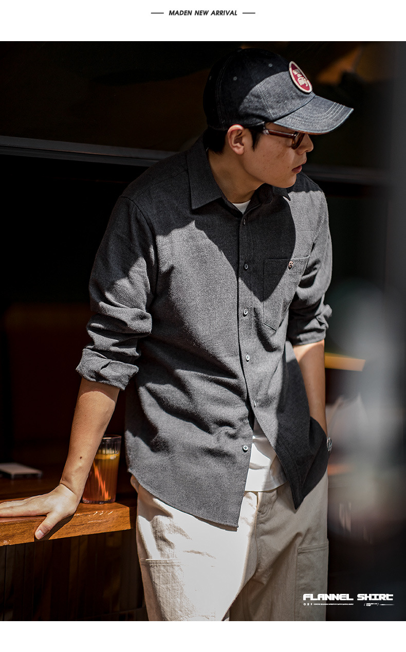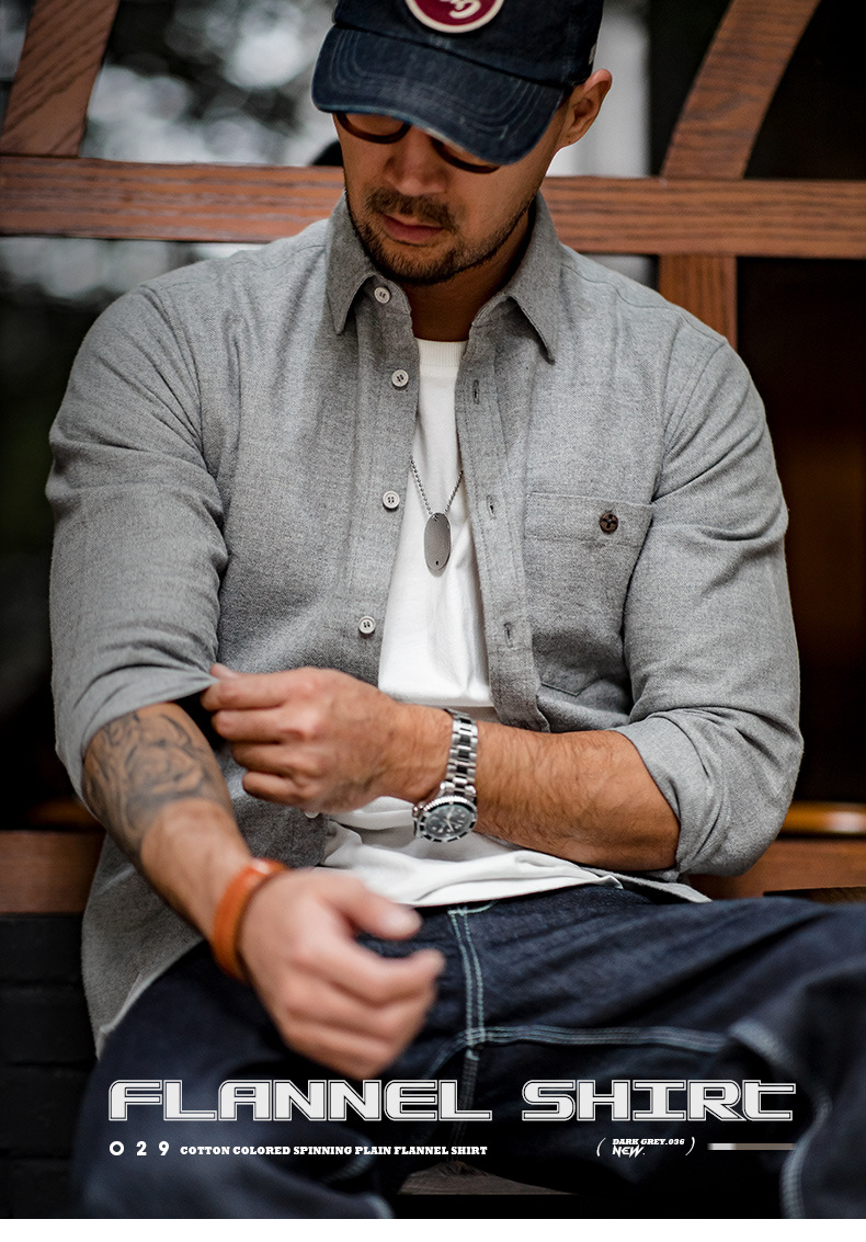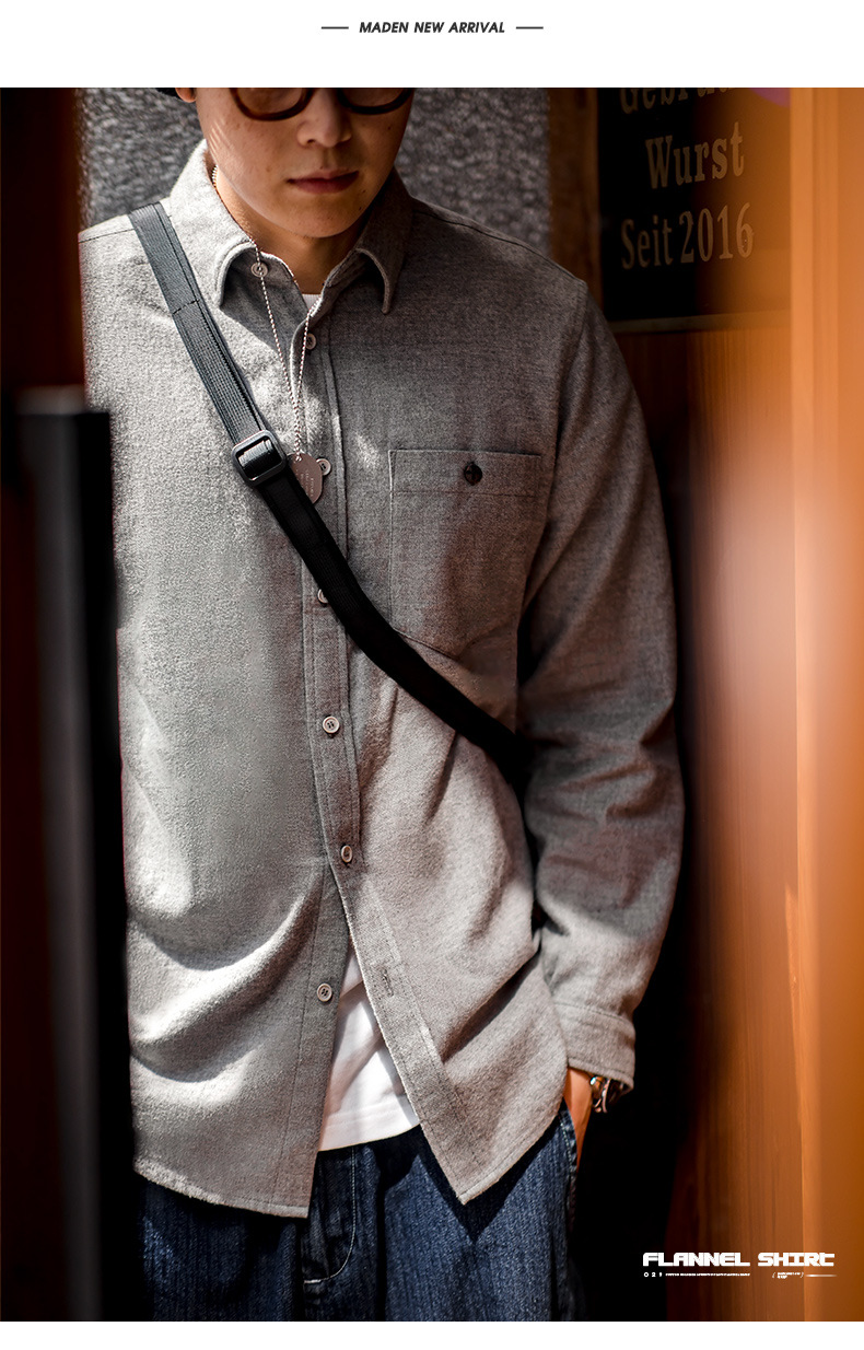 Madden Tooling 아메리칸 캐주얼 플란넬 셔츠 그레이 비즈니스 통근 샌딩 남성용 긴팔 셔츠 가을
