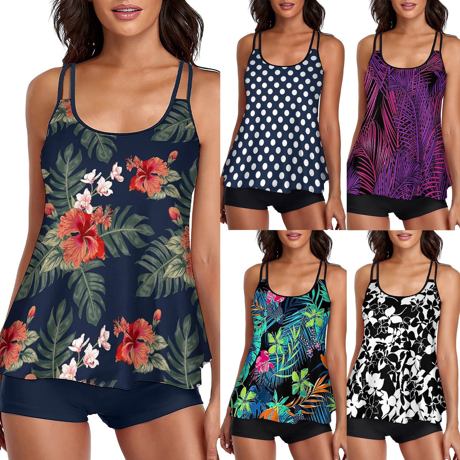 아마존 크로스 보더 새로운 여성용 수영복 복부 조절 수영복 조끼 반바지 투피스 수영복