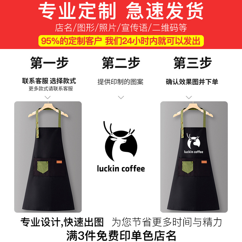 커피숍 앞치마 주방 가정용 순면 케이터링 전용 2025 신상 인기 맞춤 로고 작업복스토어 가기
