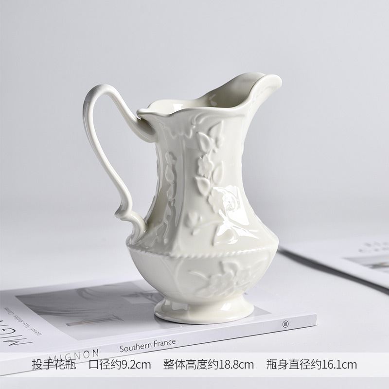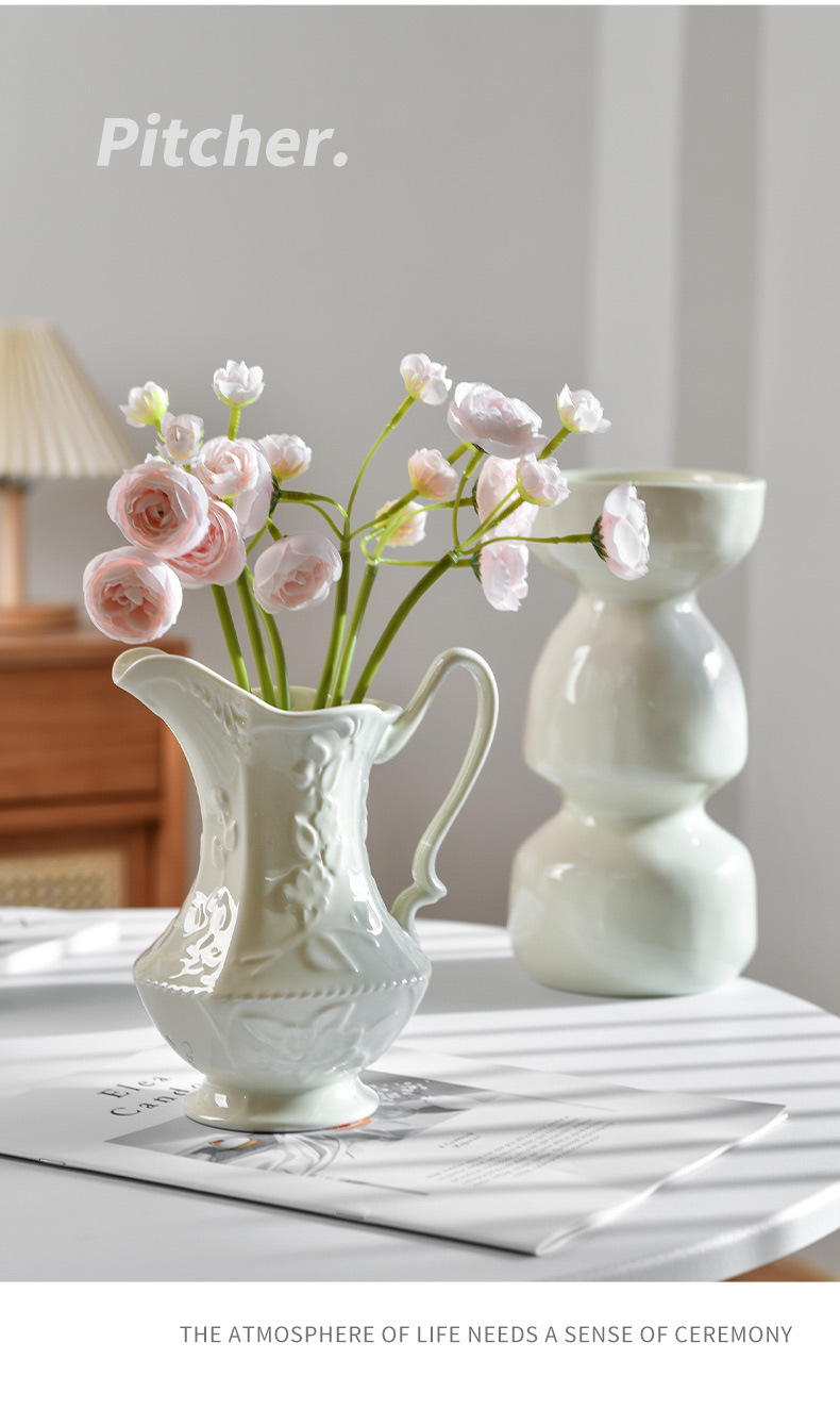 현대 프랑스 스타일 꽃병 스타일 세라믹 하이 컬러 값 빛 럭셔리 말린 꽃 배열 물 영양 레고 꽃다발 홈 장식스토어 가기