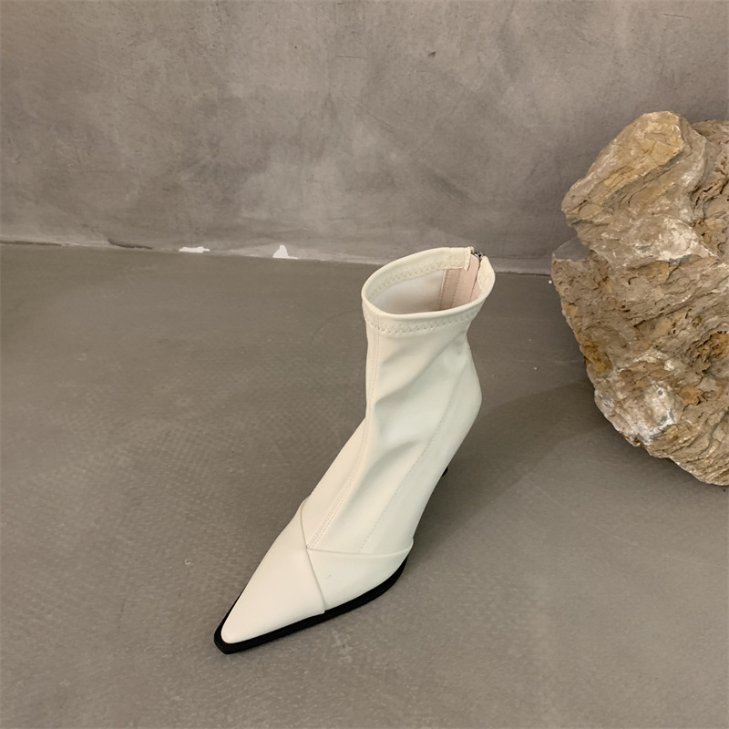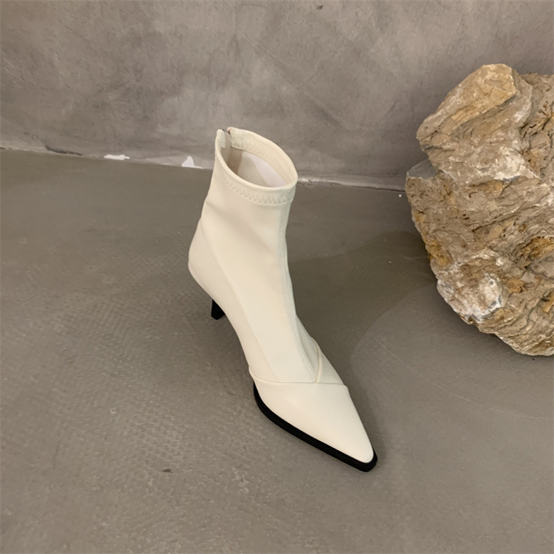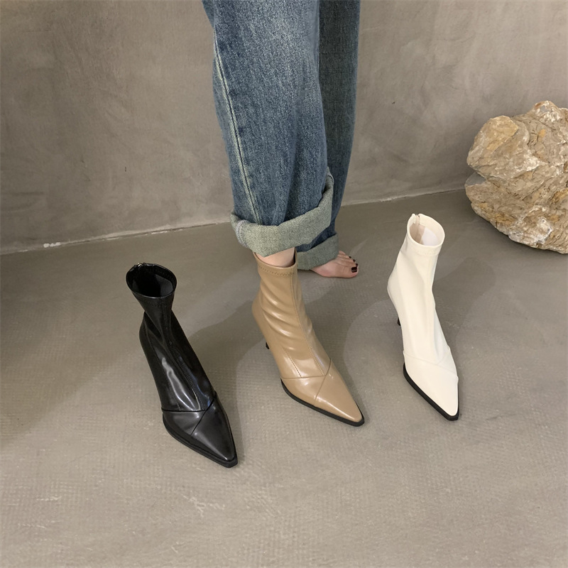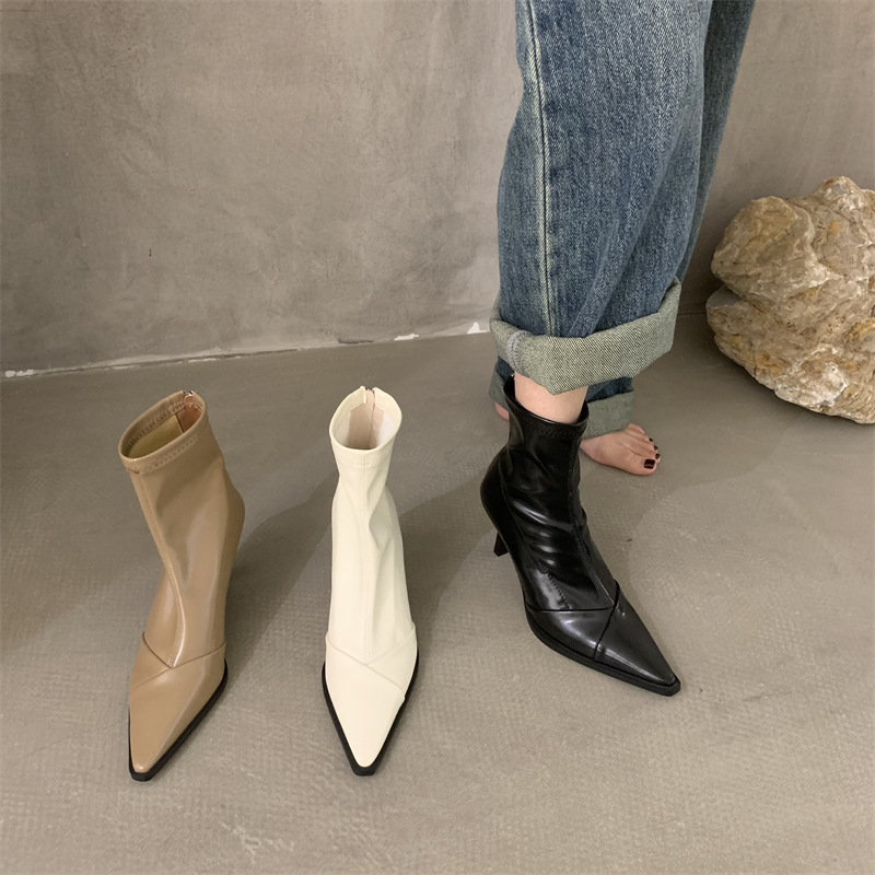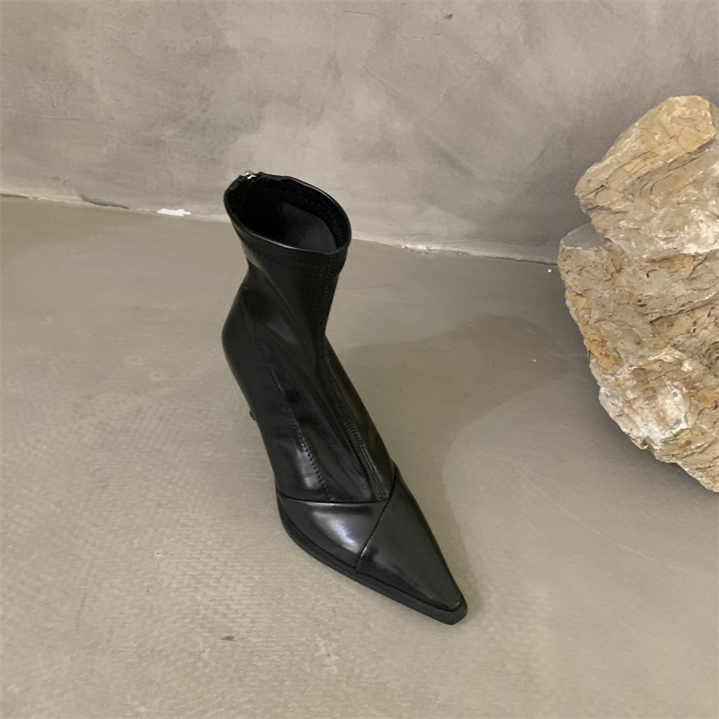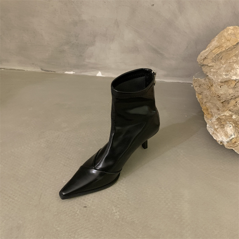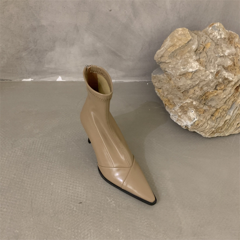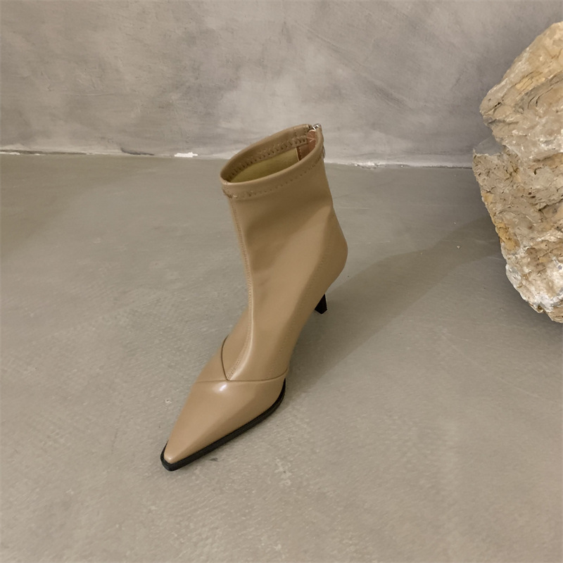 가을과 겨울 2024 새로운 스타일 향기로운 스타일 포인팅 우아한 프랑스 스타일 알몸 부츠 신발 여성용 얇은 발목 부츠 마틴 부츠