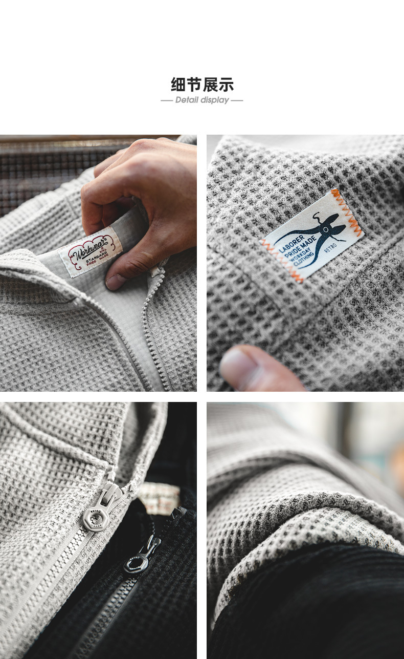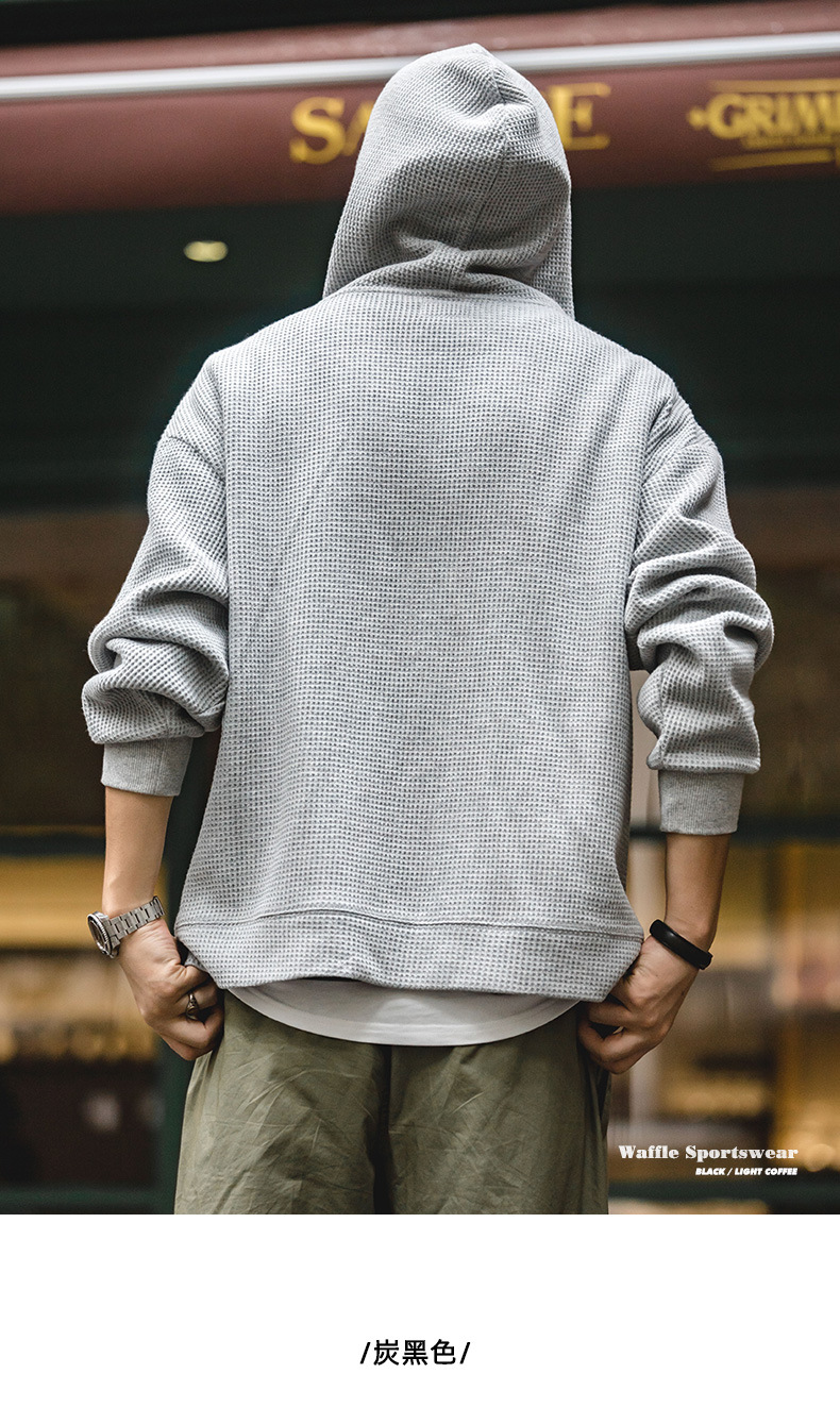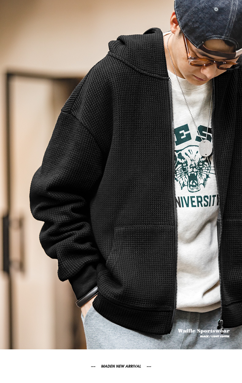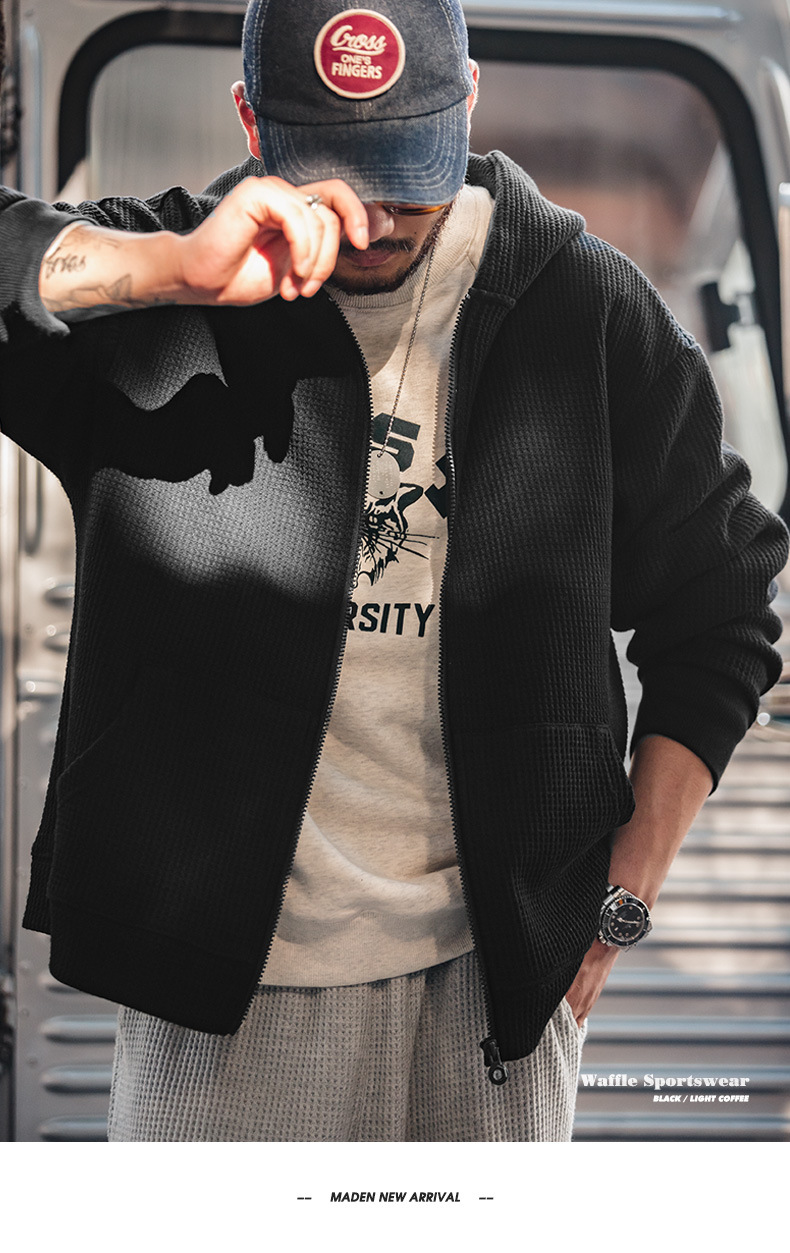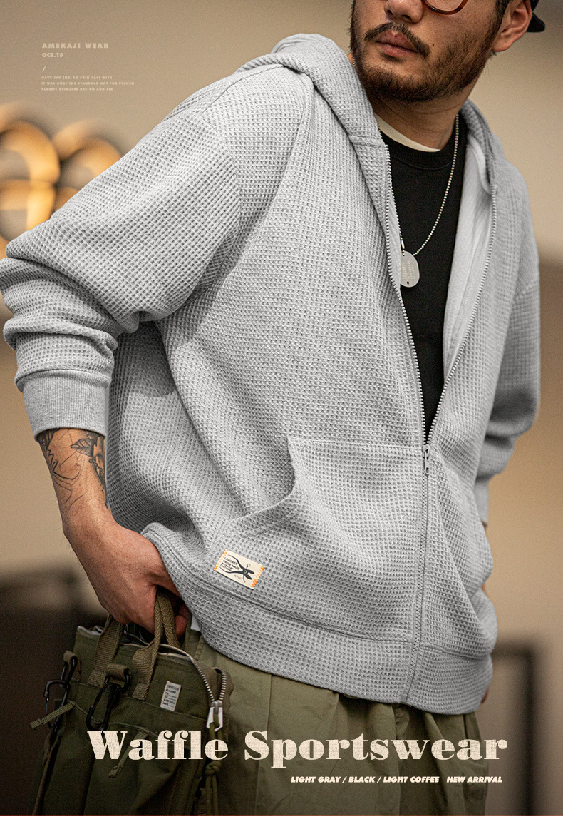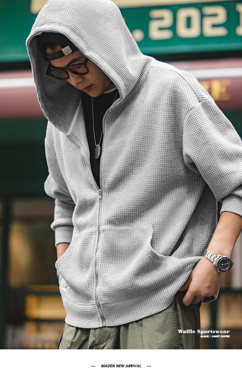 Madden 툴링 빈티지 그레이 후드 와플 스웨터 게으른 카디건 스포츠 재킷 스웨터 남자의 가을