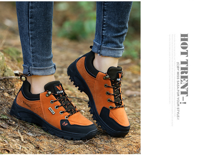 가을과 겨울 야외 하이킹 신발 로우 탑 통기성 싱글 레이어 신발 따뜻한면 신발 남성 신발 여성 하이킹 신발 미끄럼 방지 방수 여행
