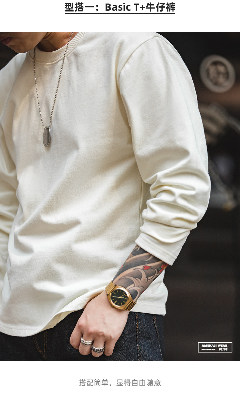 Madden 고정 장치 미국 300g 무거운 긴 소매 티셔츠 봄 21 논센스 프린트 백킹 셔츠 남자