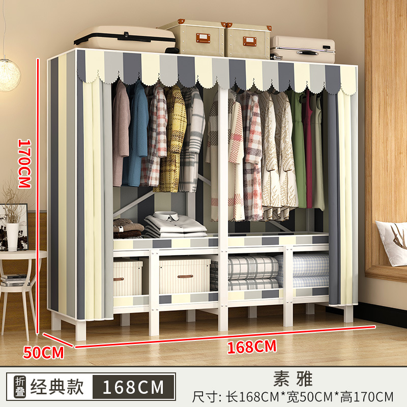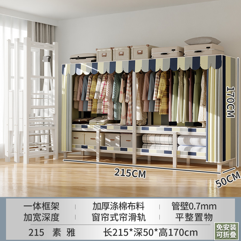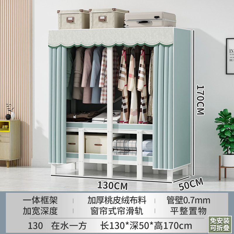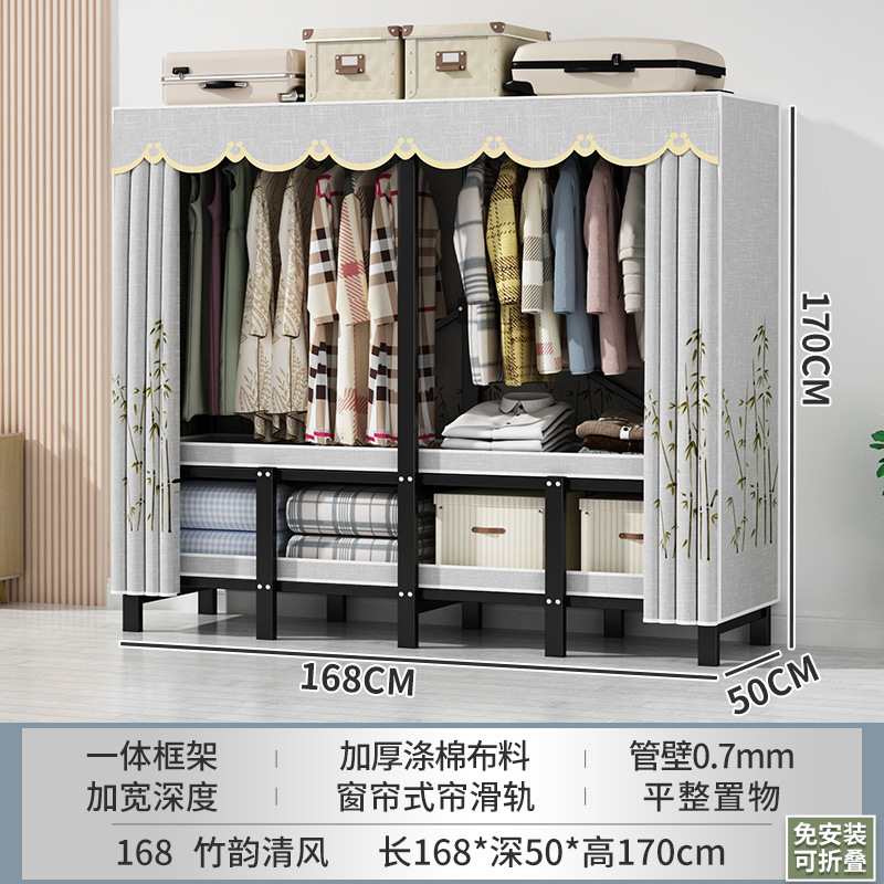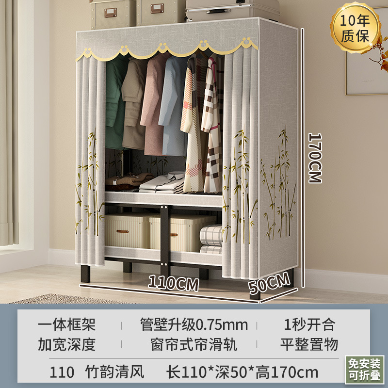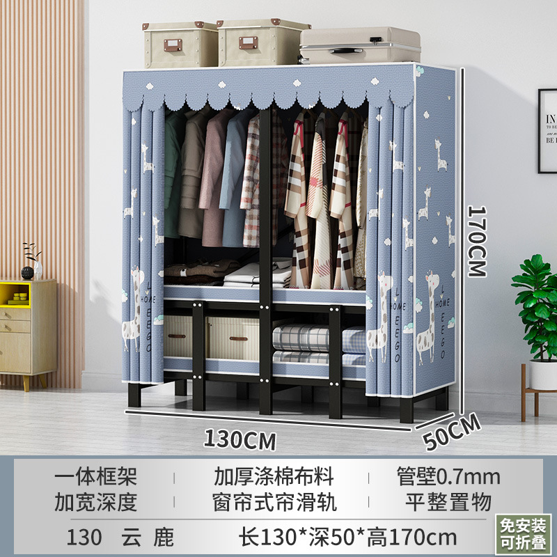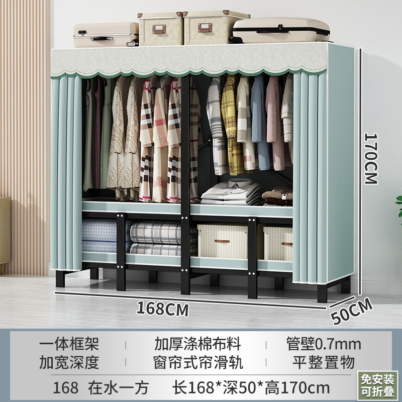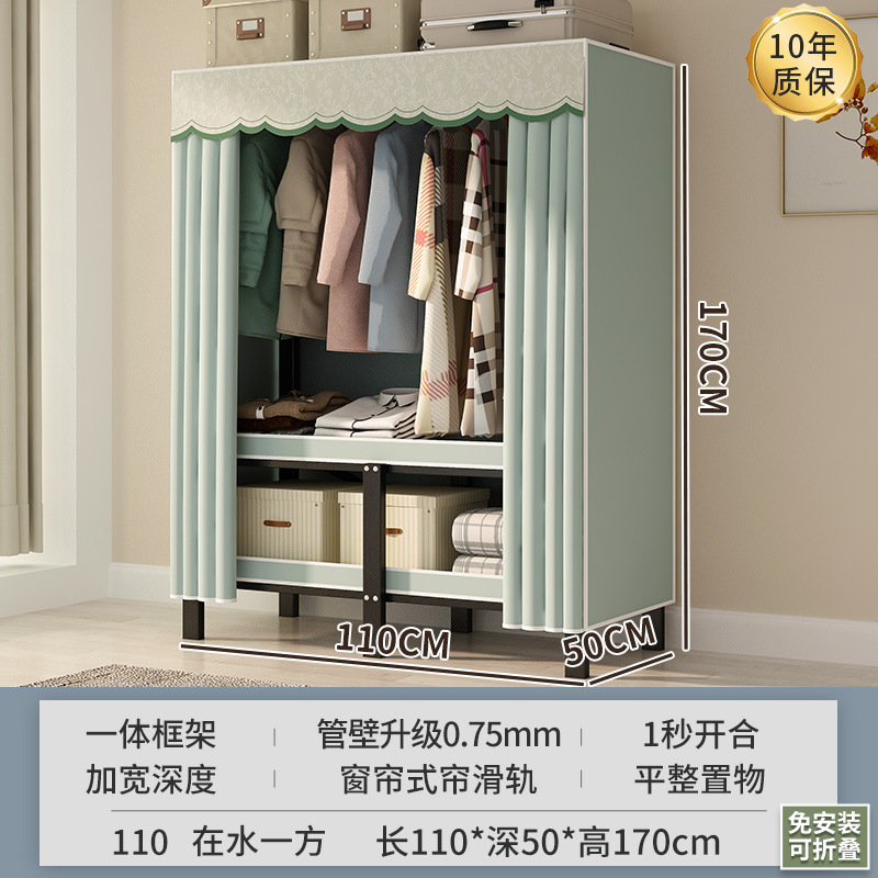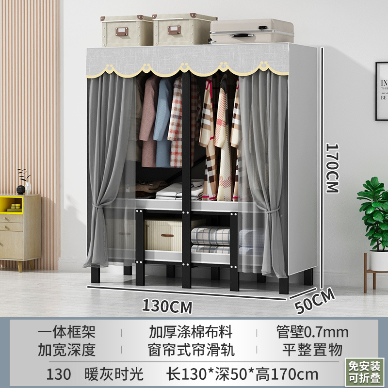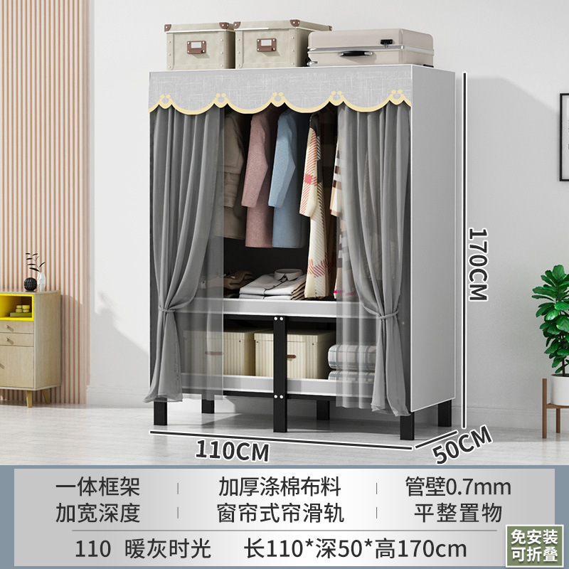 설치 무료 간단한 천 옷장 침실 접이식 가정용 수납 캐비닛 렌탈룸 기숙사 경제적 인 철골 걸이 옷장