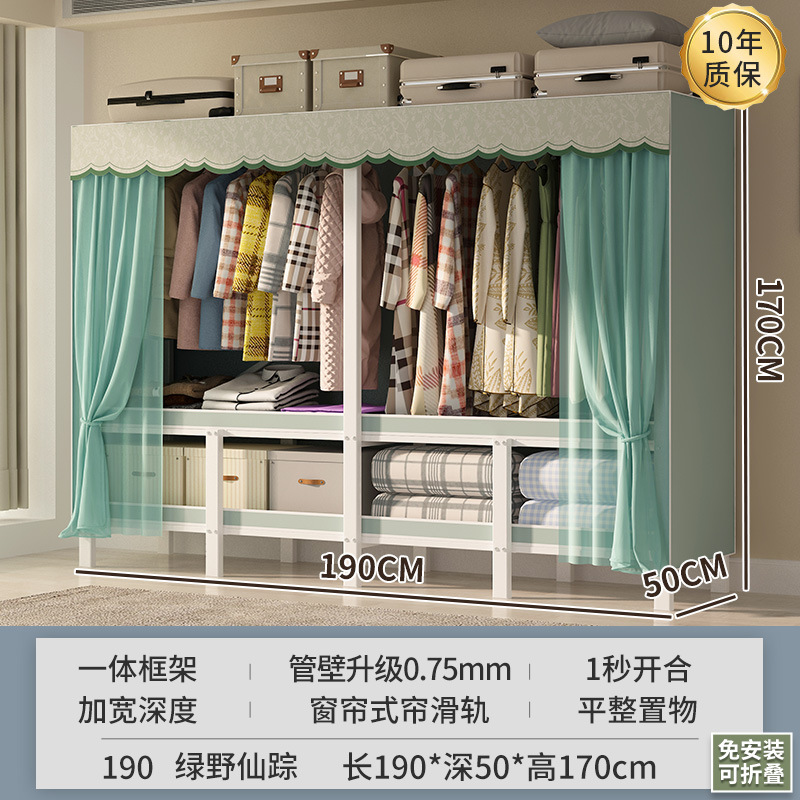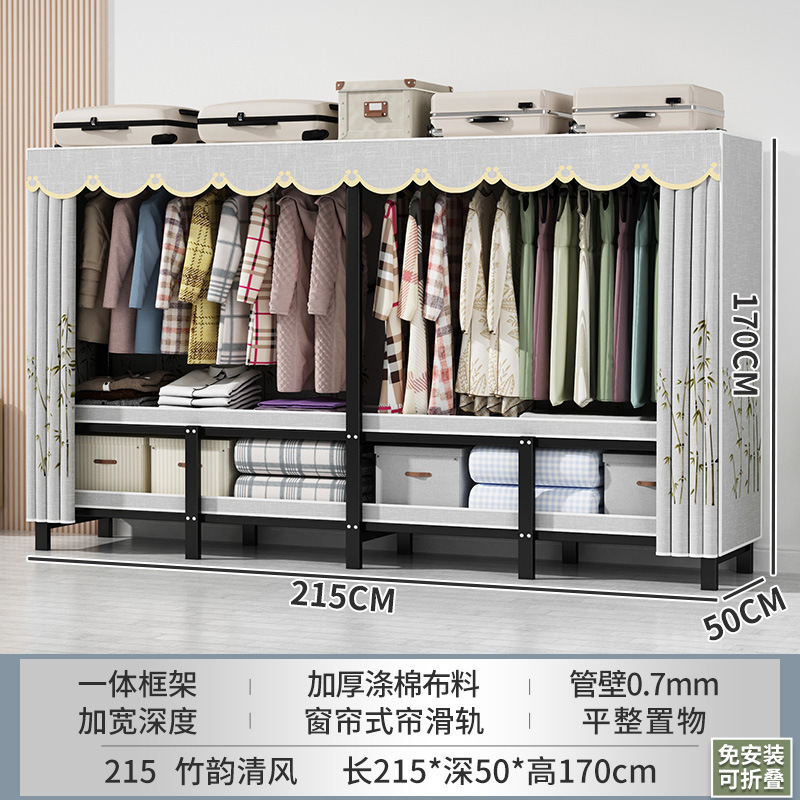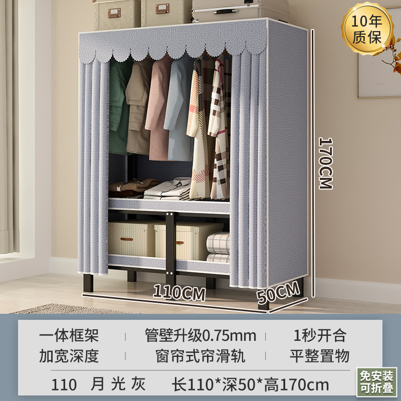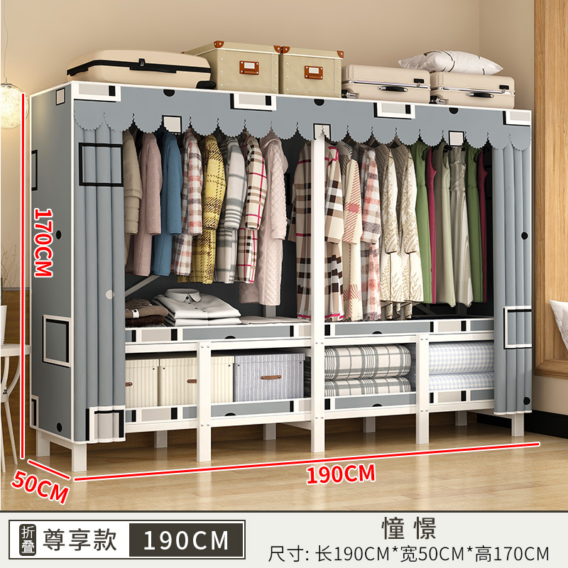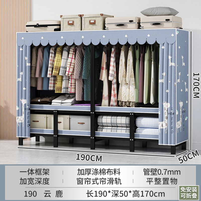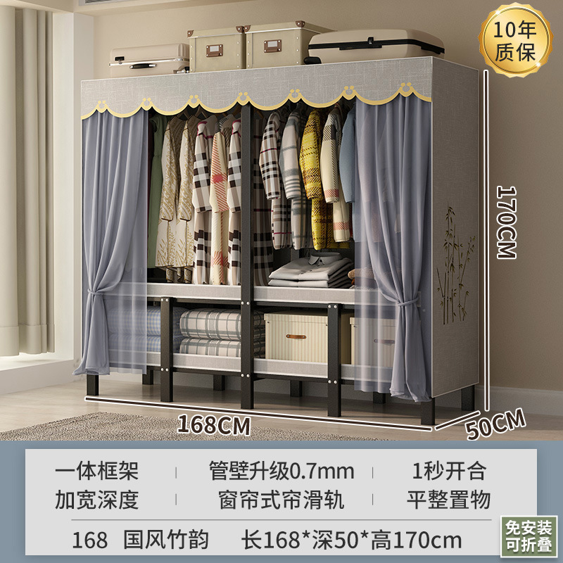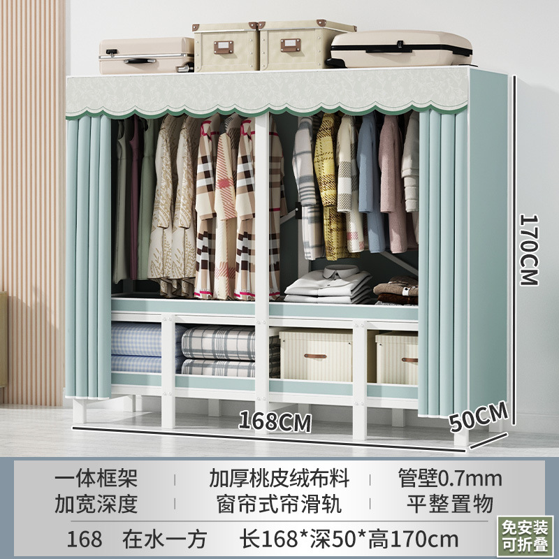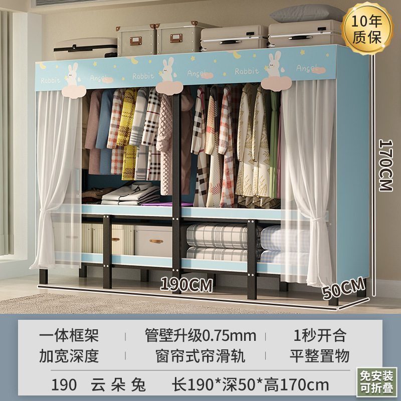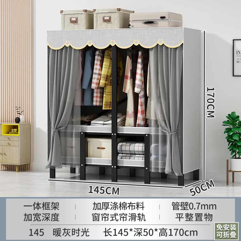 설치 무료 간단한 천 옷장 침실 접이식 가정용 수납 캐비닛 렌탈룸 기숙사 경제적 인 철골 걸이 옷장