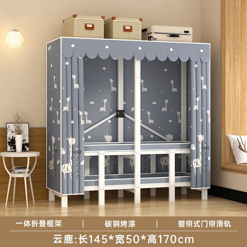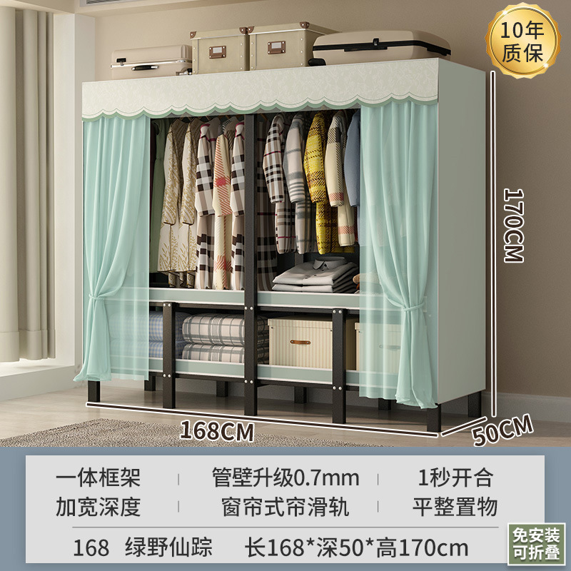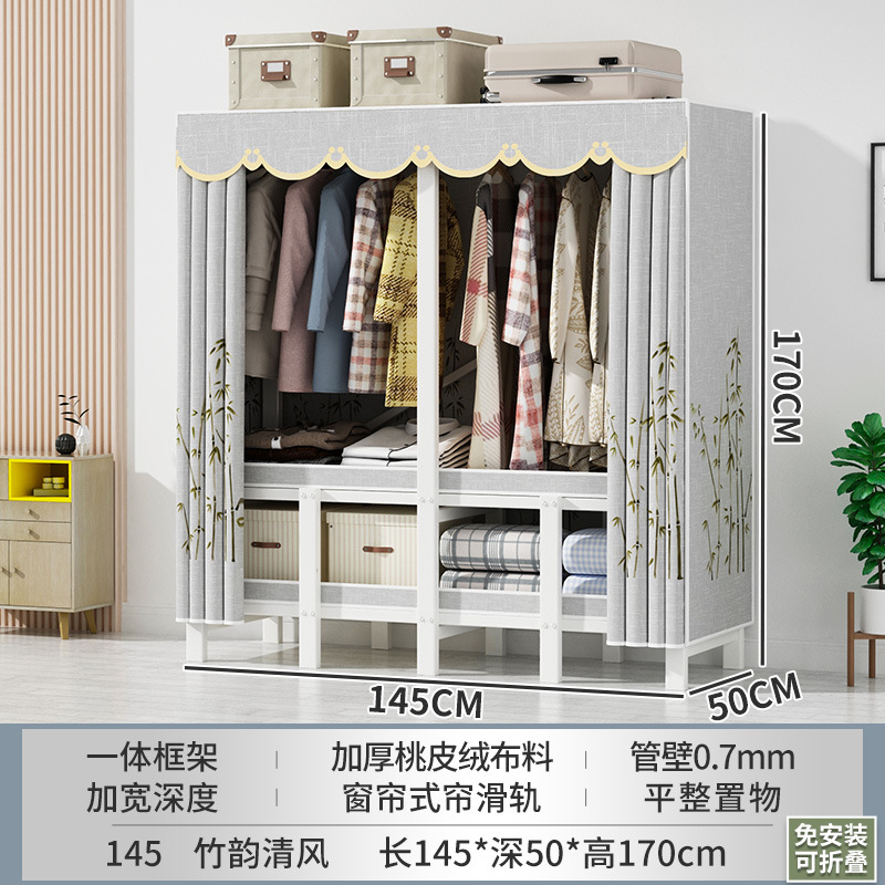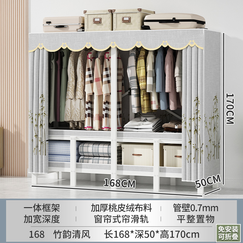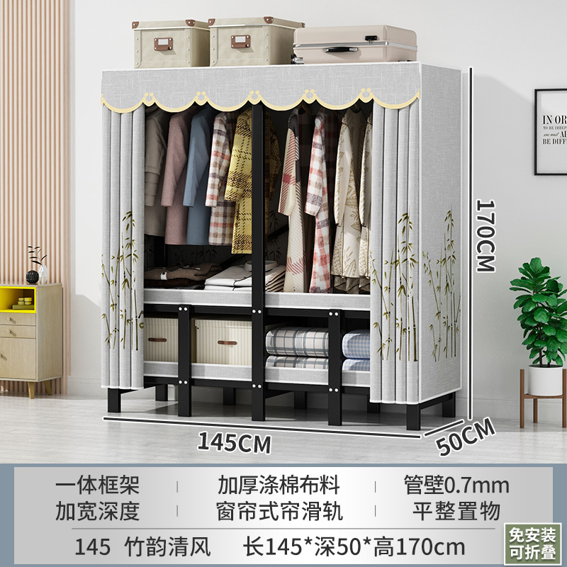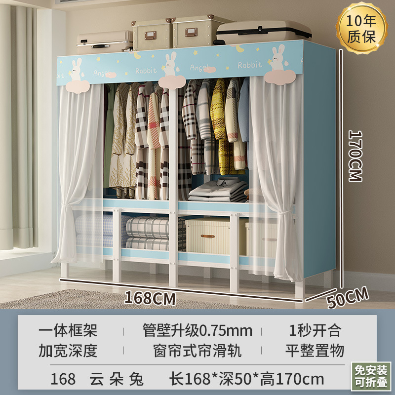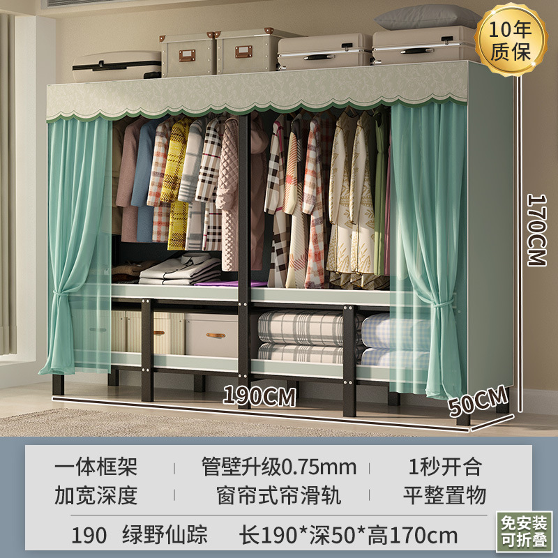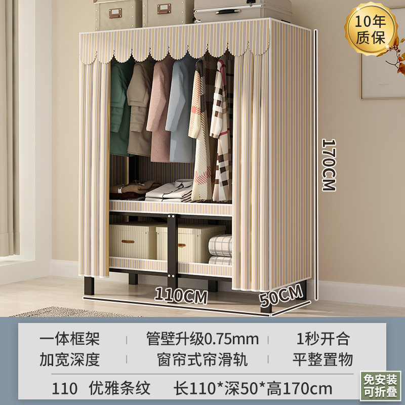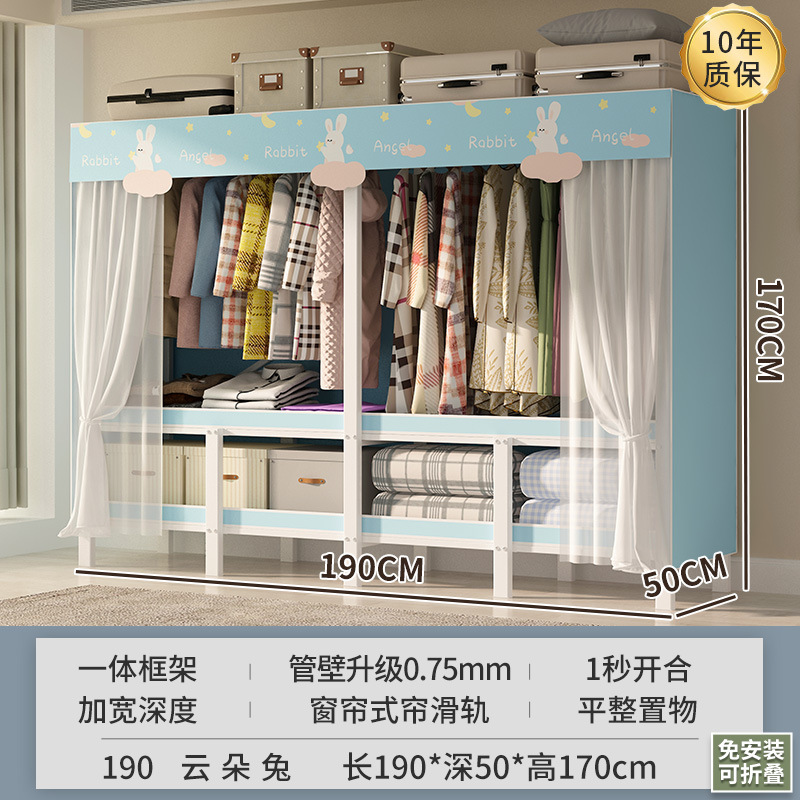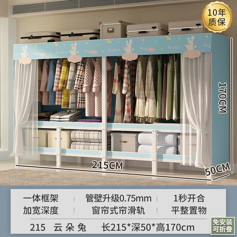 설치 무료 간단한 천 옷장 침실 접이식 가정용 수납 캐비닛 렌탈룸 기숙사 경제적 인 철골 걸이 옷장