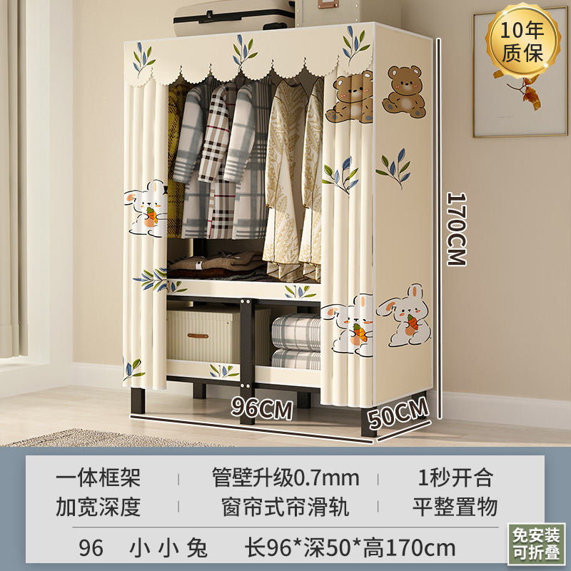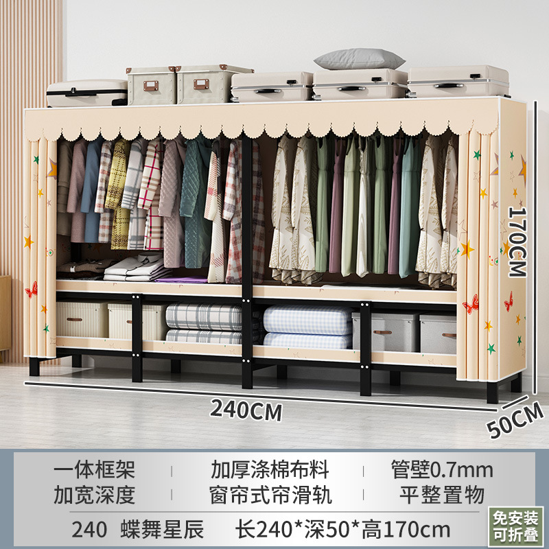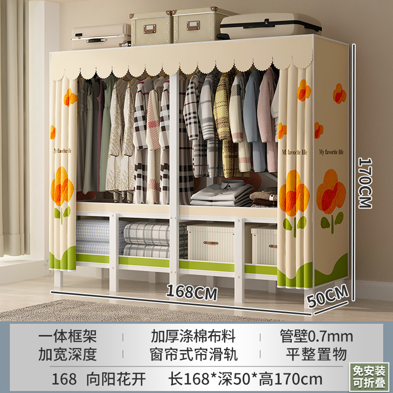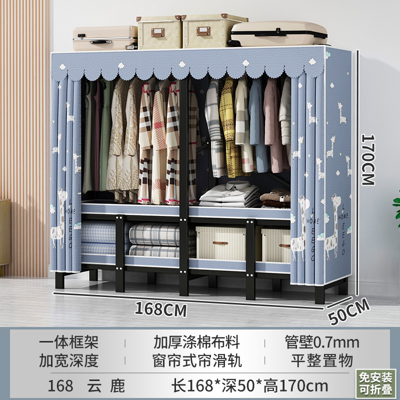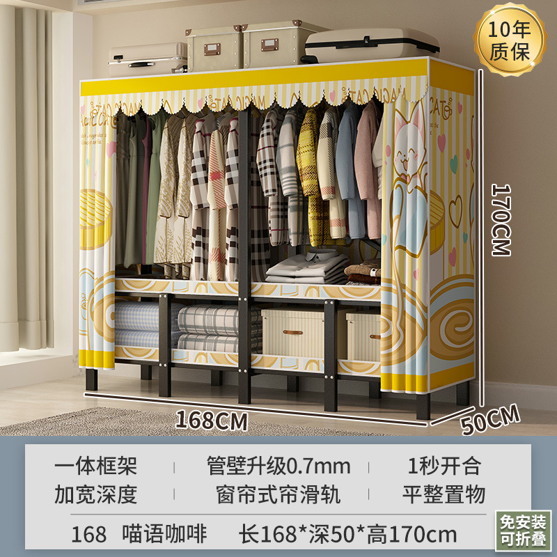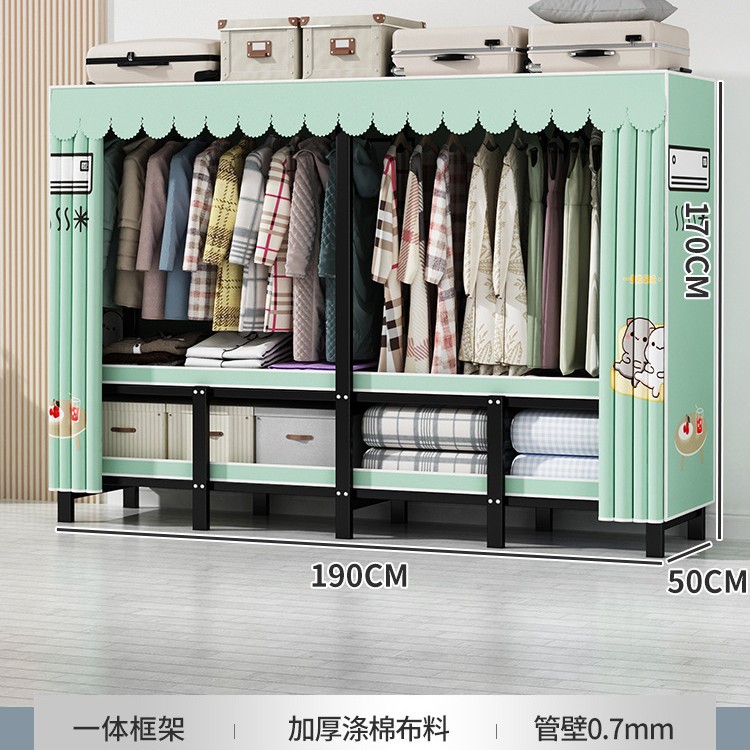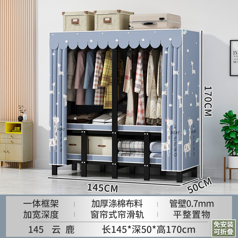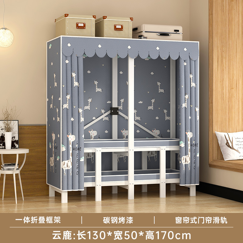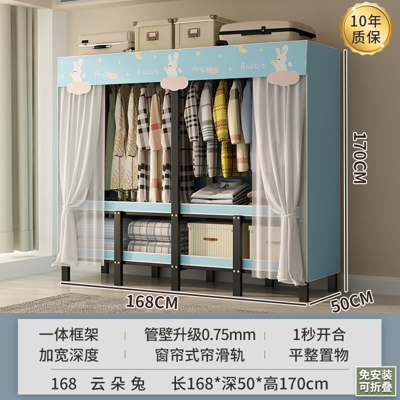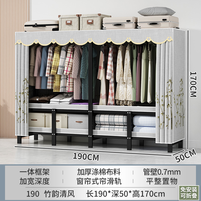 설치 무료 간단한 천 옷장 침실 접이식 가정용 수납 캐비닛 렌탈룸 기숙사 경제적 인 철골 걸이 옷장
