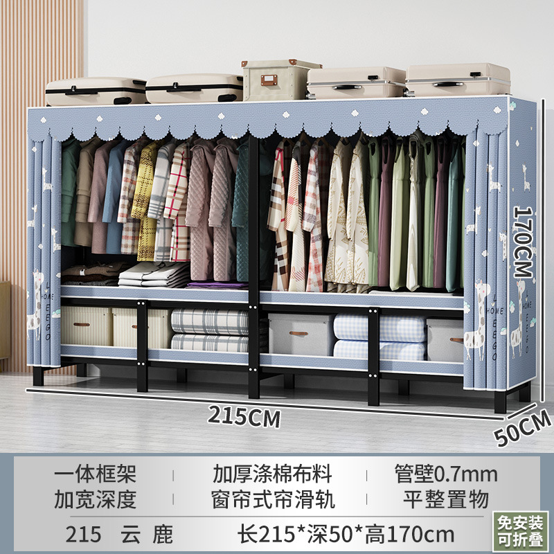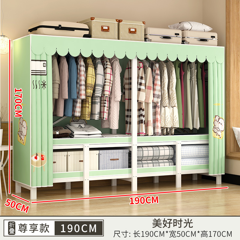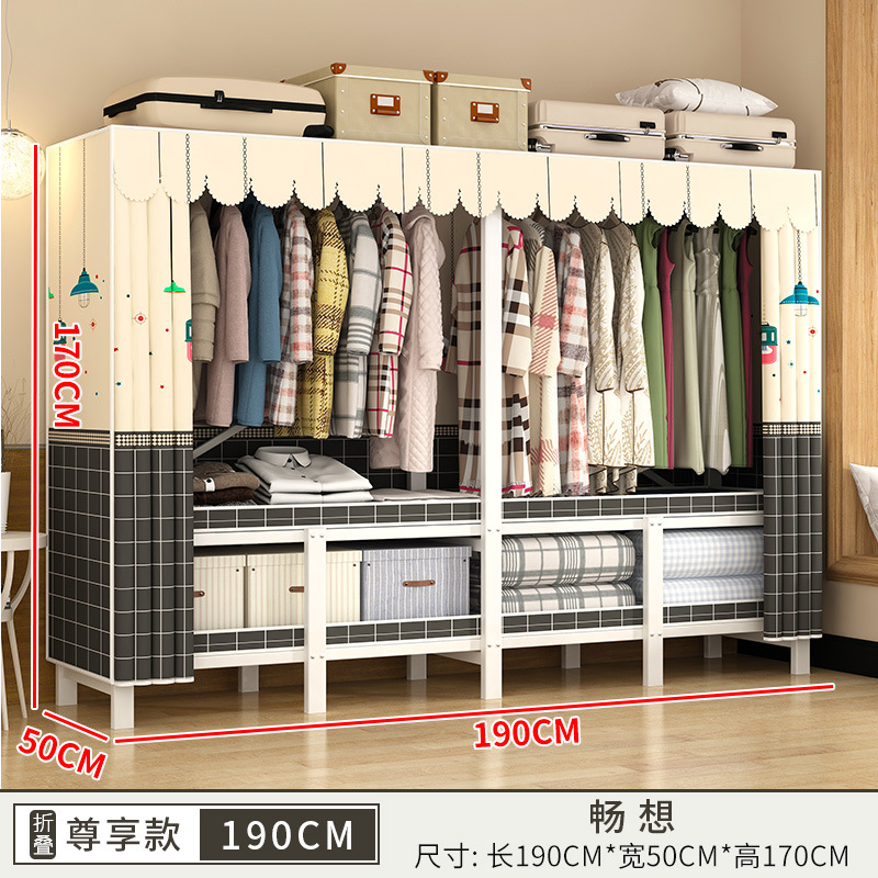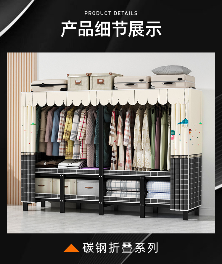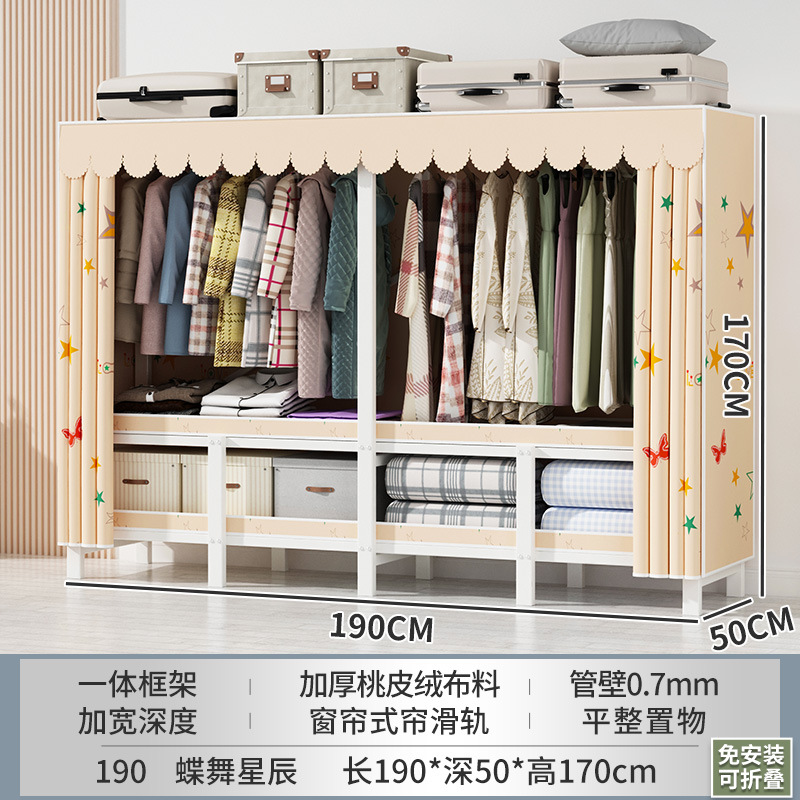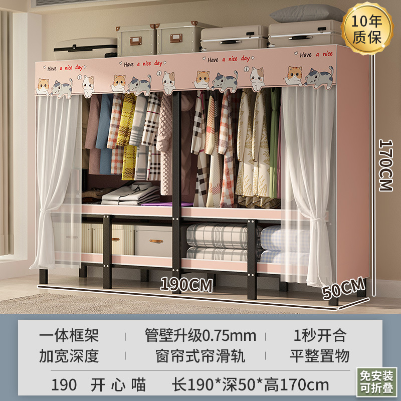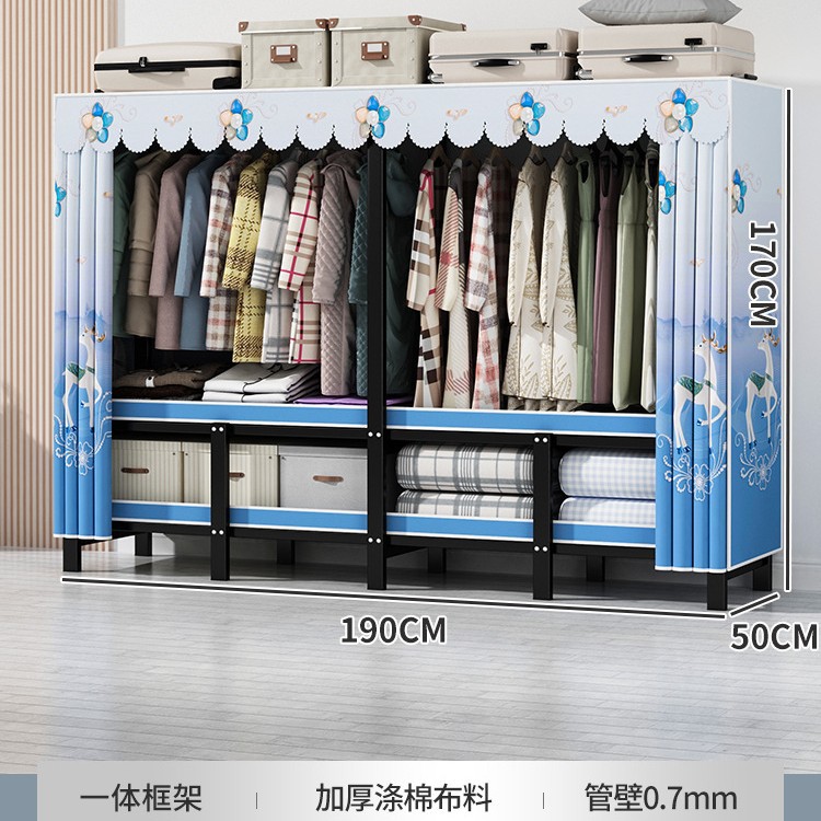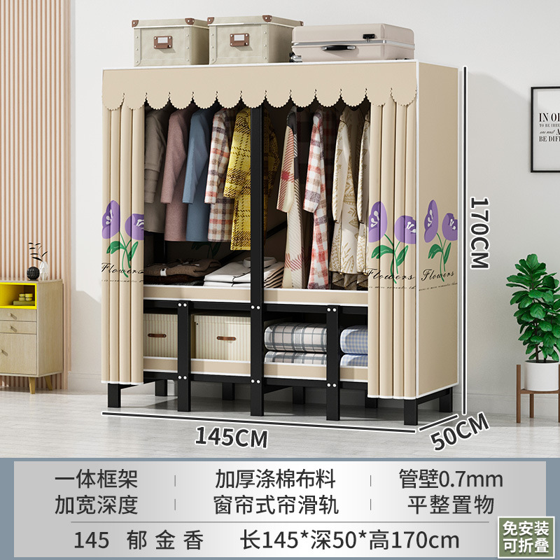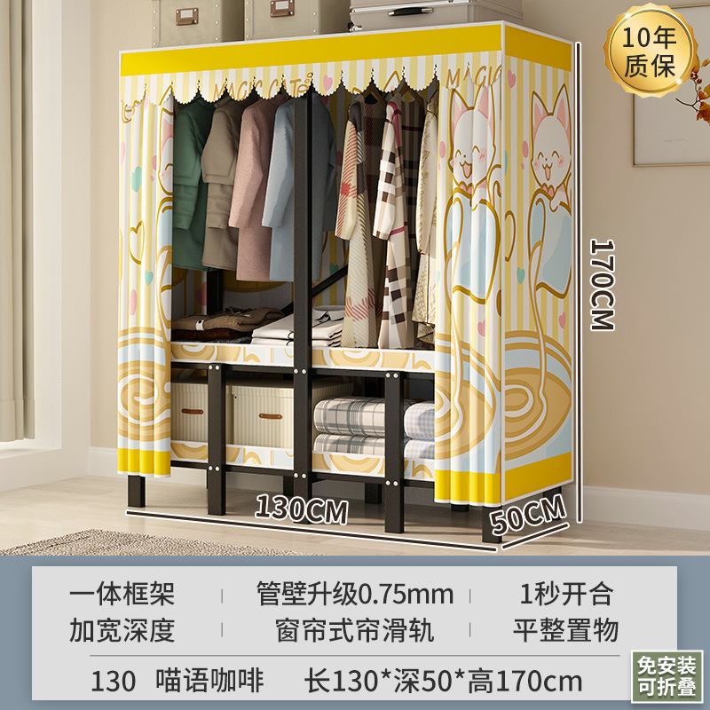 설치 무료 간단한 천 옷장 침실 접이식 가정용 수납 캐비닛 렌탈룸 기숙사 경제적 인 철골 걸이 옷장