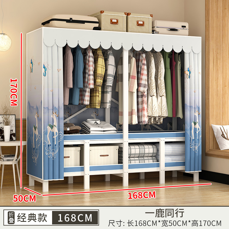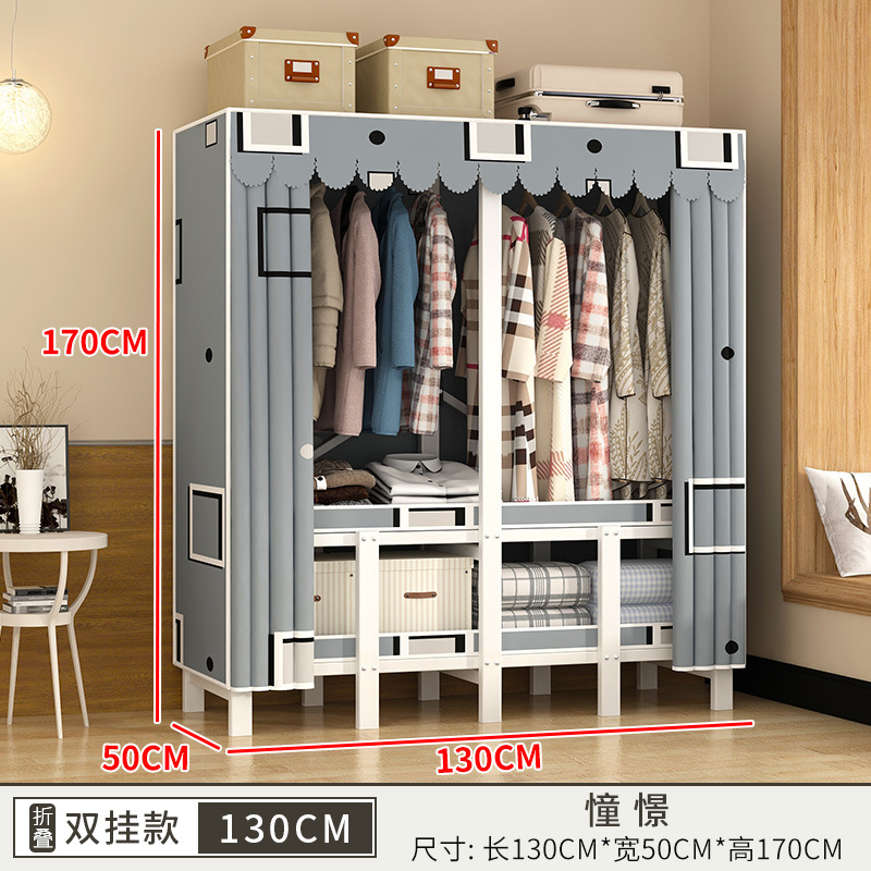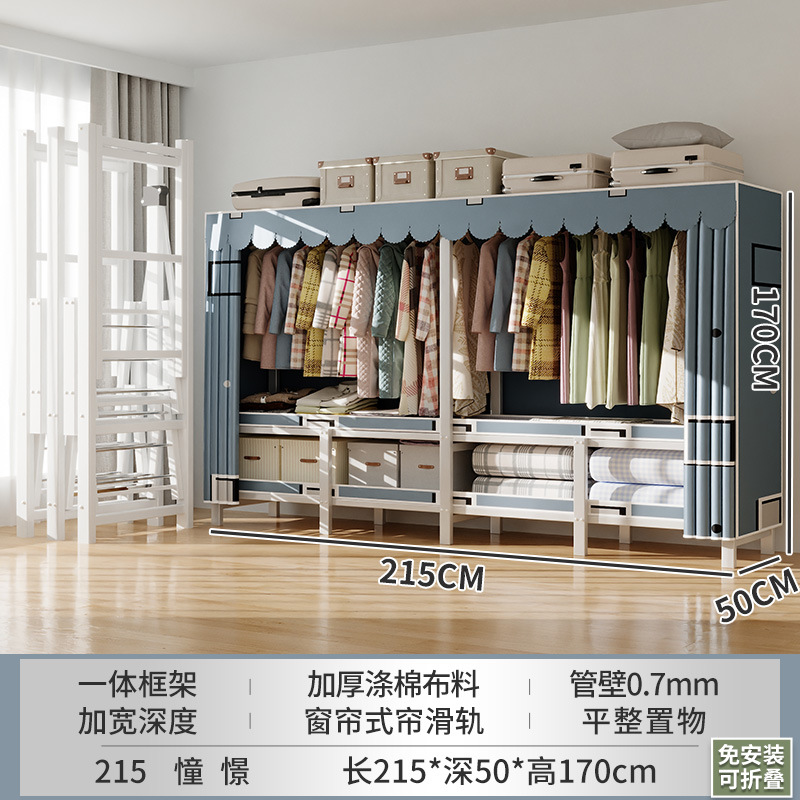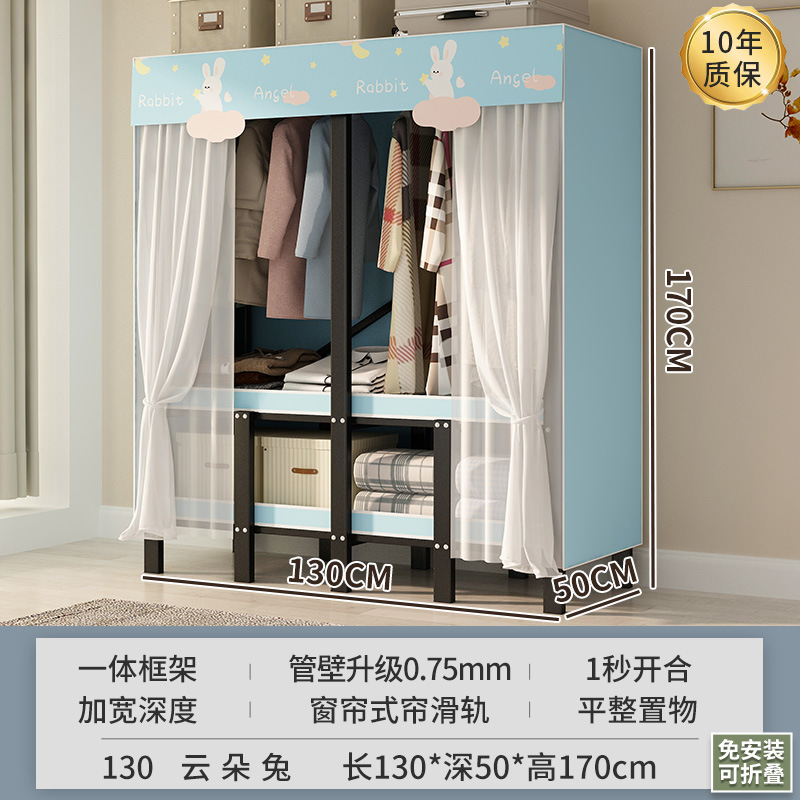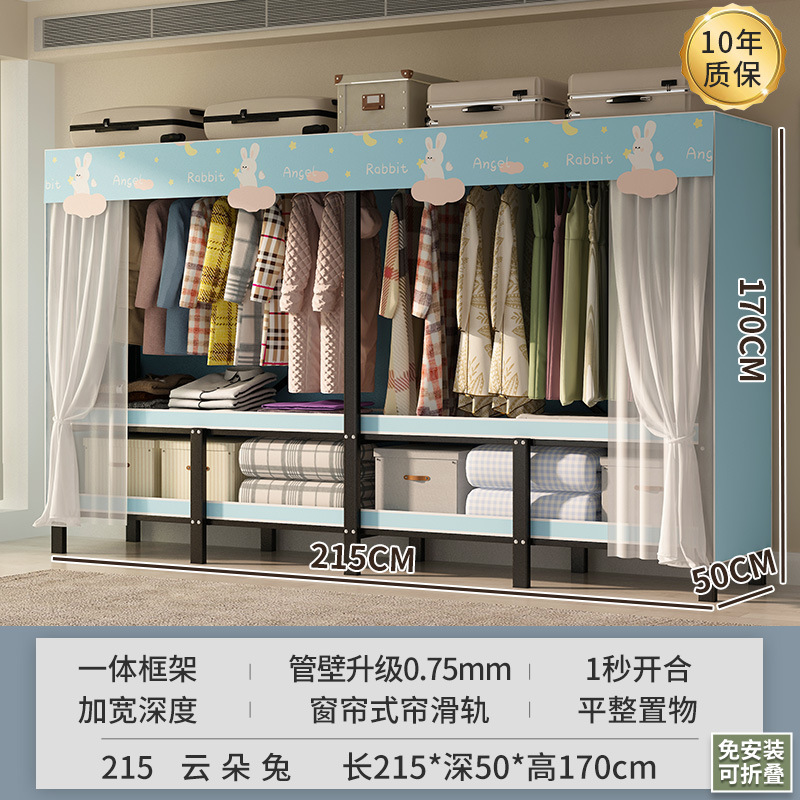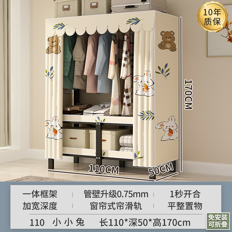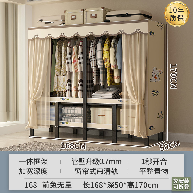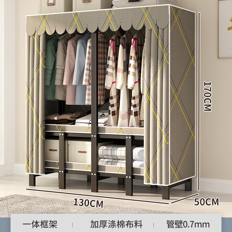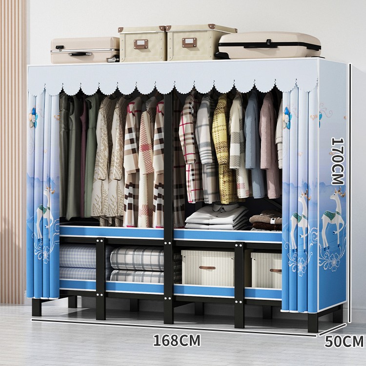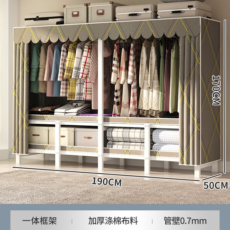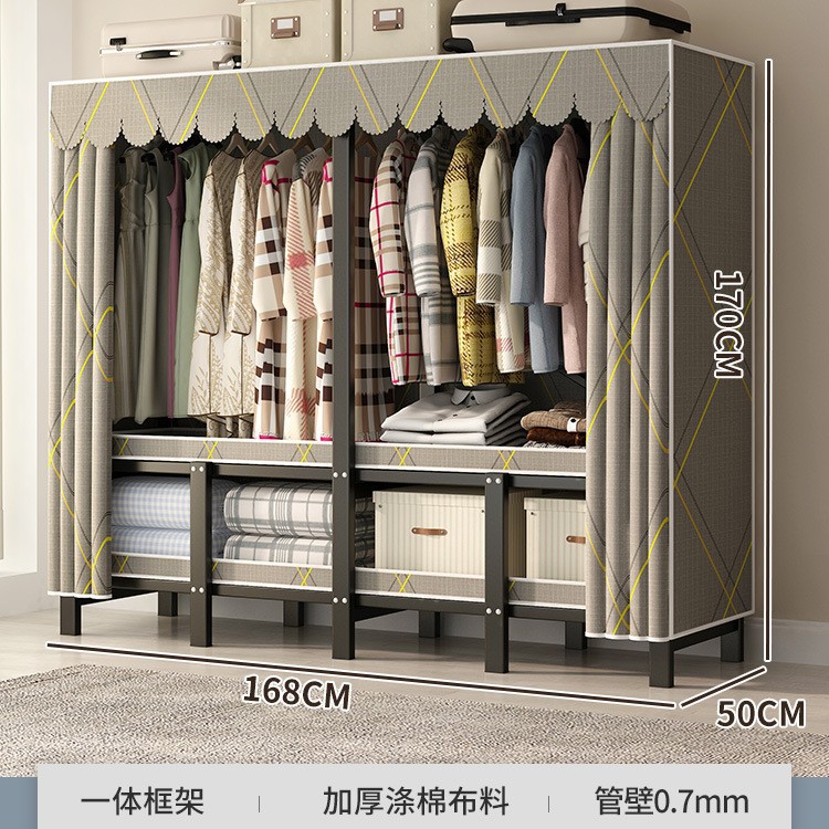 설치 무료 간단한 천 옷장 침실 접이식 가정용 수납 캐비닛 렌탈룸 기숙사 경제적 인 철골 걸이 옷장