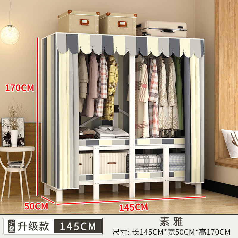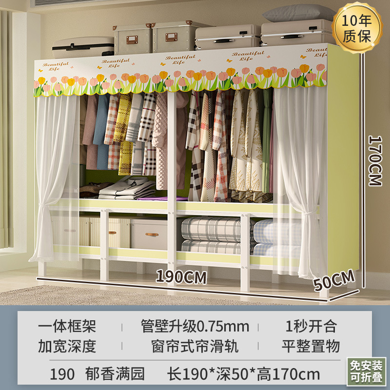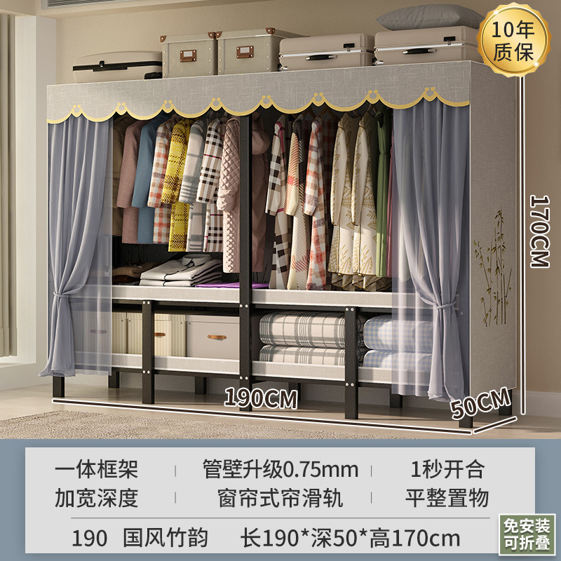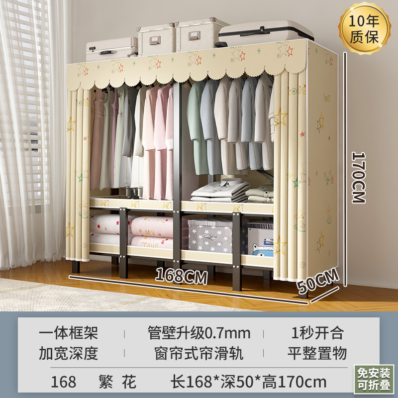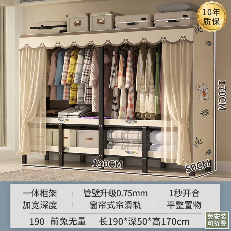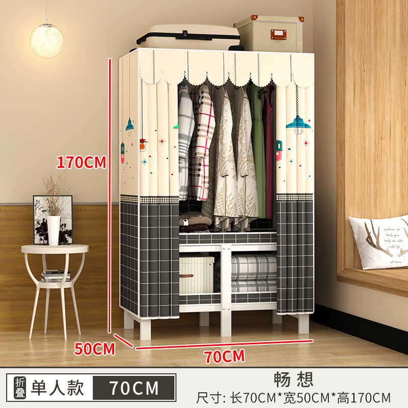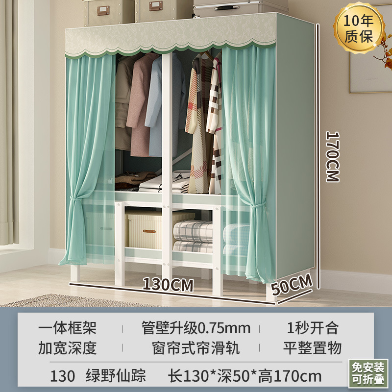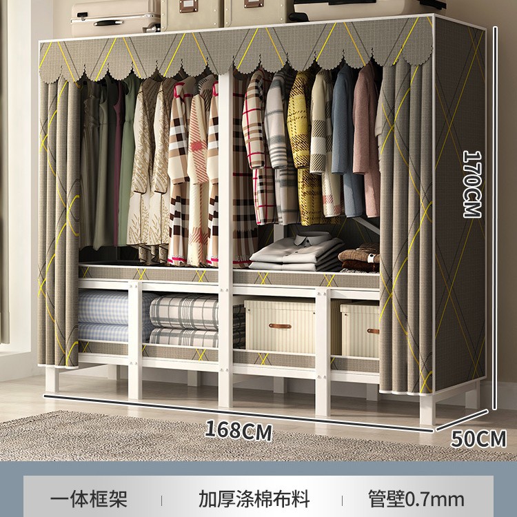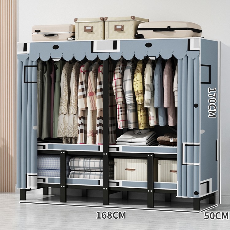 설치 무료 간단한 천 옷장 침실 접이식 가정용 수납 캐비닛 렌탈룸 기숙사 경제적 인 철골 걸이 옷장