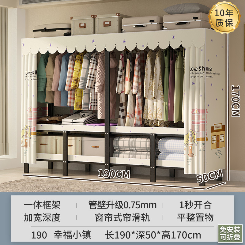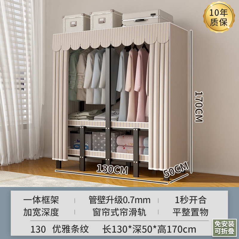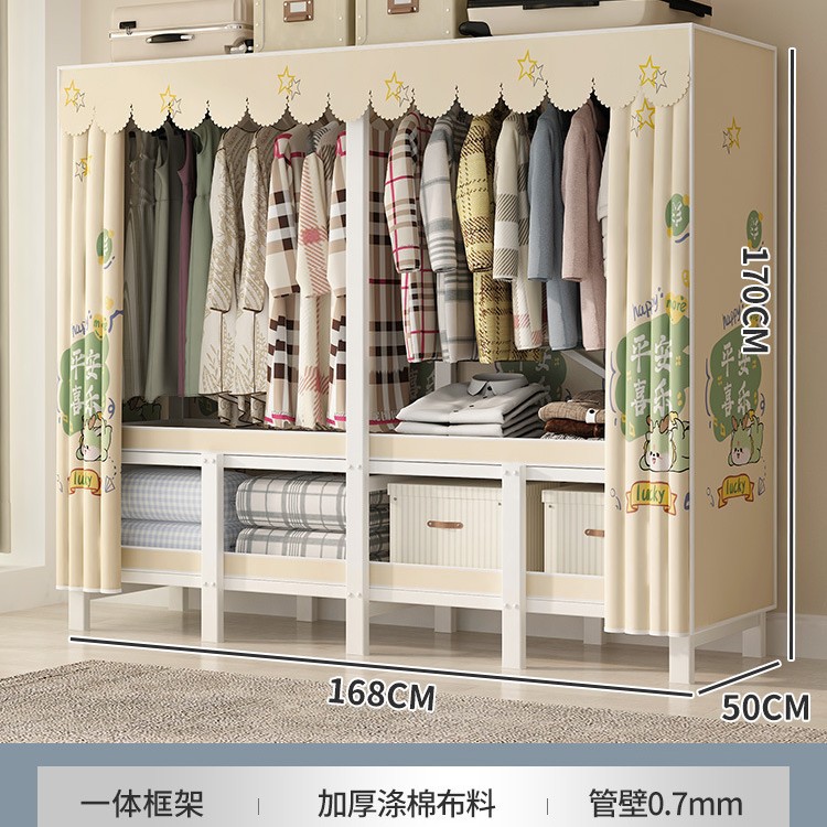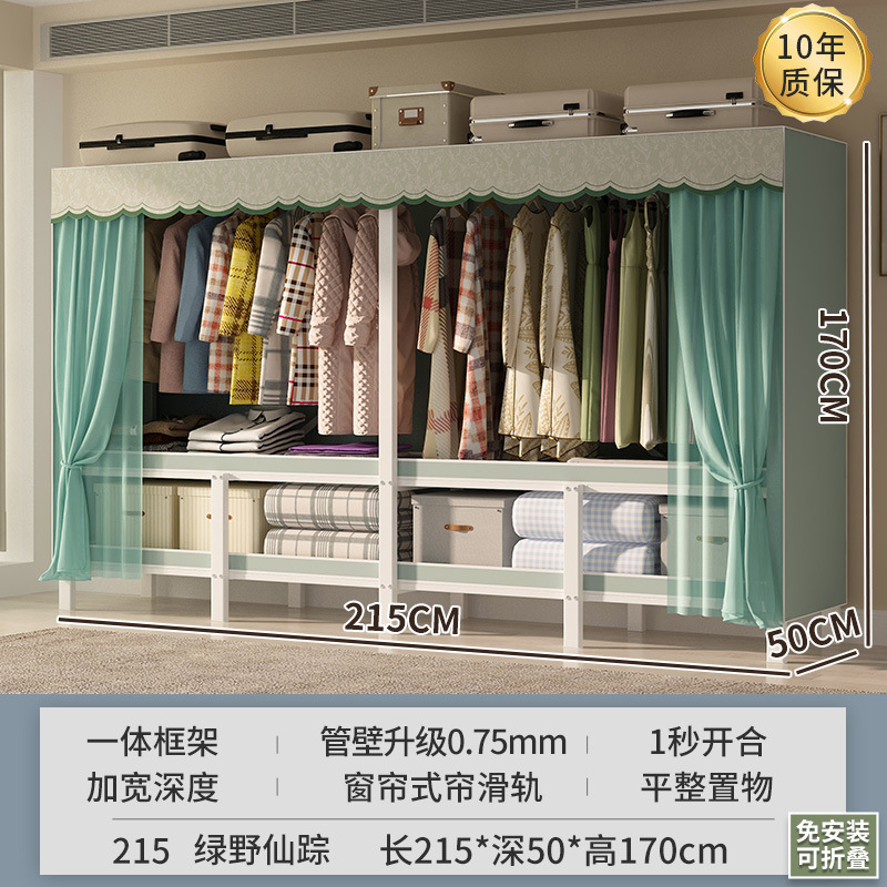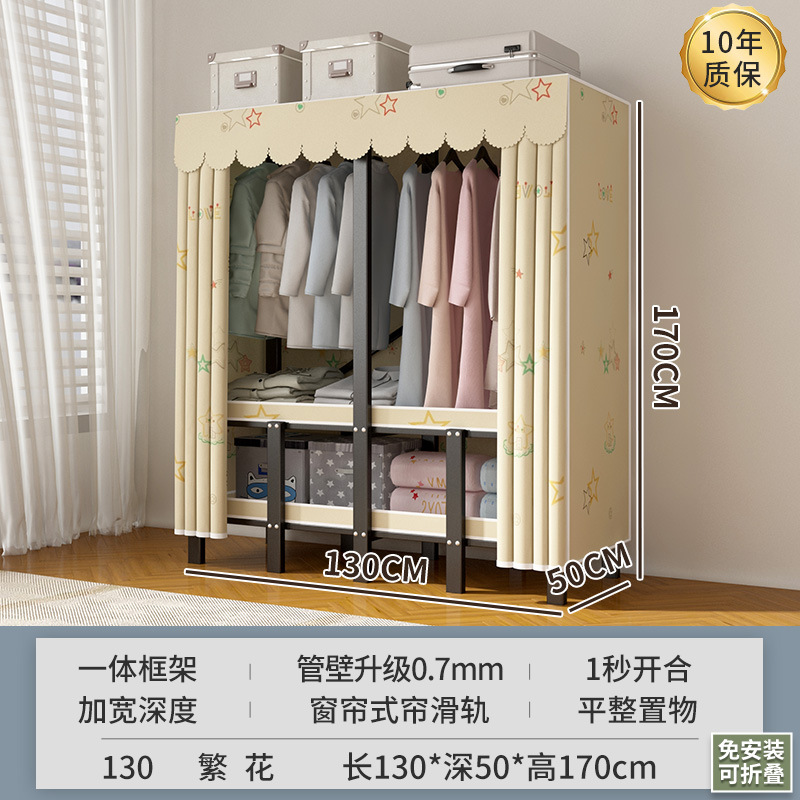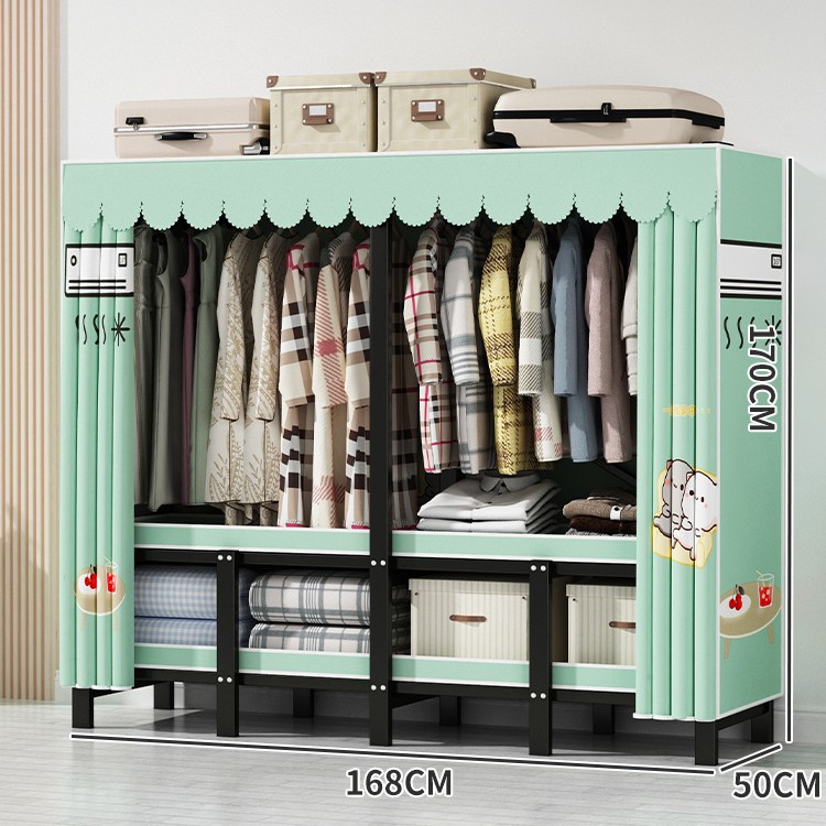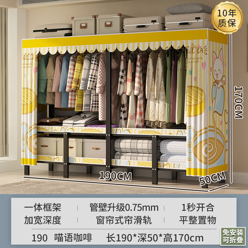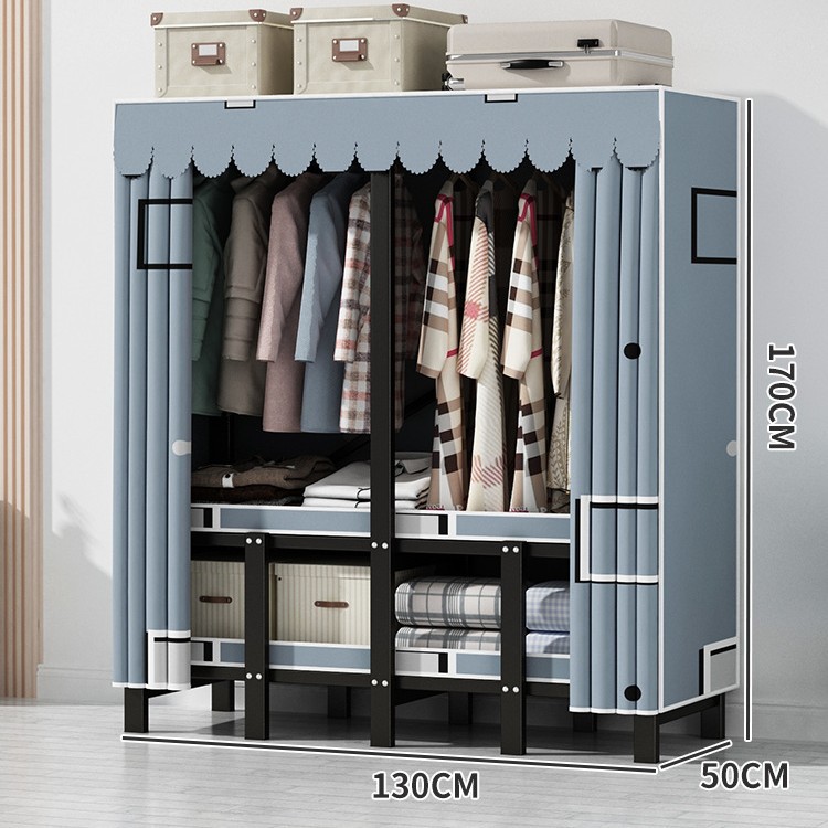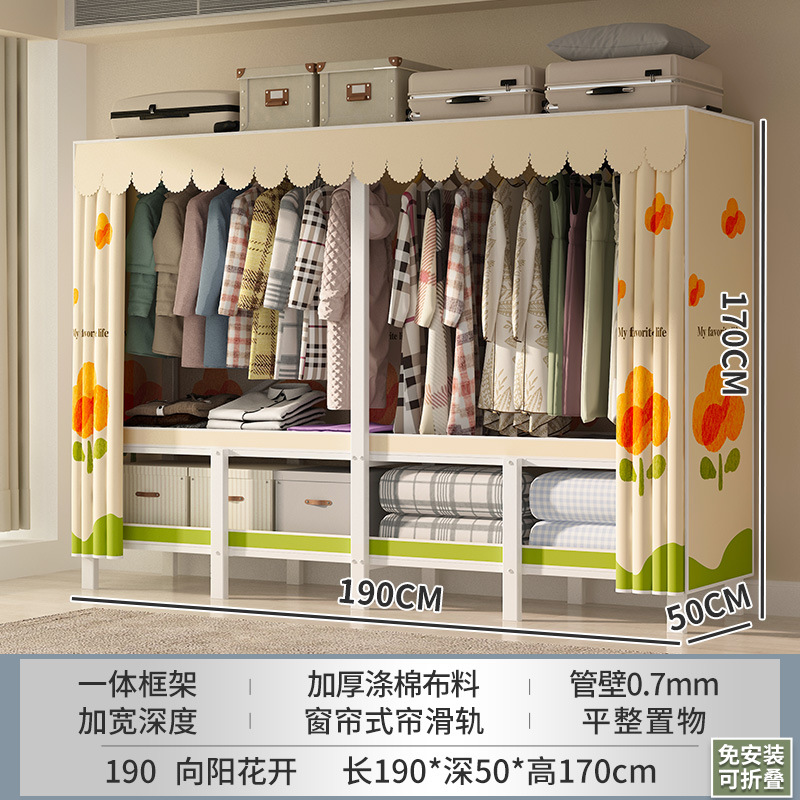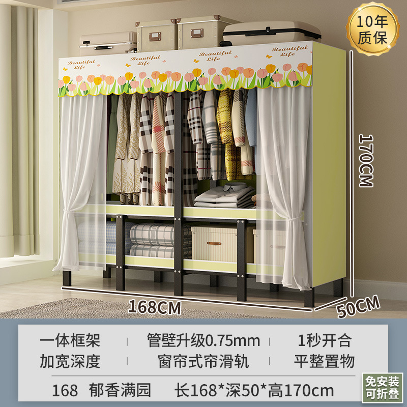 설치 무료 간단한 천 옷장 침실 접이식 가정용 수납 캐비닛 렌탈룸 기숙사 경제적 인 철골 걸이 옷장