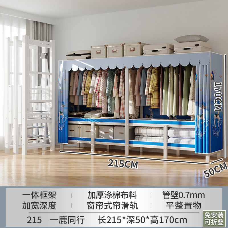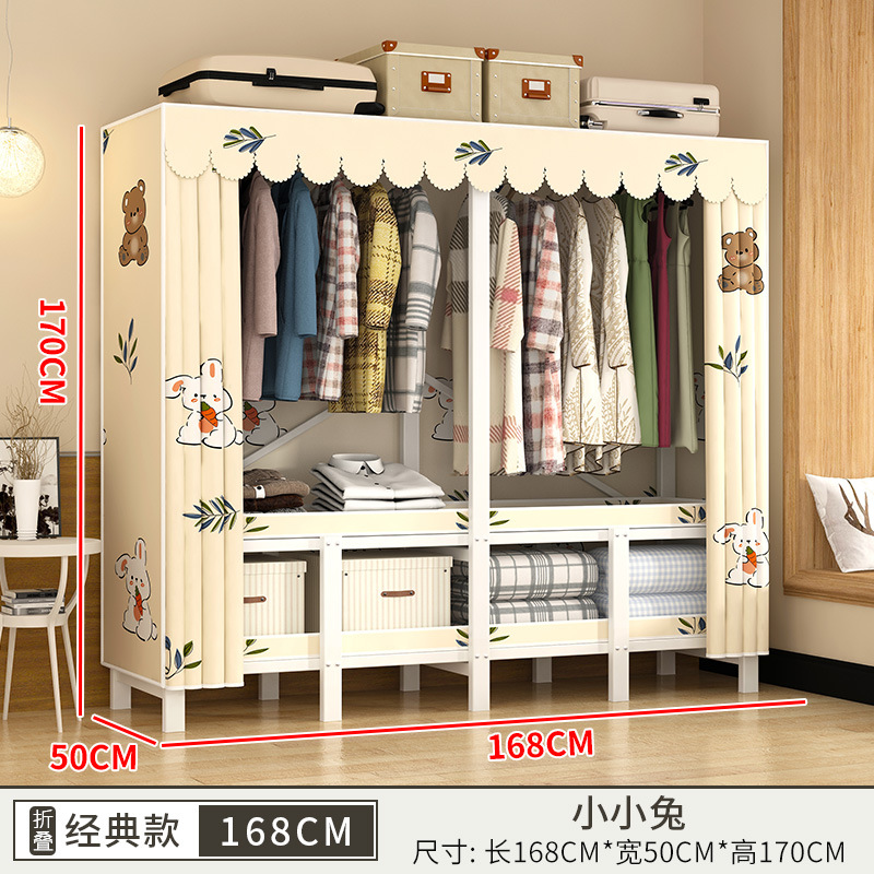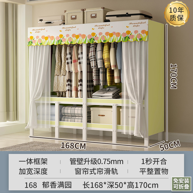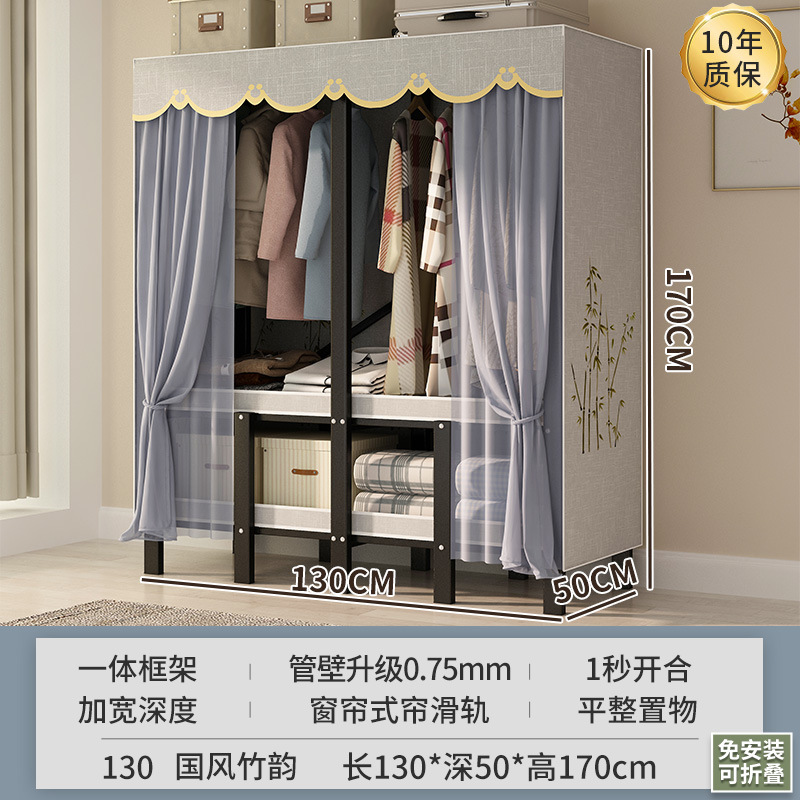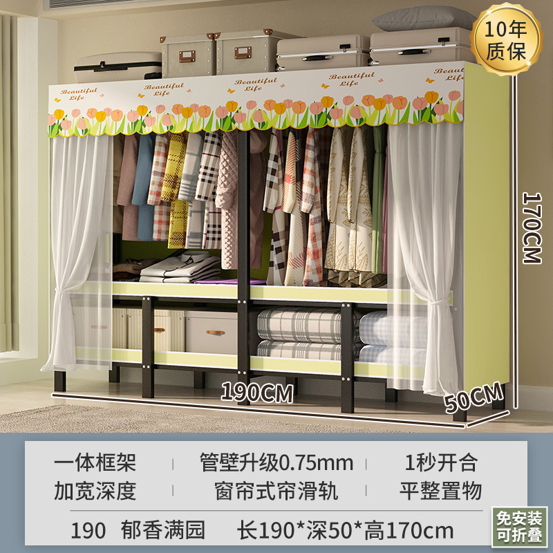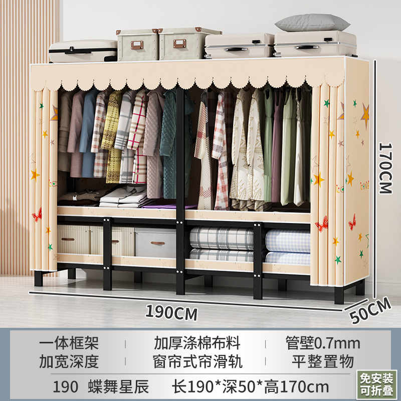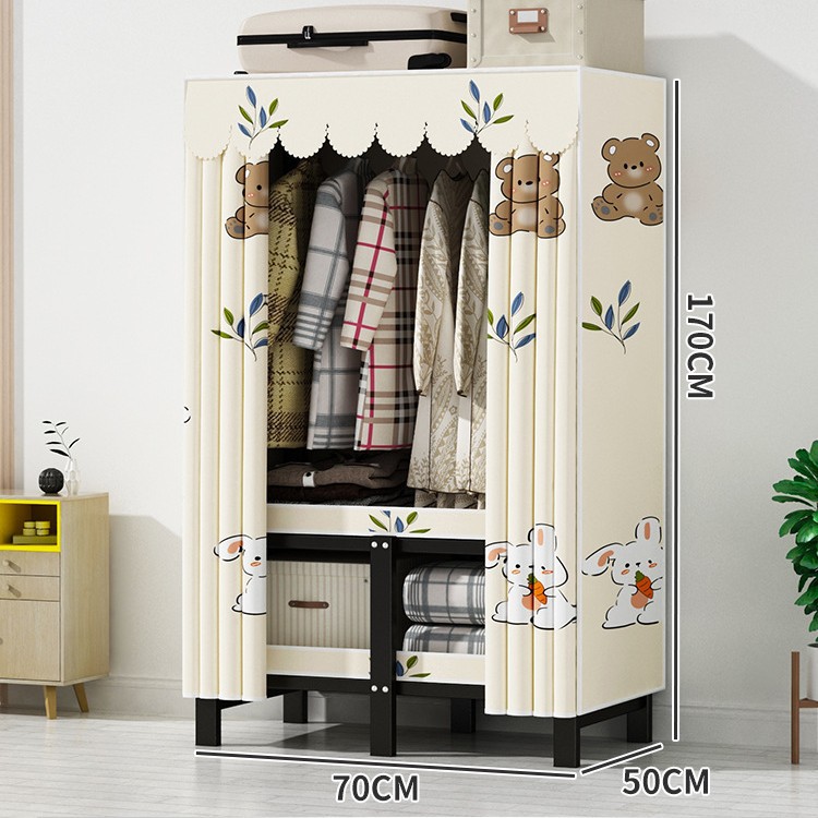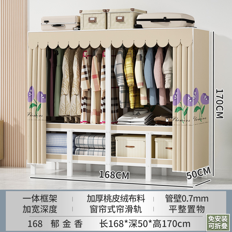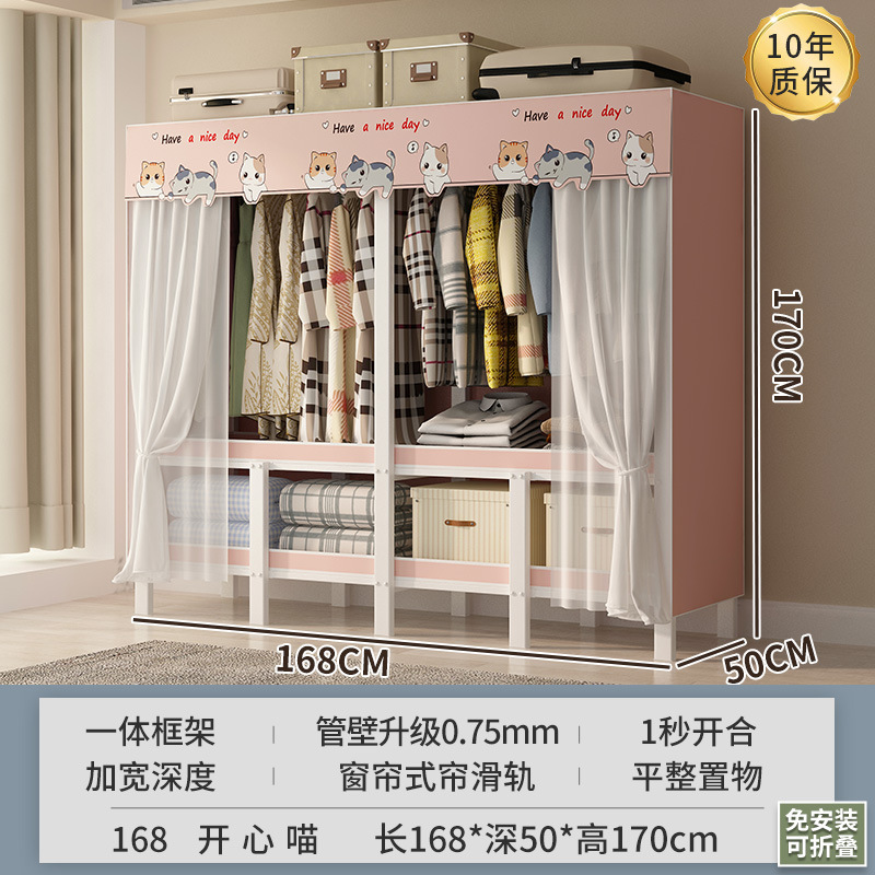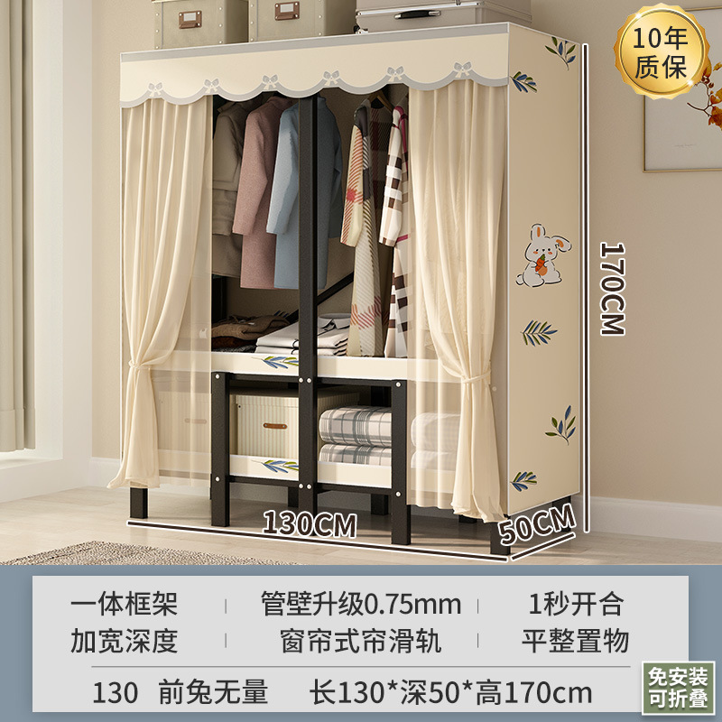 설치 무료 간단한 천 옷장 침실 접이식 가정용 수납 캐비닛 렌탈룸 기숙사 경제적 인 철골 걸이 옷장