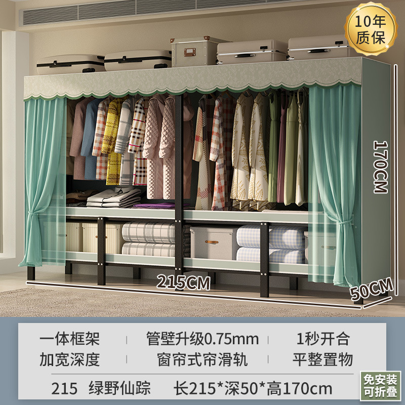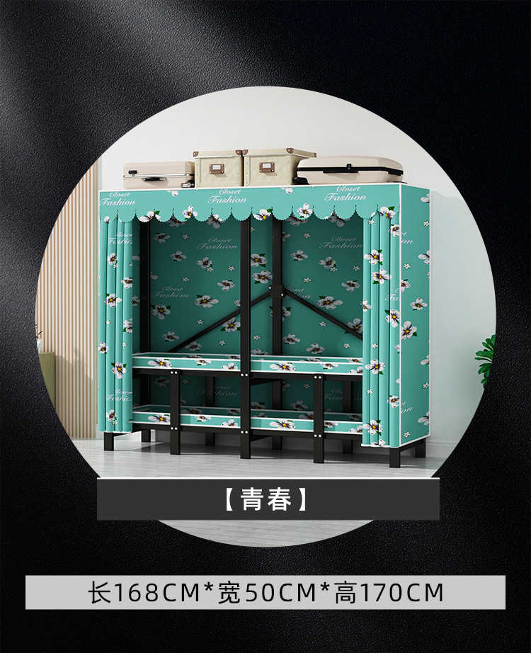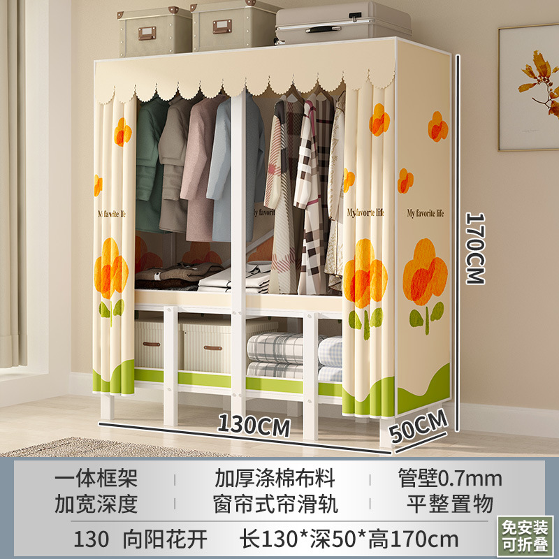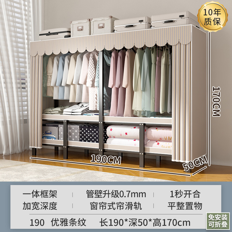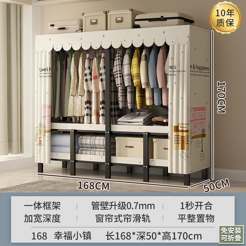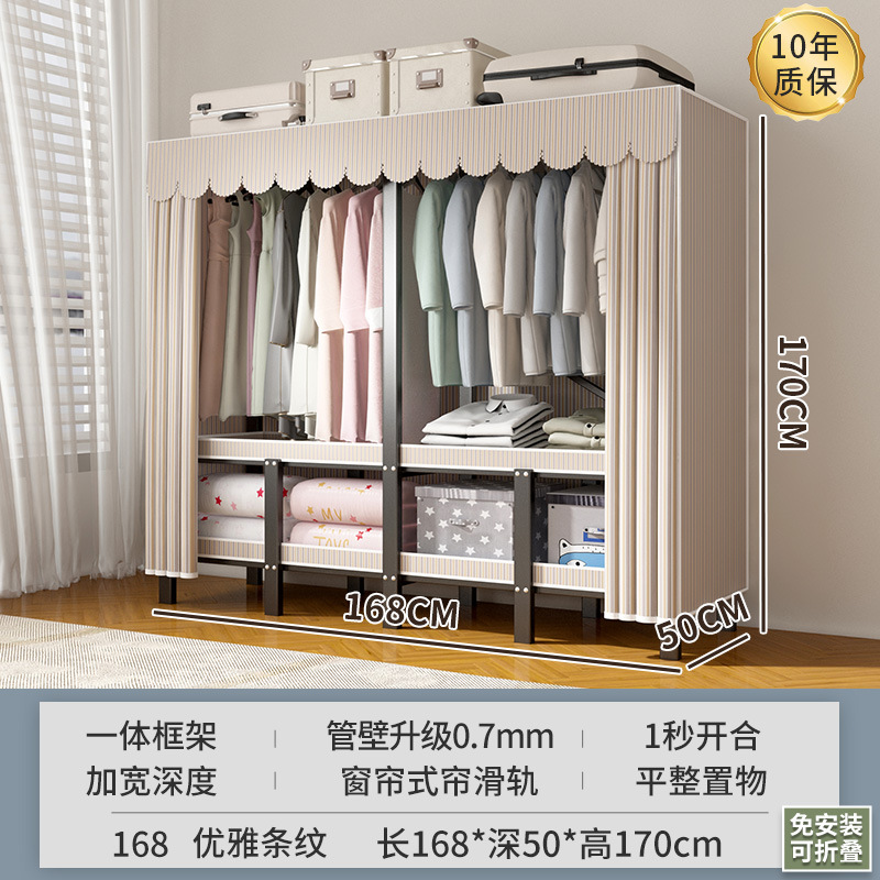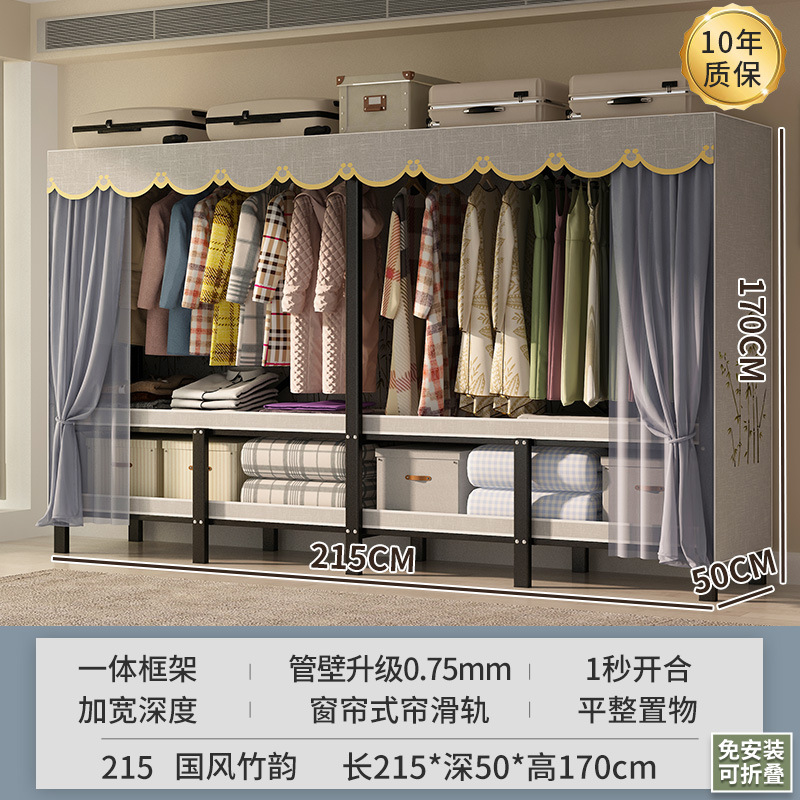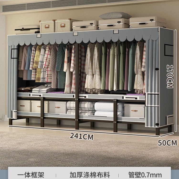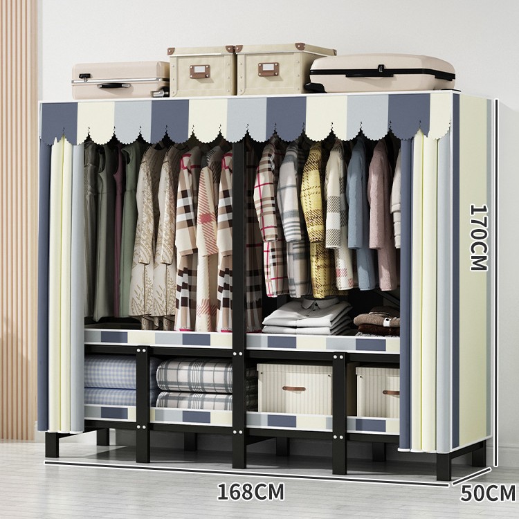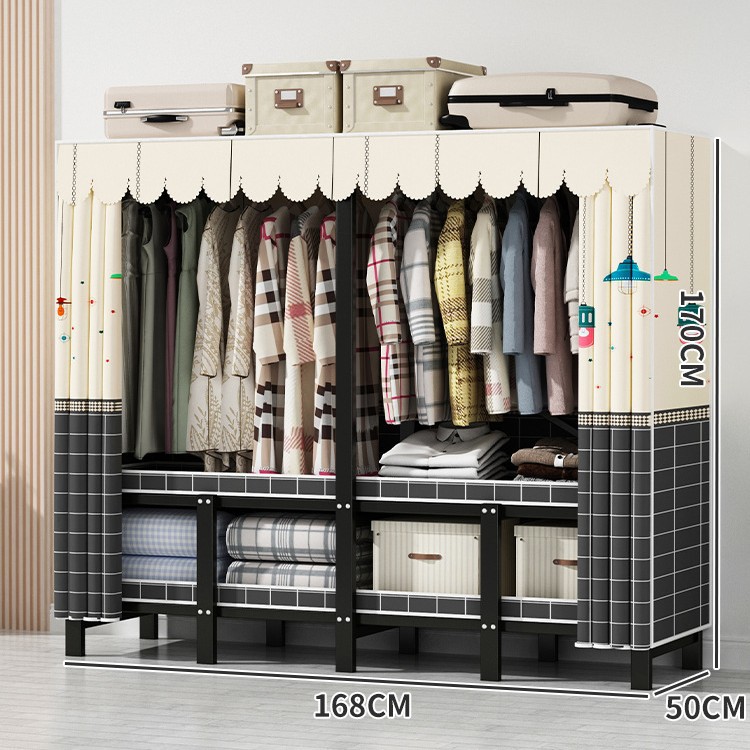 설치 무료 간단한 천 옷장 침실 접이식 가정용 수납 캐비닛 렌탈룸 기숙사 경제적 인 철골 걸이 옷장