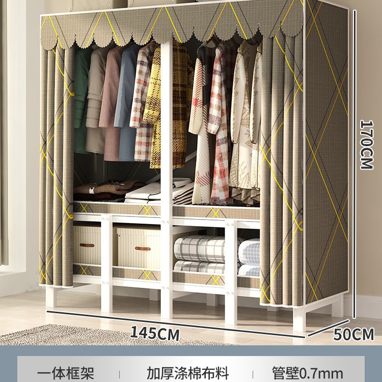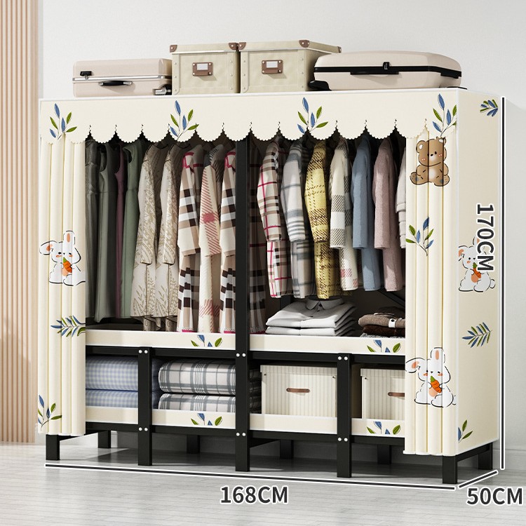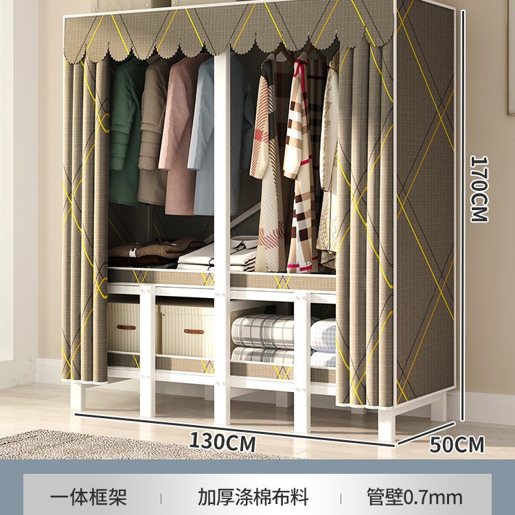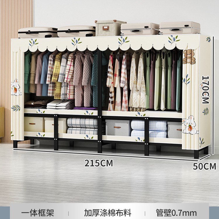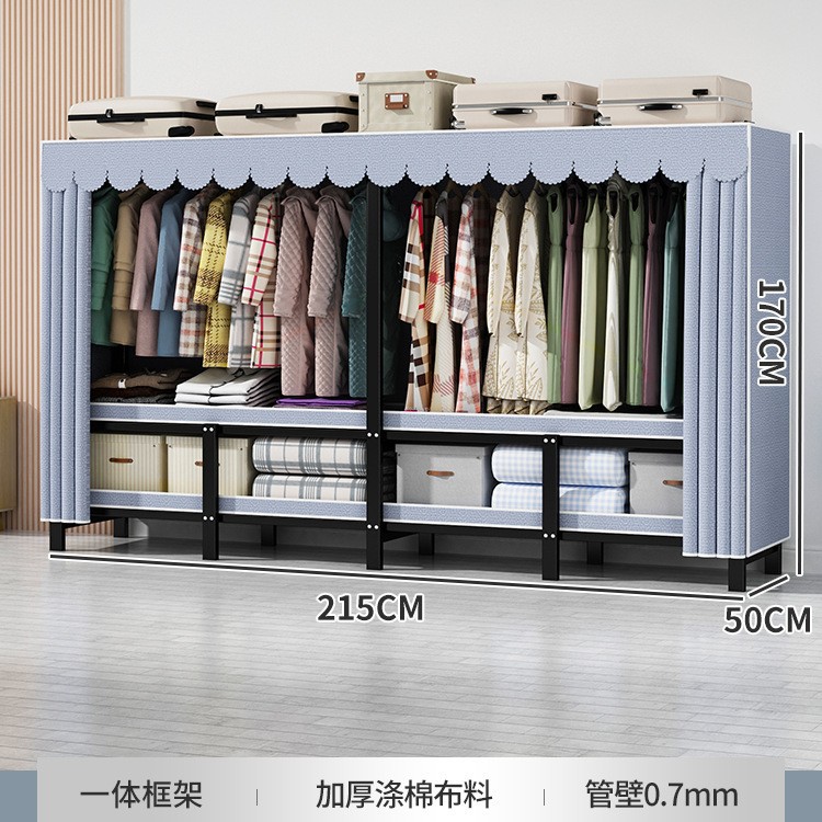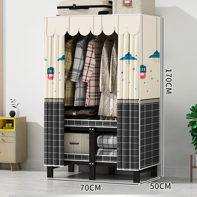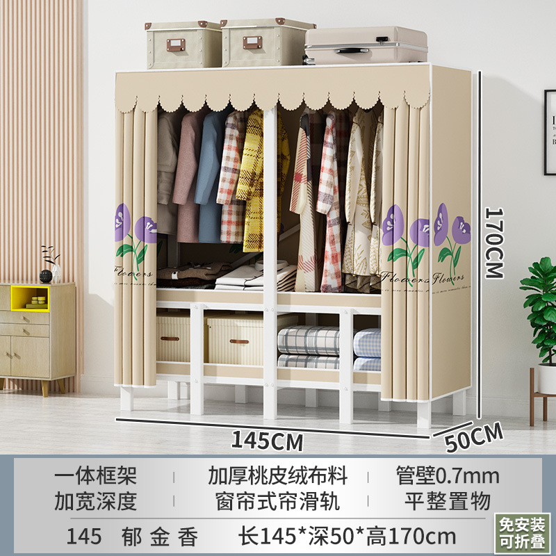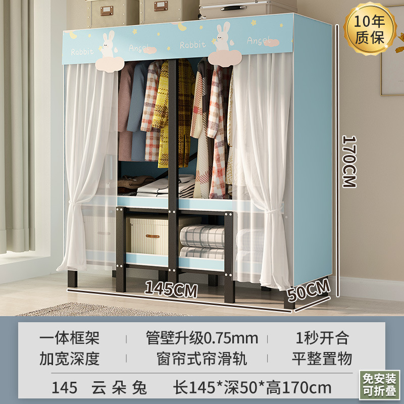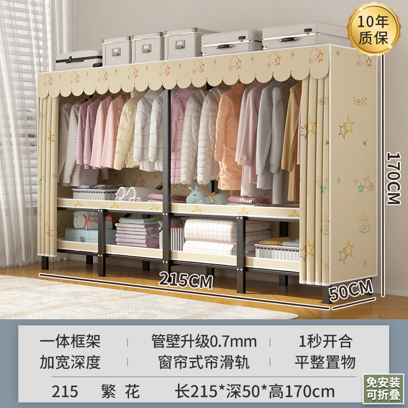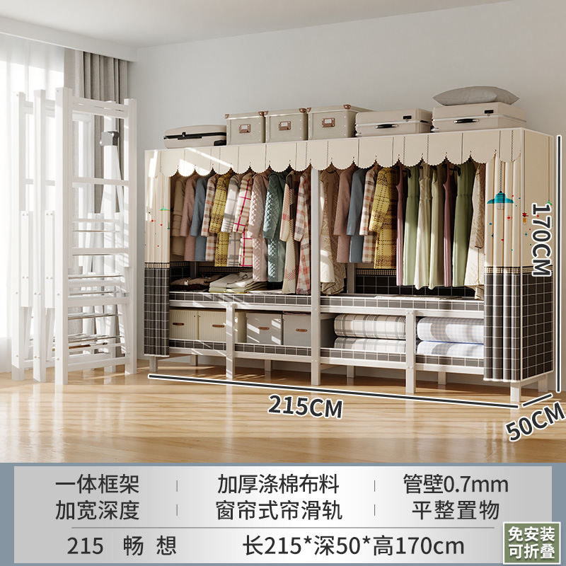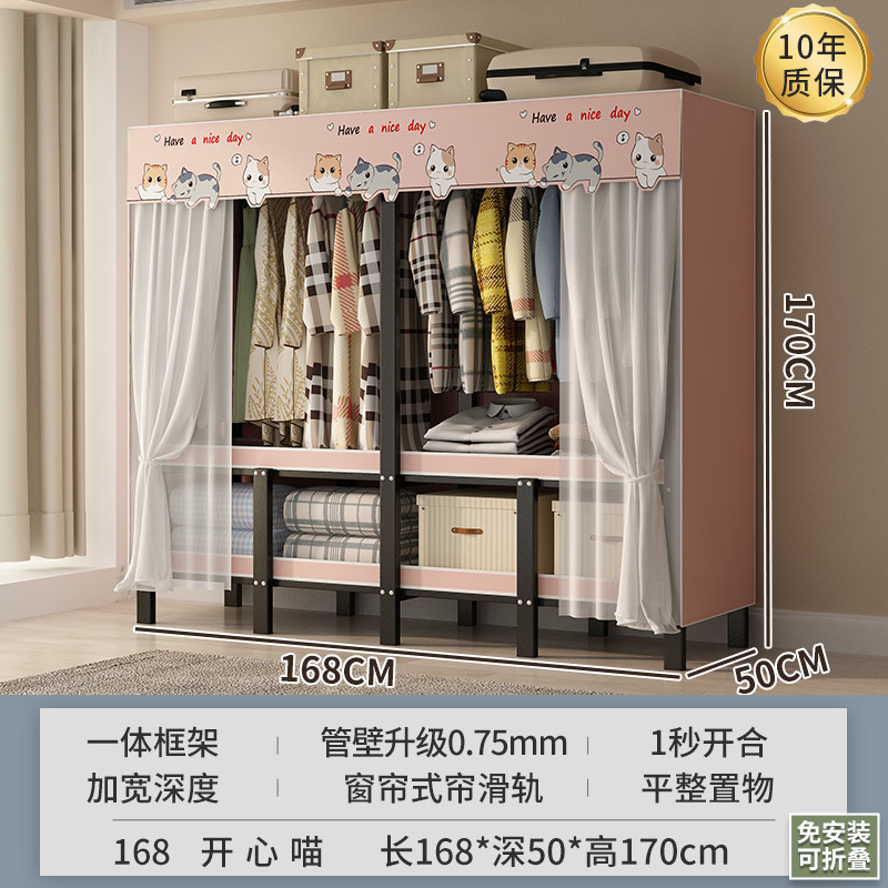 설치 무료 간단한 천 옷장 침실 접이식 가정용 수납 캐비닛 렌탈룸 기숙사 경제적 인 철골 걸이 옷장