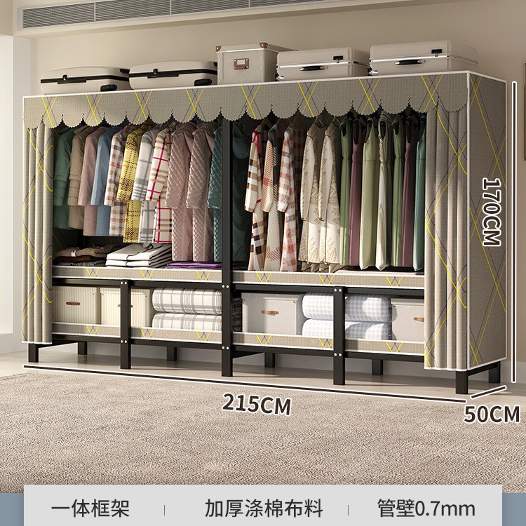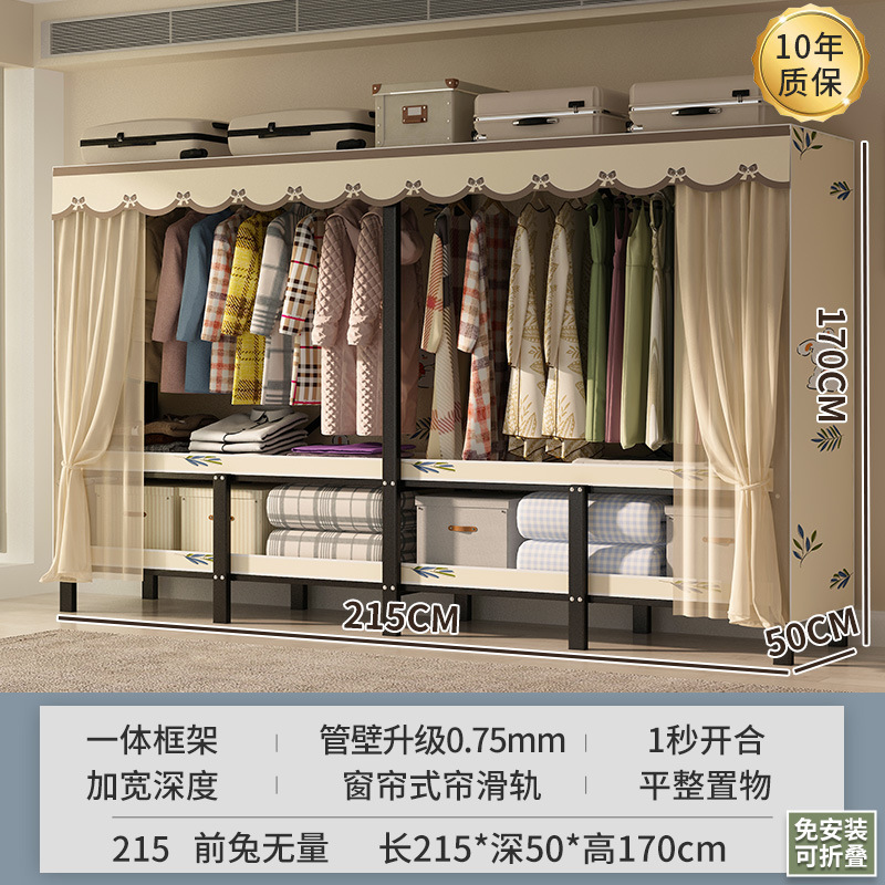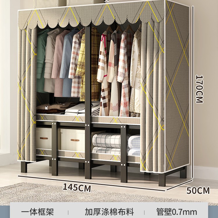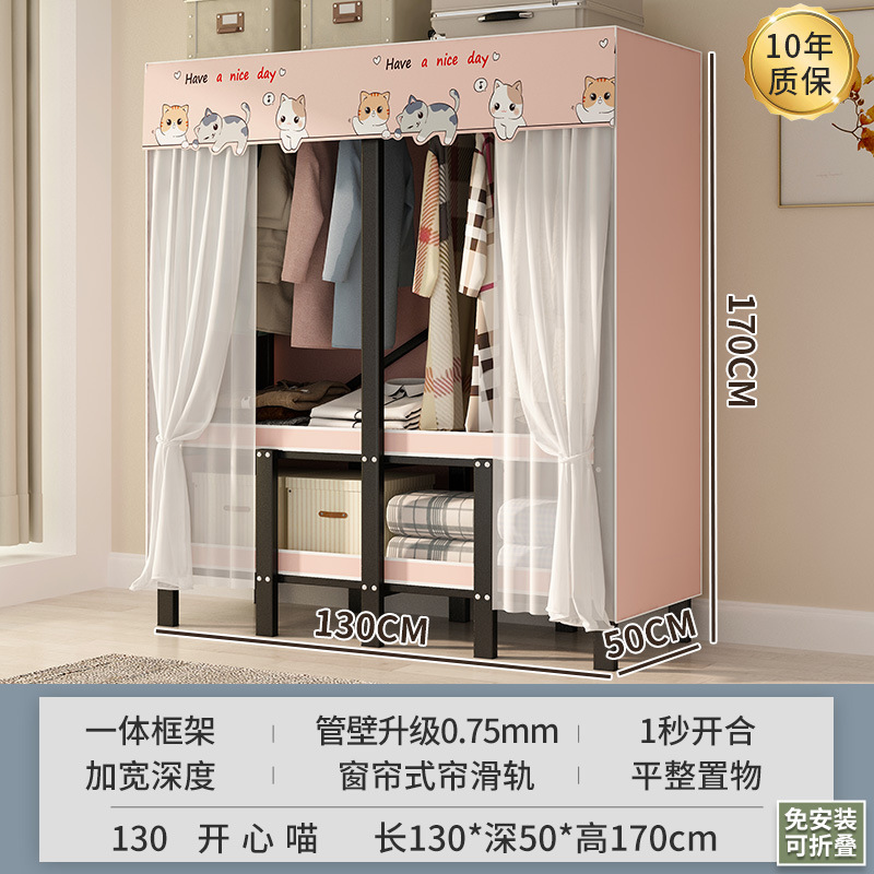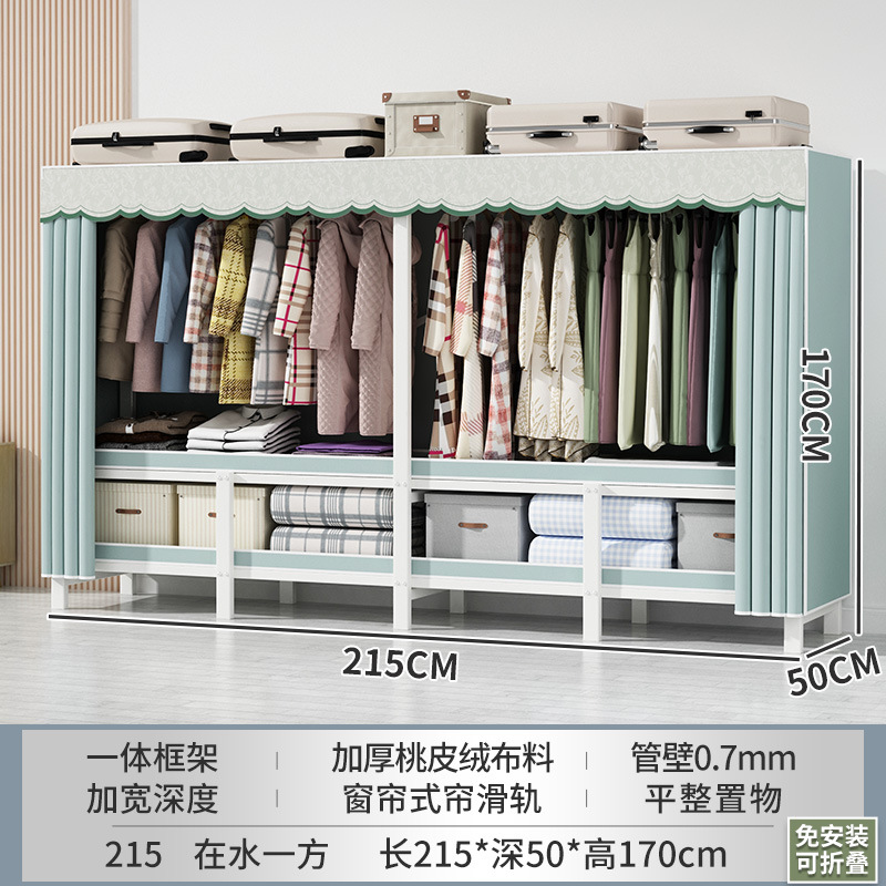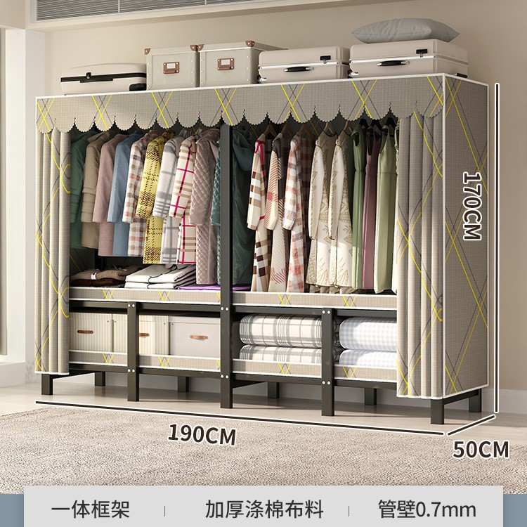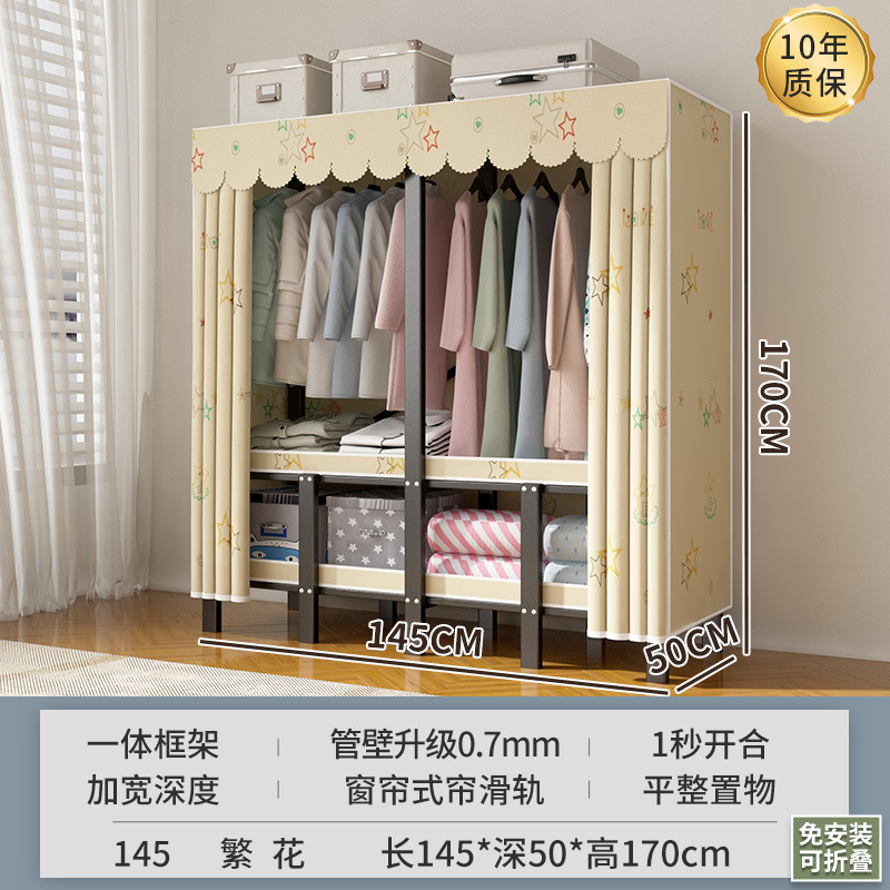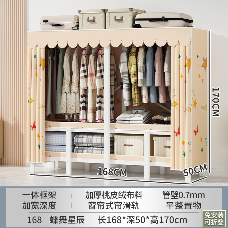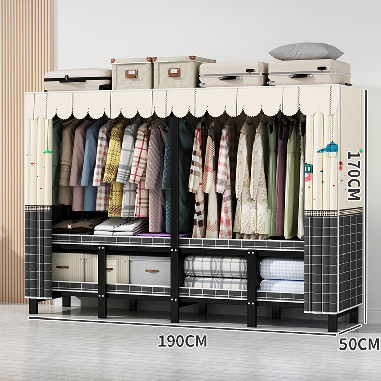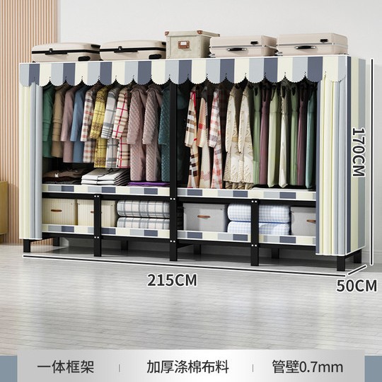 설치 무료 간단한 천 옷장 침실 접이식 가정용 수납 캐비닛 렌탈룸 기숙사 경제적 인 철골 걸이 옷장