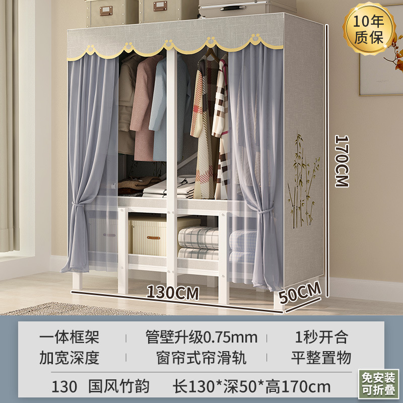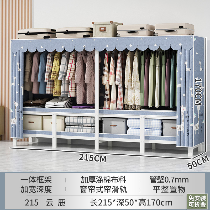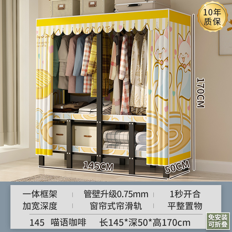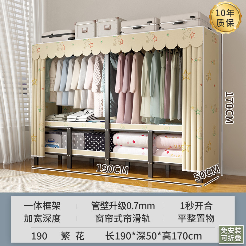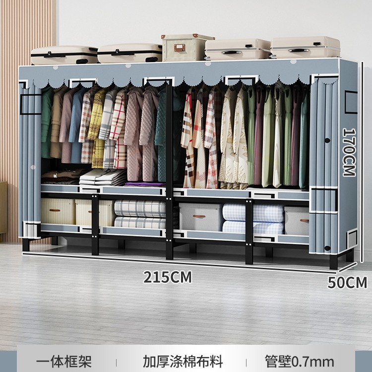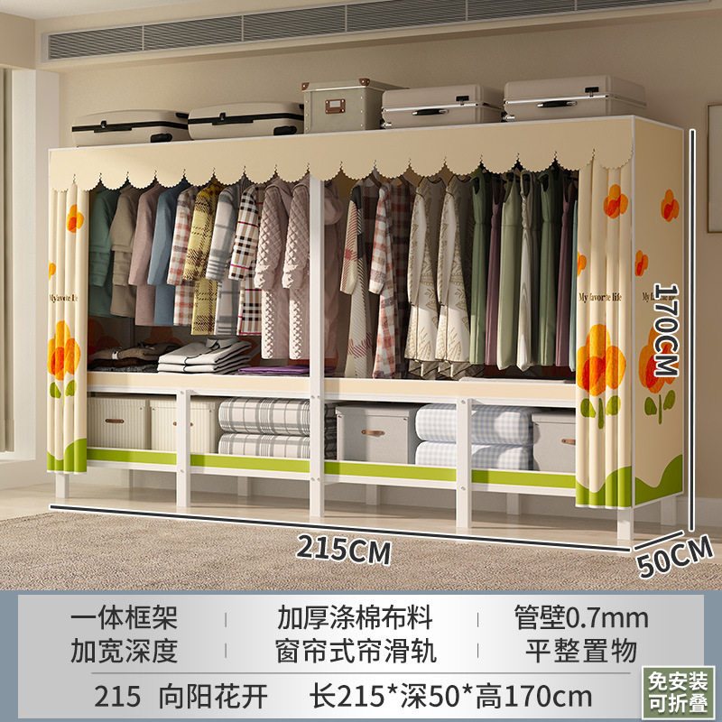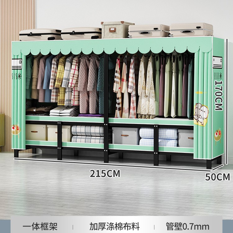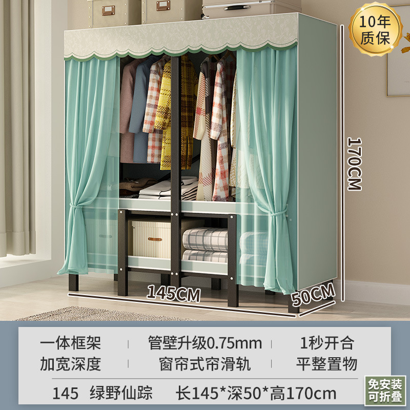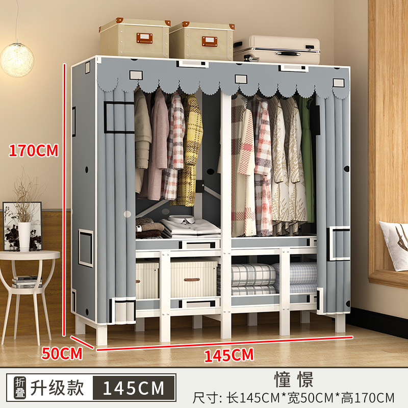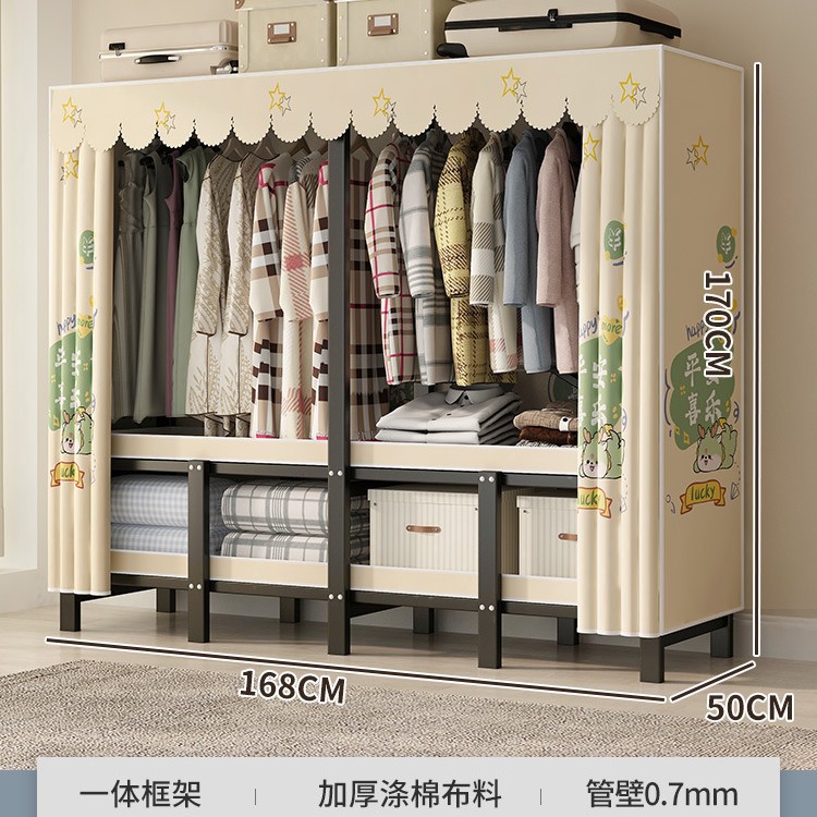 설치 무료 간단한 천 옷장 침실 접이식 가정용 수납 캐비닛 렌탈룸 기숙사 경제적 인 철골 걸이 옷장