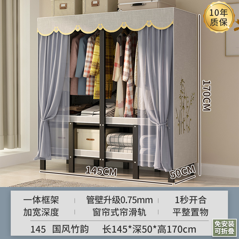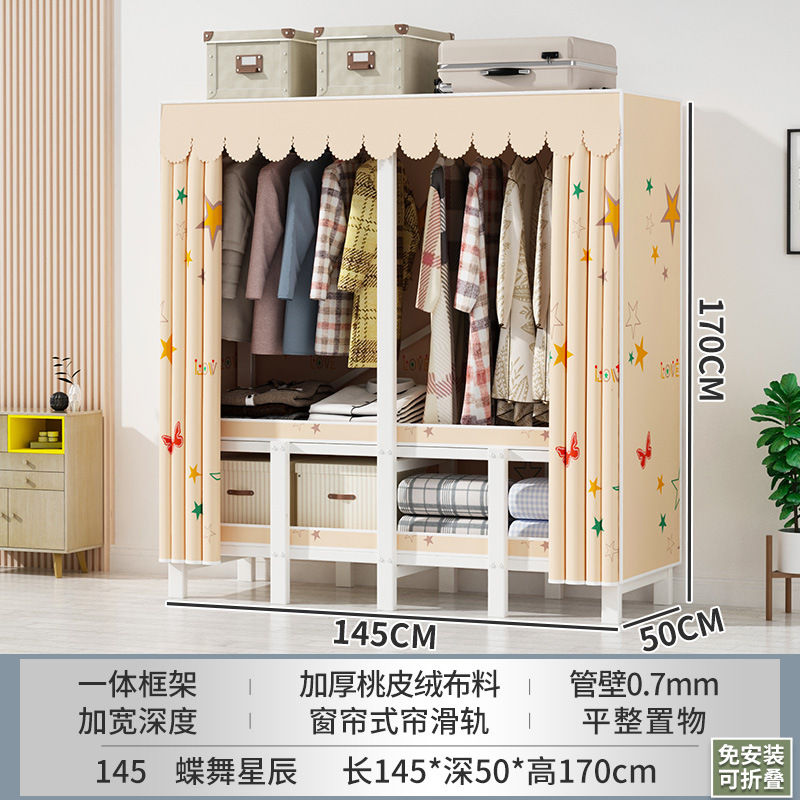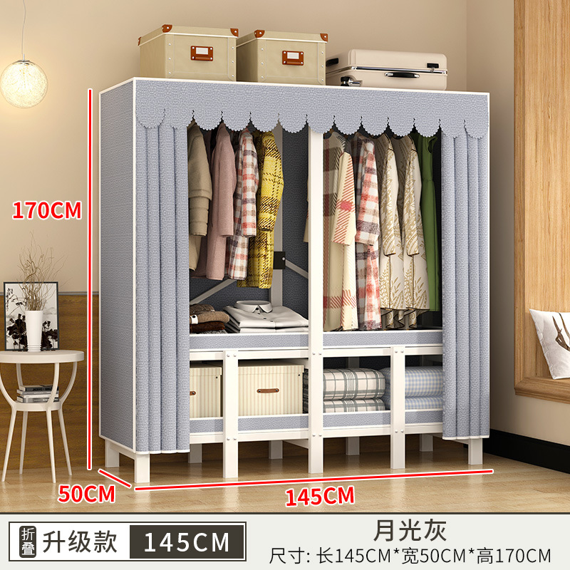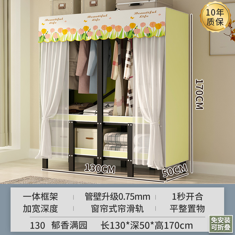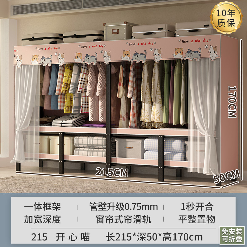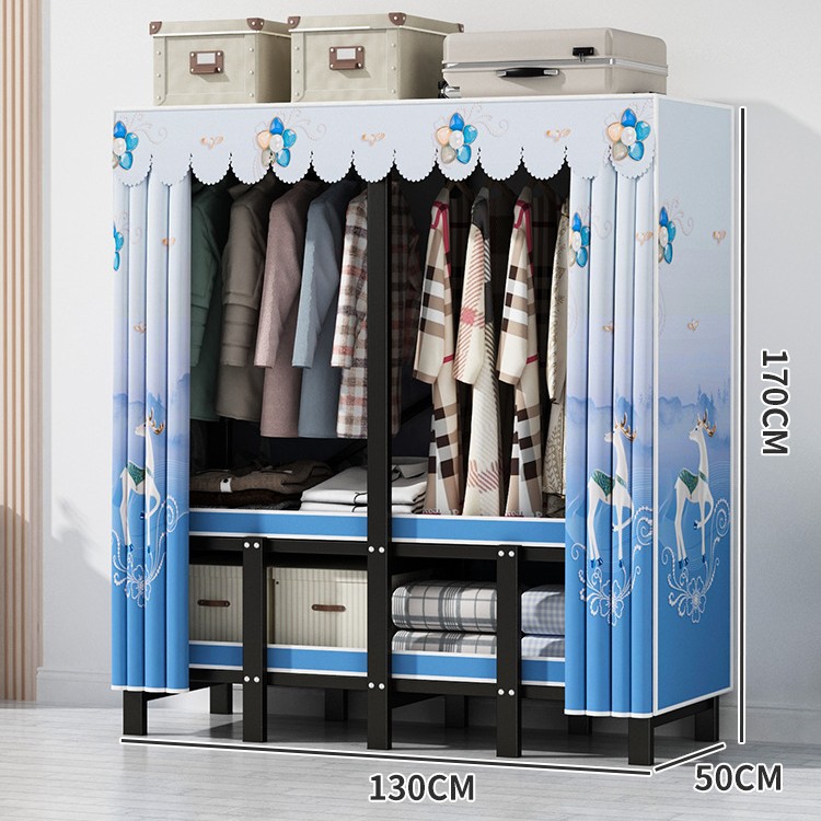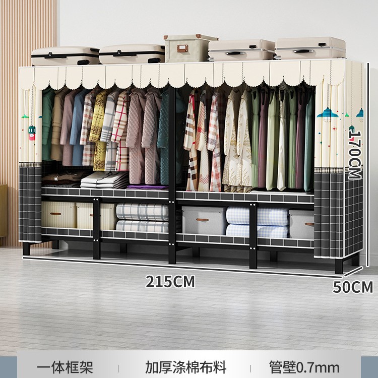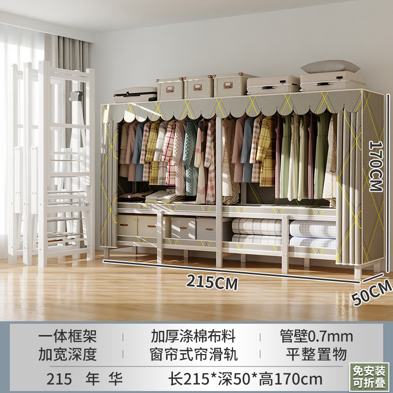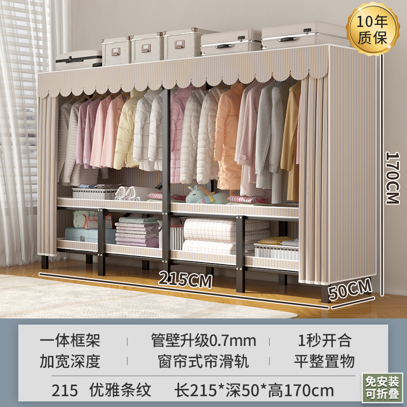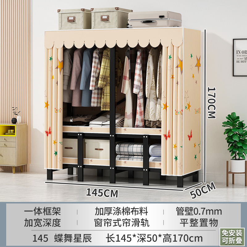 설치 무료 간단한 천 옷장 침실 접이식 가정용 수납 캐비닛 렌탈룸 기숙사 경제적 인 철골 걸이 옷장