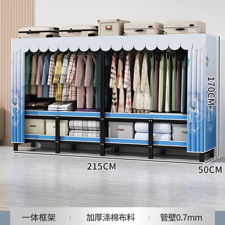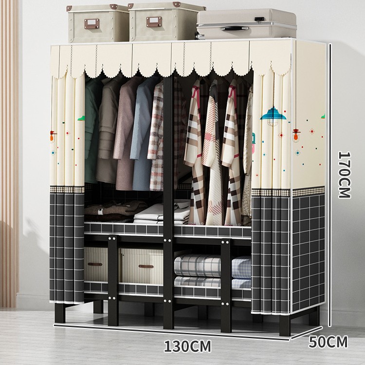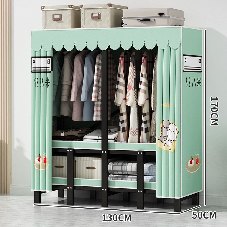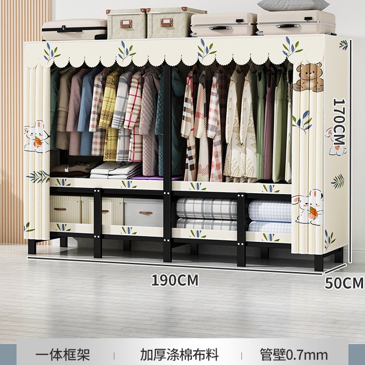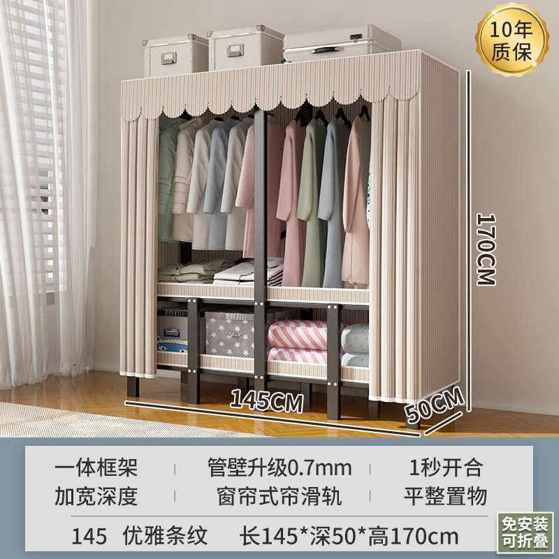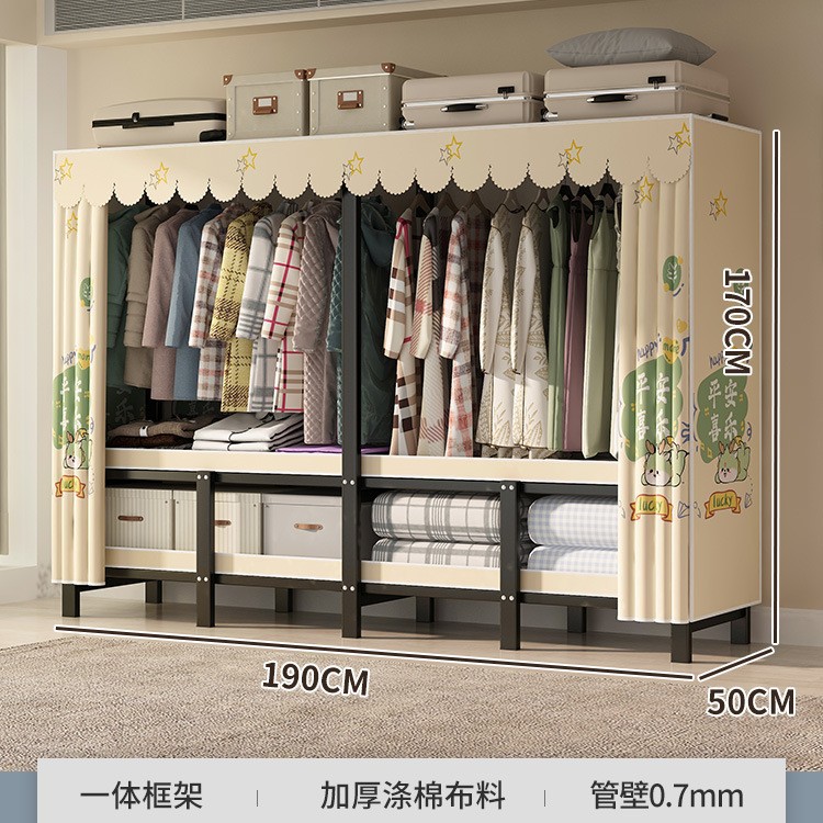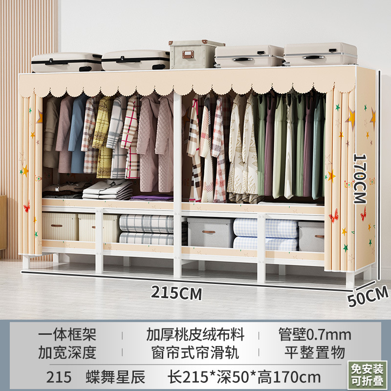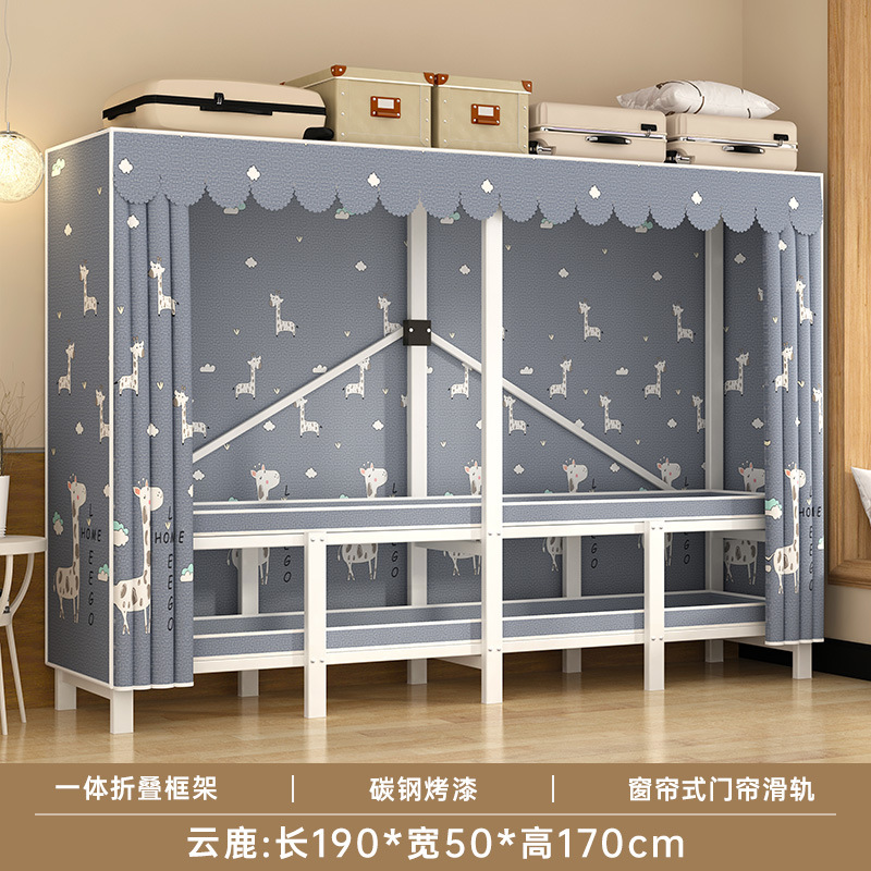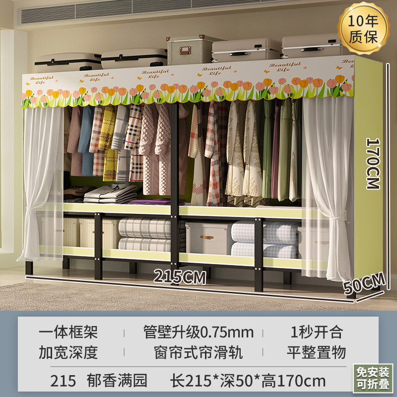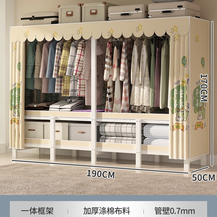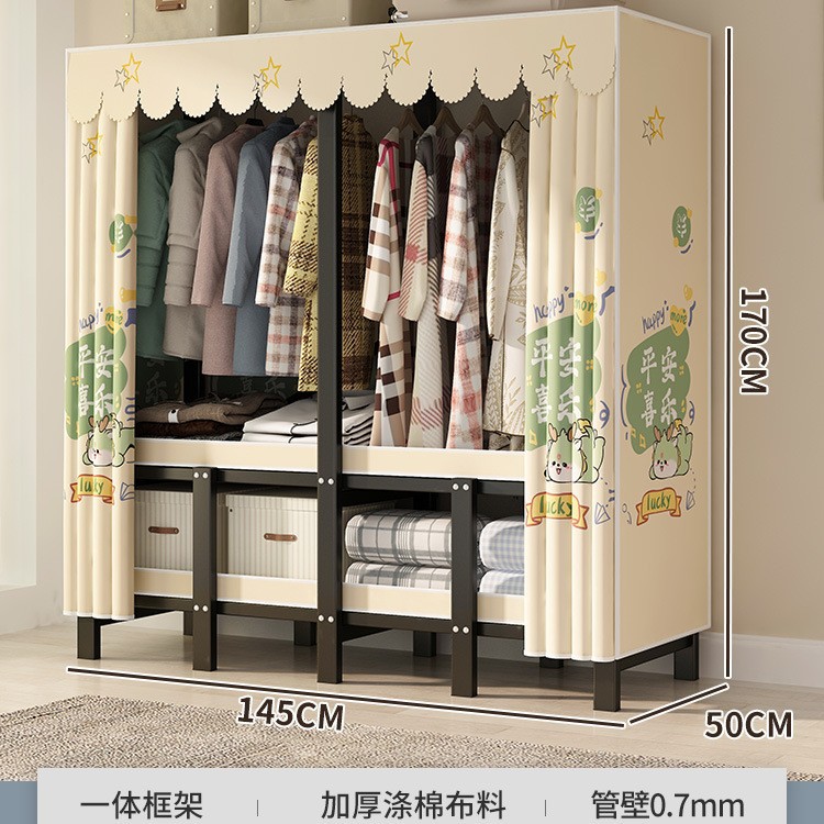 설치 무료 간단한 천 옷장 침실 접이식 가정용 수납 캐비닛 렌탈룸 기숙사 경제적 인 철골 걸이 옷장
