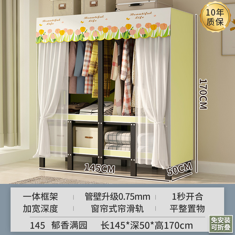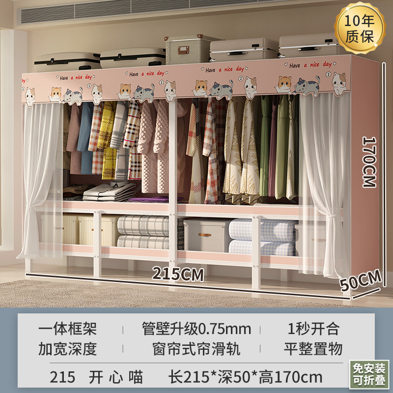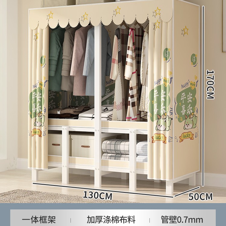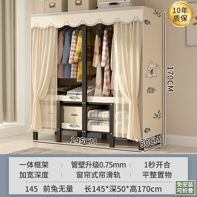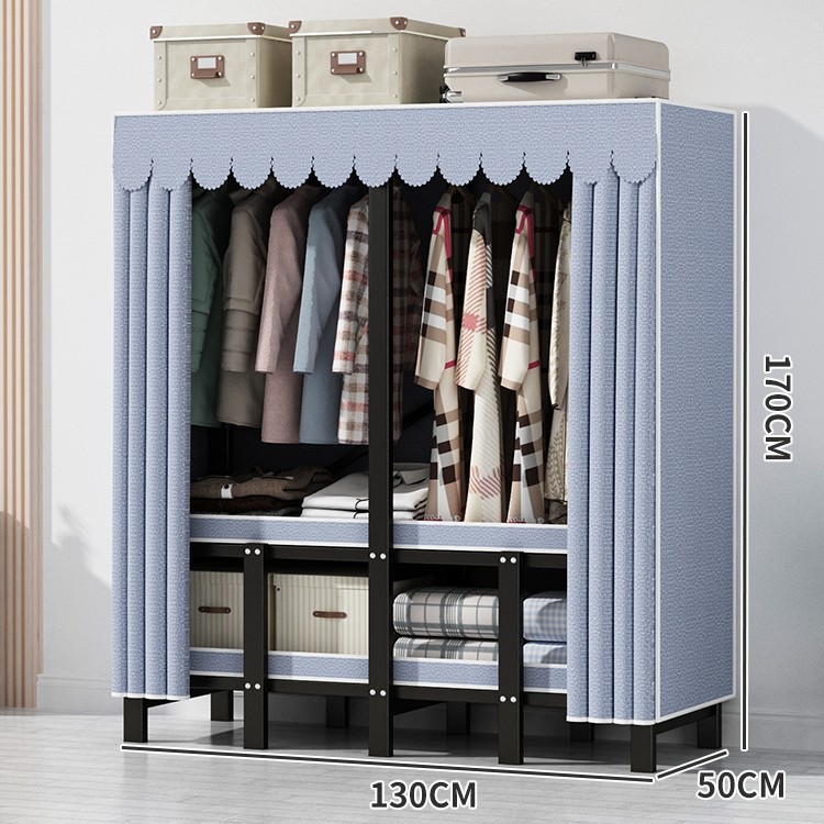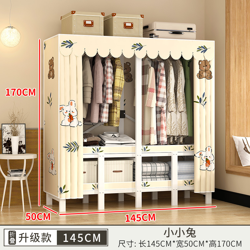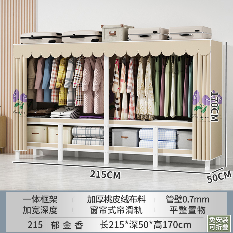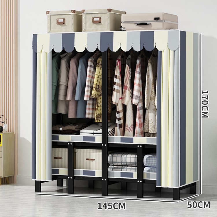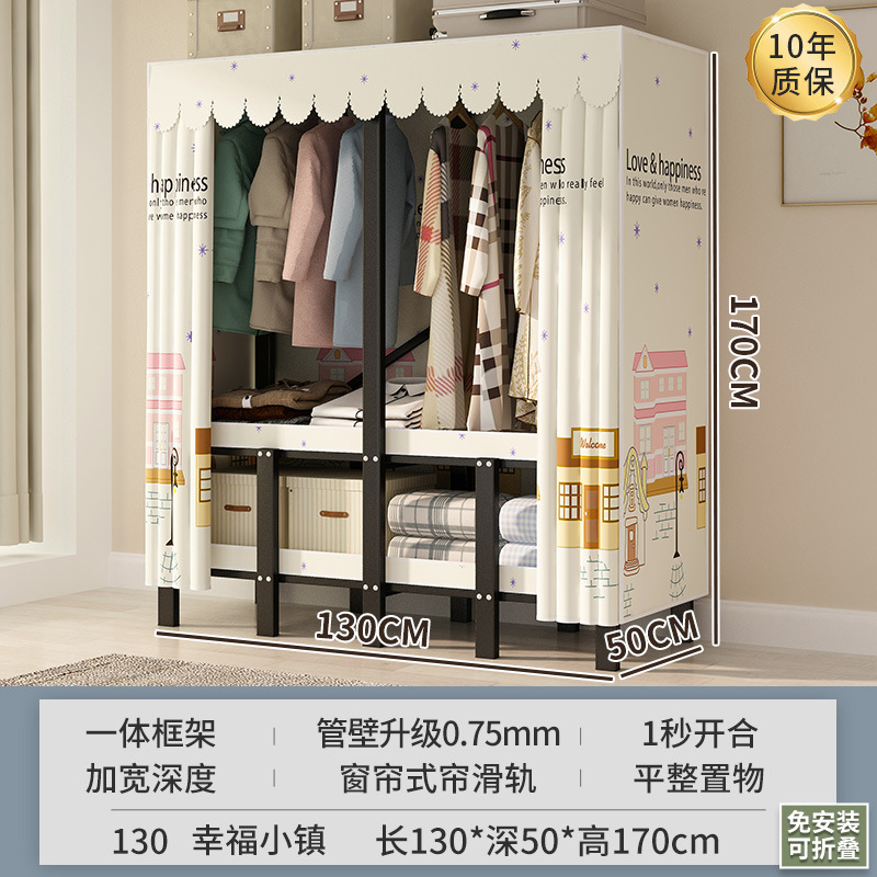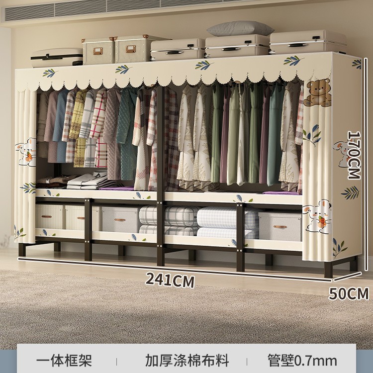 설치 무료 간단한 천 옷장 침실 접이식 가정용 수납 캐비닛 렌탈룸 기숙사 경제적 인 철골 걸이 옷장