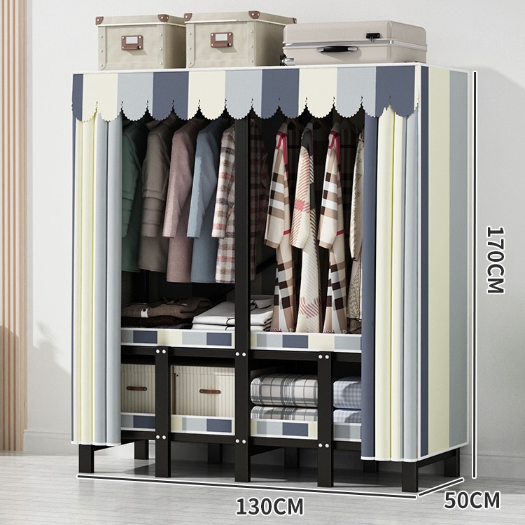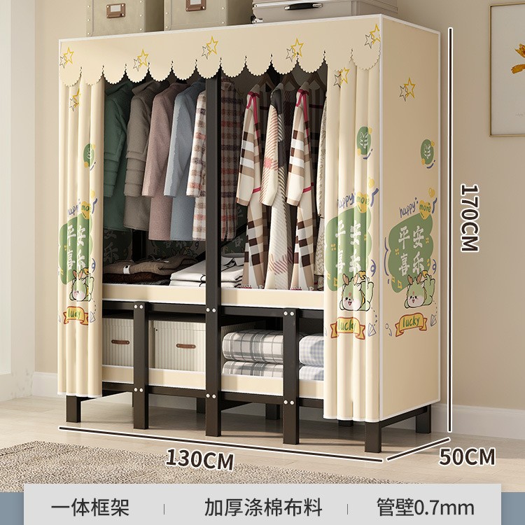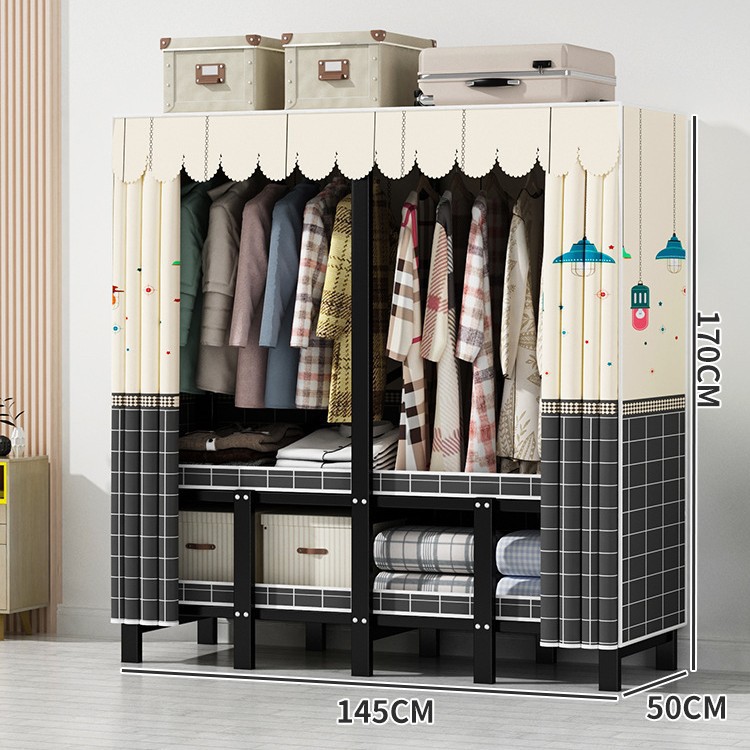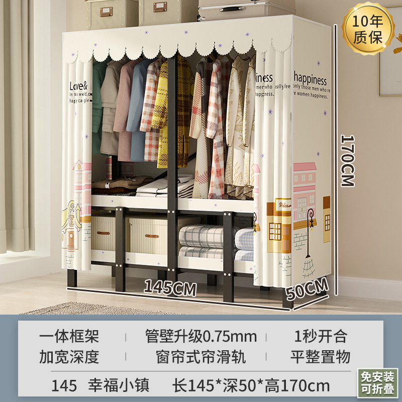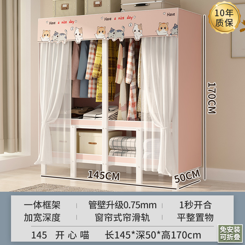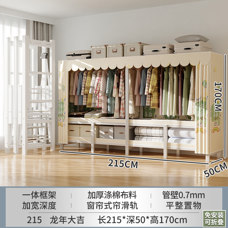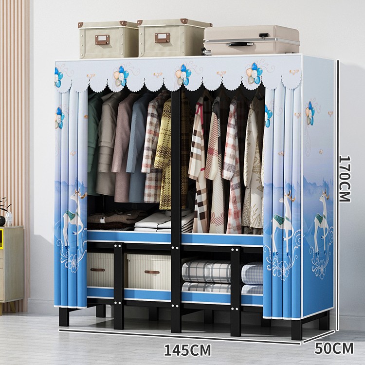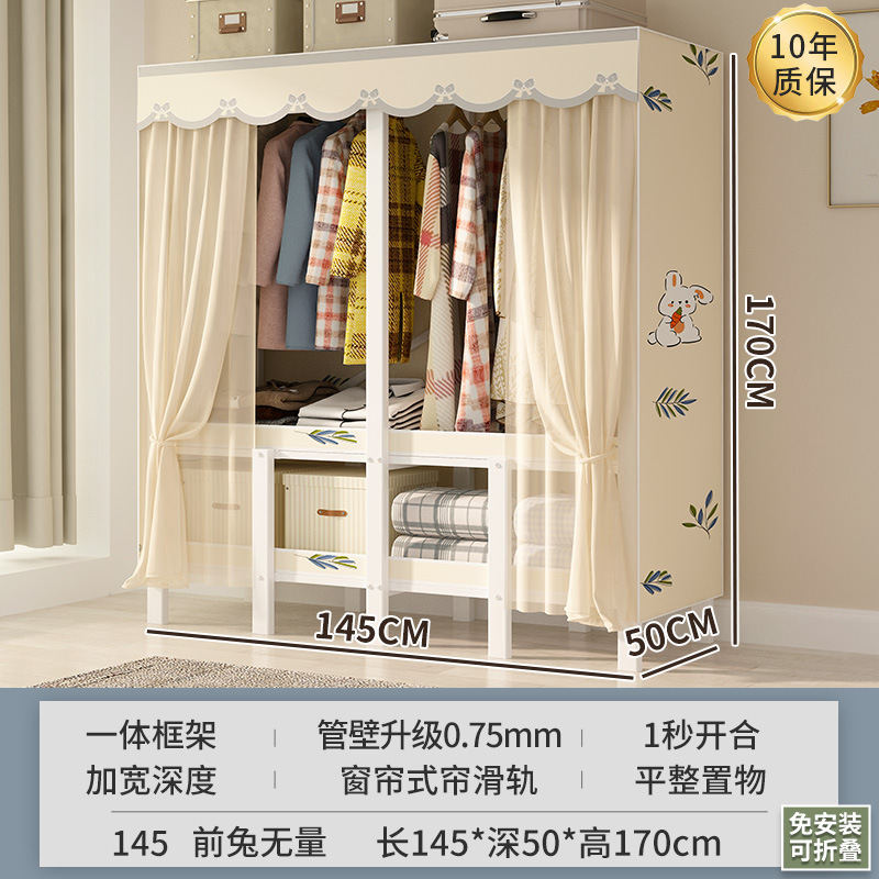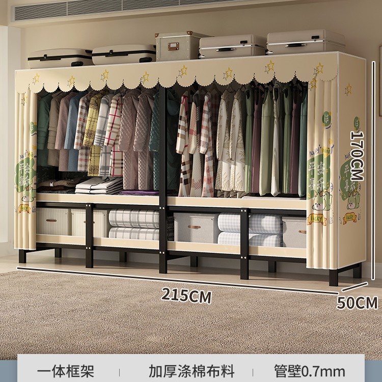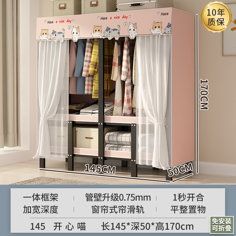 설치 무료 간단한 천 옷장 침실 접이식 가정용 수납 캐비닛 렌탈룸 기숙사 경제적 인 철골 걸이 옷장