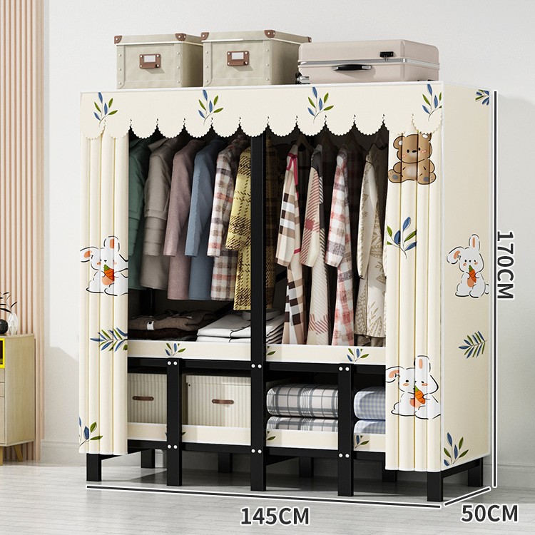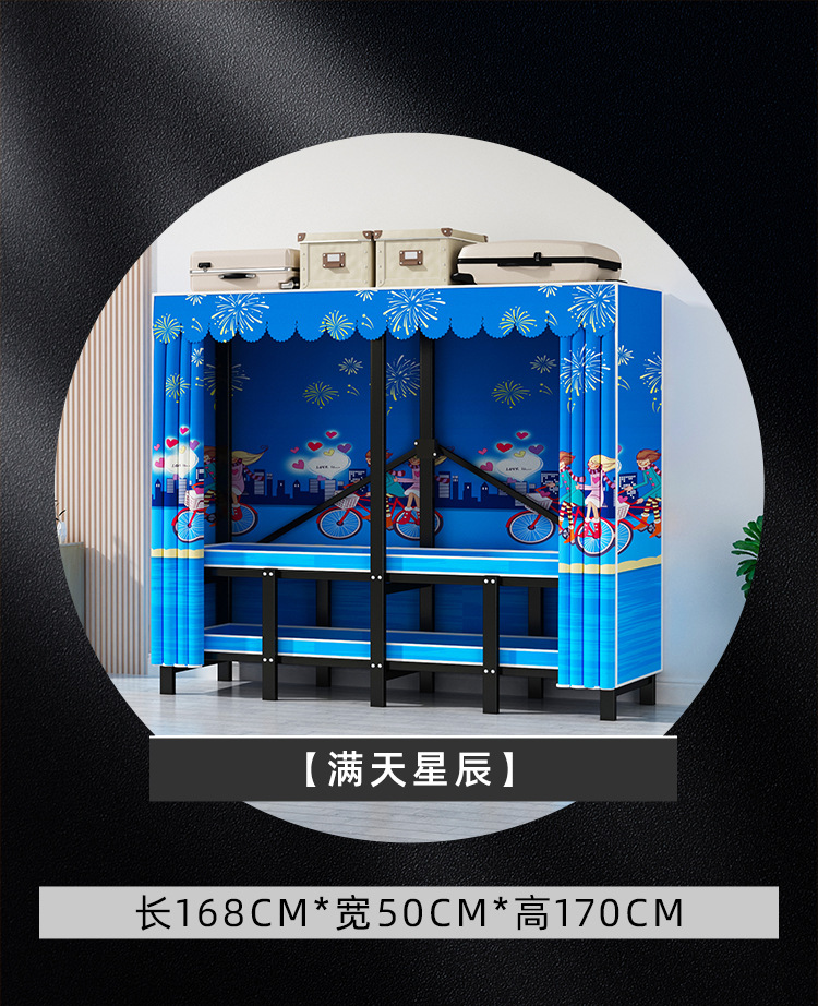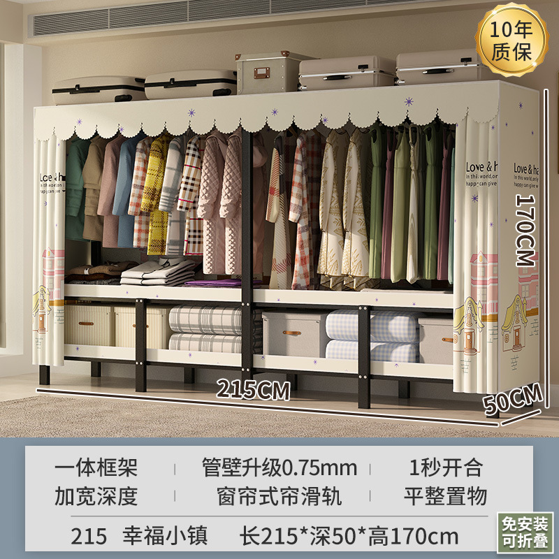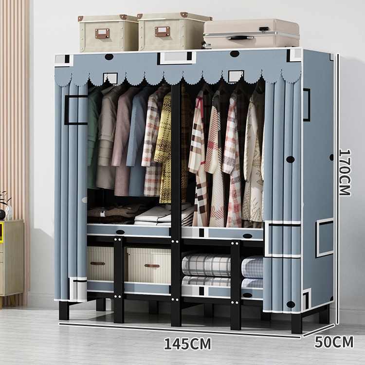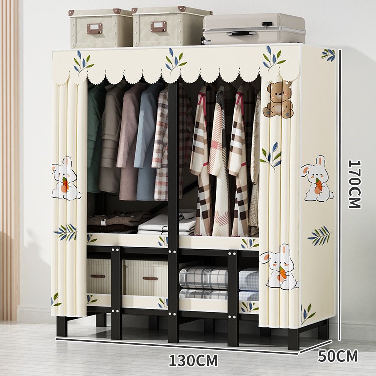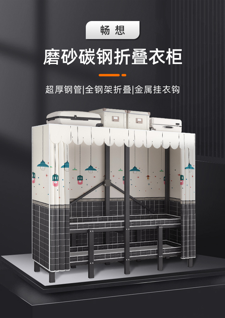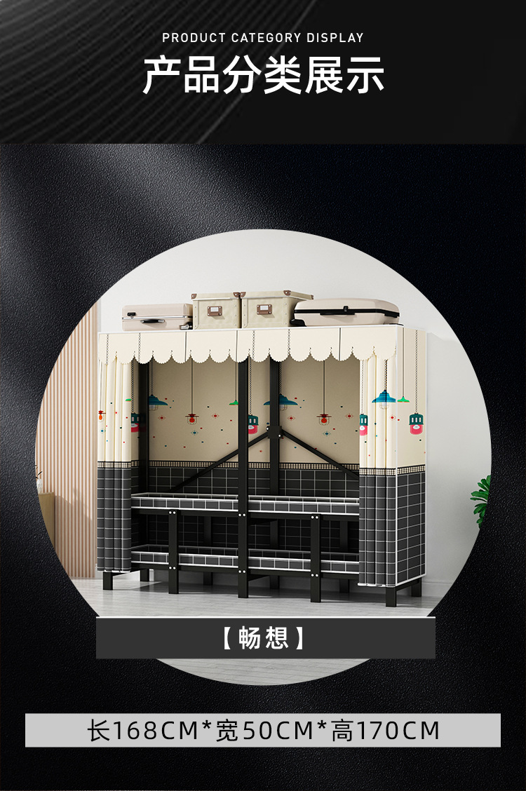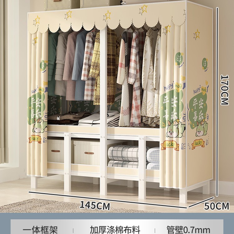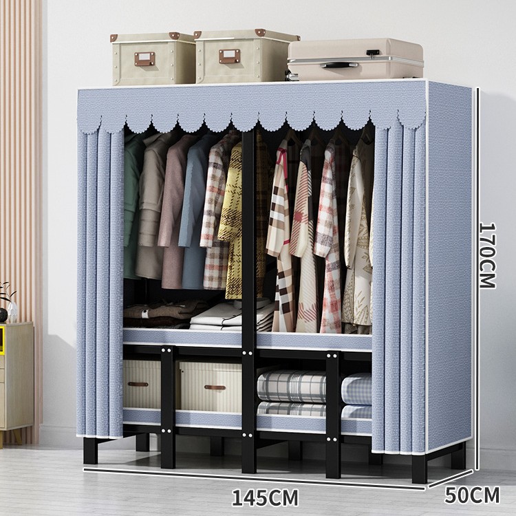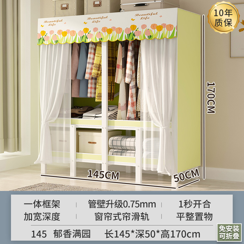 설치 무료 간단한 천 옷장 침실 접이식 가정용 수납 캐비닛 렌탈룸 기숙사 경제적 인 철골 걸이 옷장