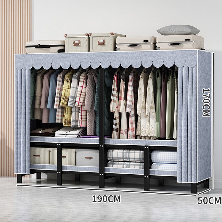 설치 무료 간단한 천 옷장 침실 접이식 가정용 수납 캐비닛 렌탈룸 기숙사 경제적 인 철골 걸이 옷장스토어 가기