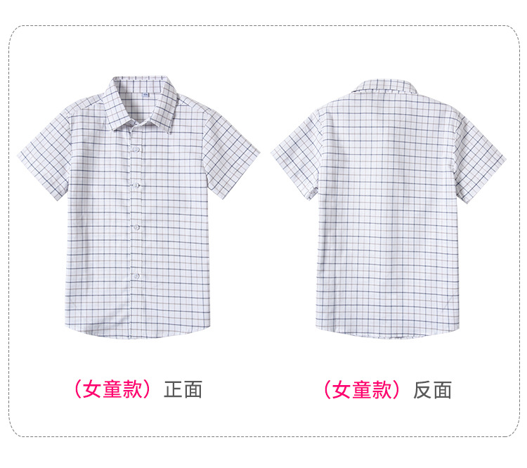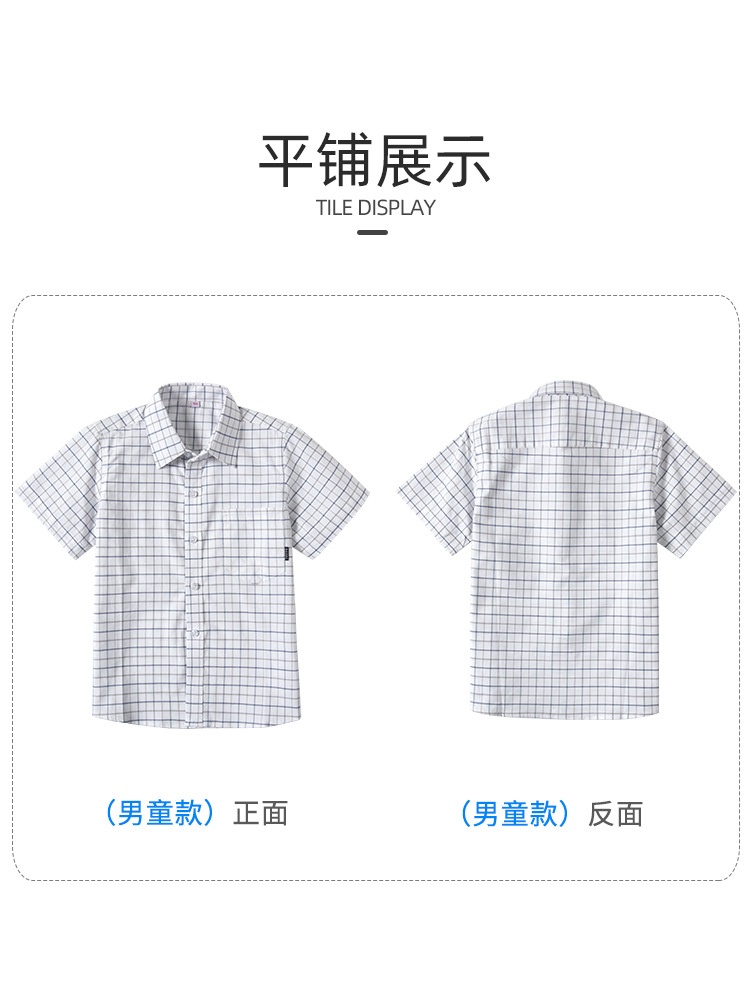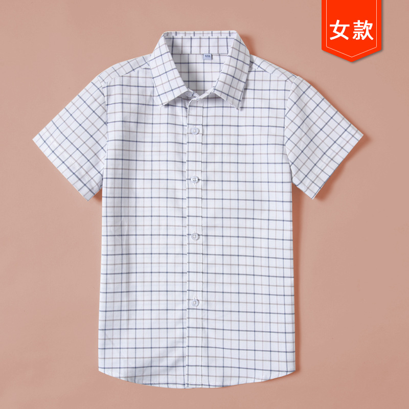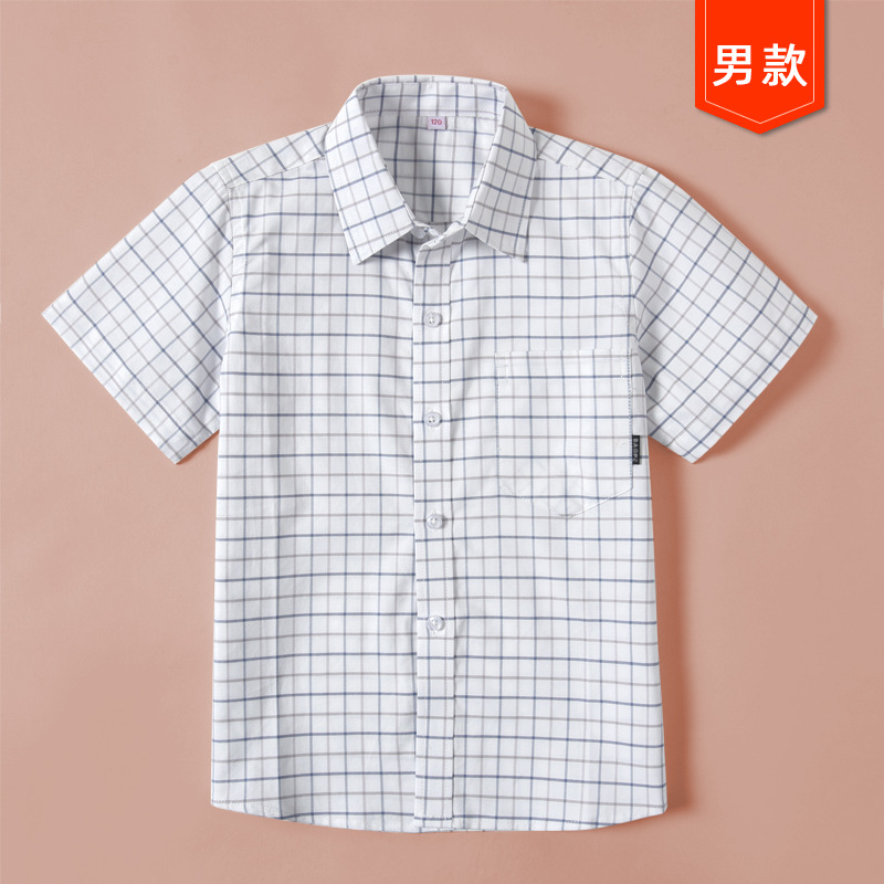 어린이 교복 셔츠 소년 소녀 여름 얇은 면 반팔 탑 중학생 격자 무늬 셔츠