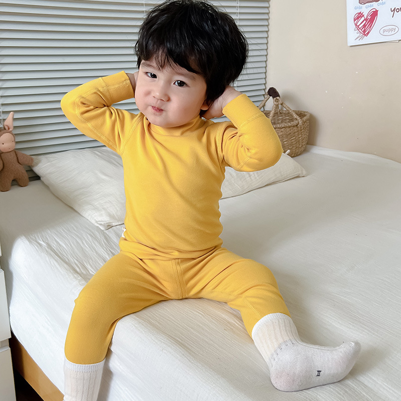 어린이 가을과 겨울 미드 칼라 가을 옷 긴 존스와 세트 소년의 뼈없는 열 속옷 아기의 단색 면 잠옷스토어 가기