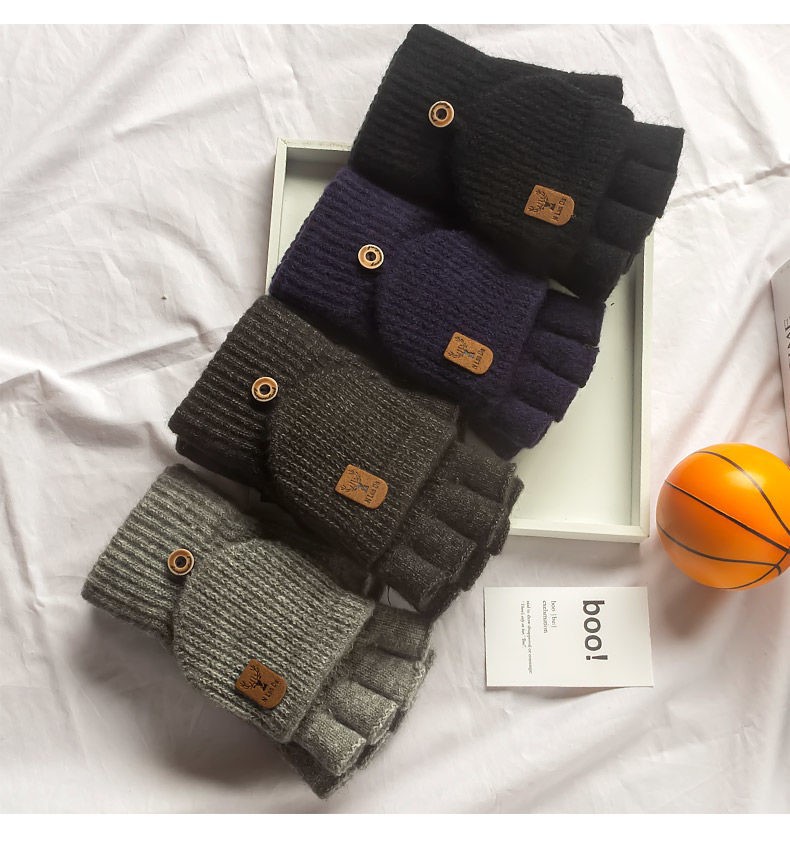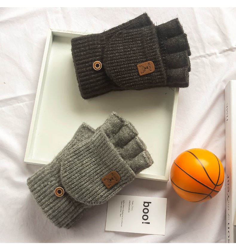 겨울 남자의 반 손가락 니트 장갑 기모 방한 플립 커버 이중 목적 터치 스크린 따뜻한 쓰기 사이클링 장갑 재고스토어 가기