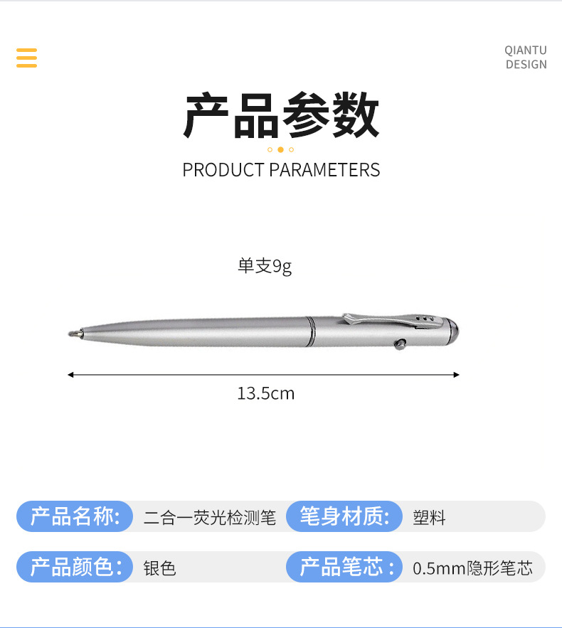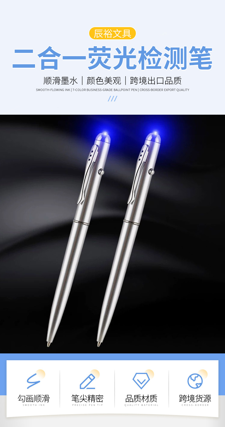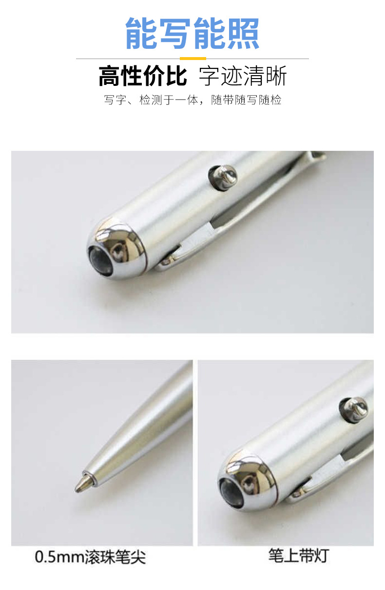 보이지 않는 잉크 LED 라이트 펜 위조지폐 감별 펜 맞춤형 로고 발광 볼펜 자외선 볼펜 UV 다기능