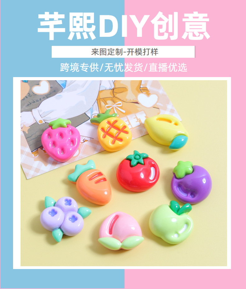 확장 된 과일 만화 밝은 DIY 크림 접착제 수제 휴대 전화 쉘 재료 머리핀 보석 재료 수지 액세서리스토어 가기