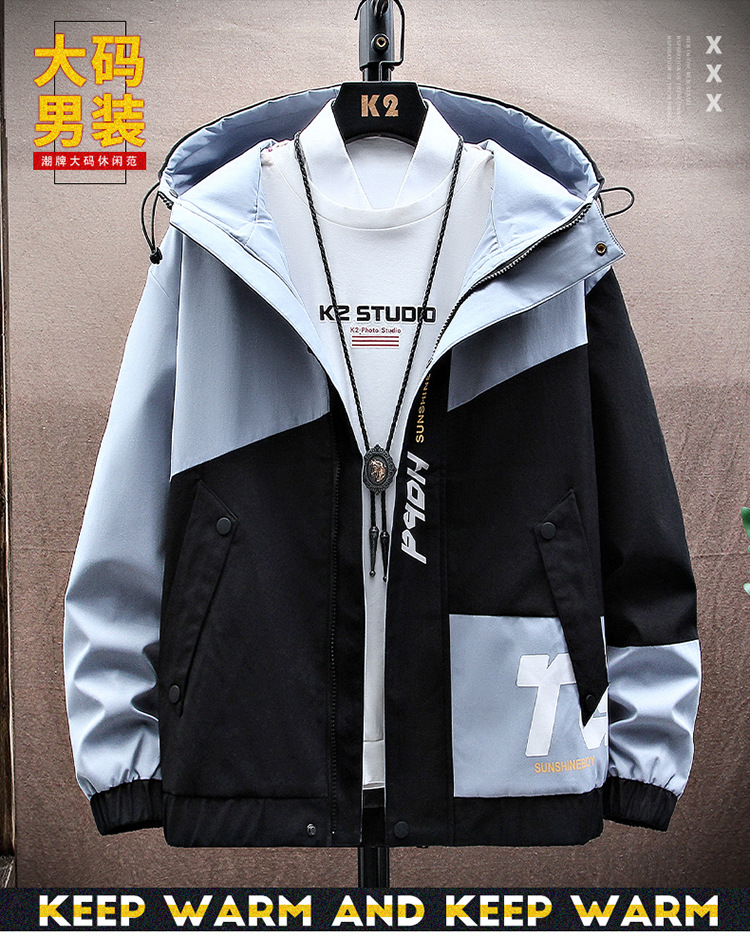 플러스 사이즈 재킷 남성 봄, 가을 한국 스타일 루즈 트렌디 재킷 뚱뚱한 남자 청소년 코트 탑 여름 새 스타일스토어 가기