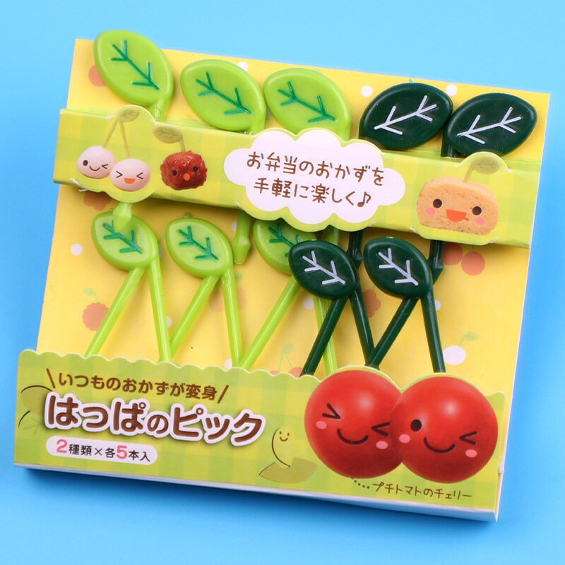 • 분기 된 잎 10pc 과일 포크 종이 카드