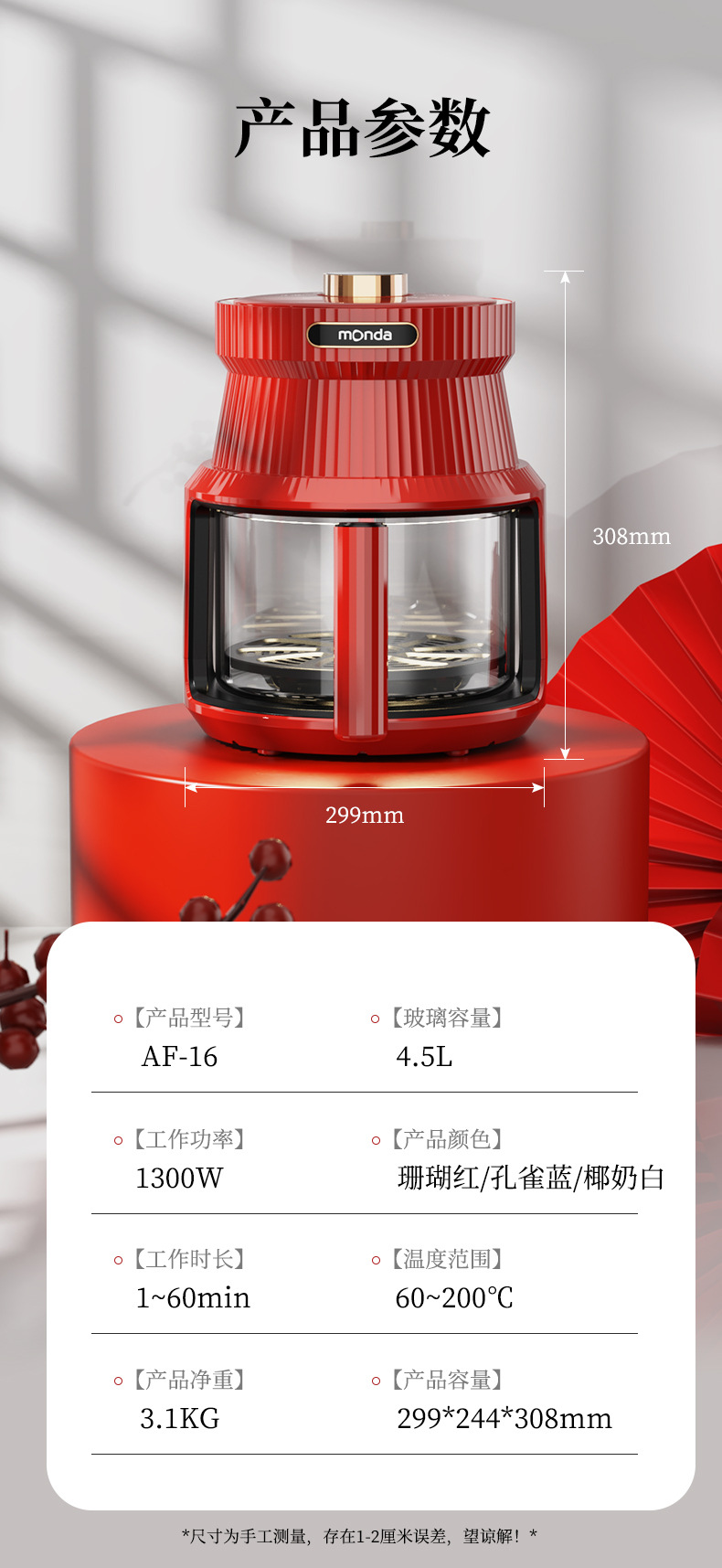 몬다 몬다 가정용 중국식 에어프라이어 대용량 지능형 감자 칩 기계 전기 프라이어 파노라마 보이는