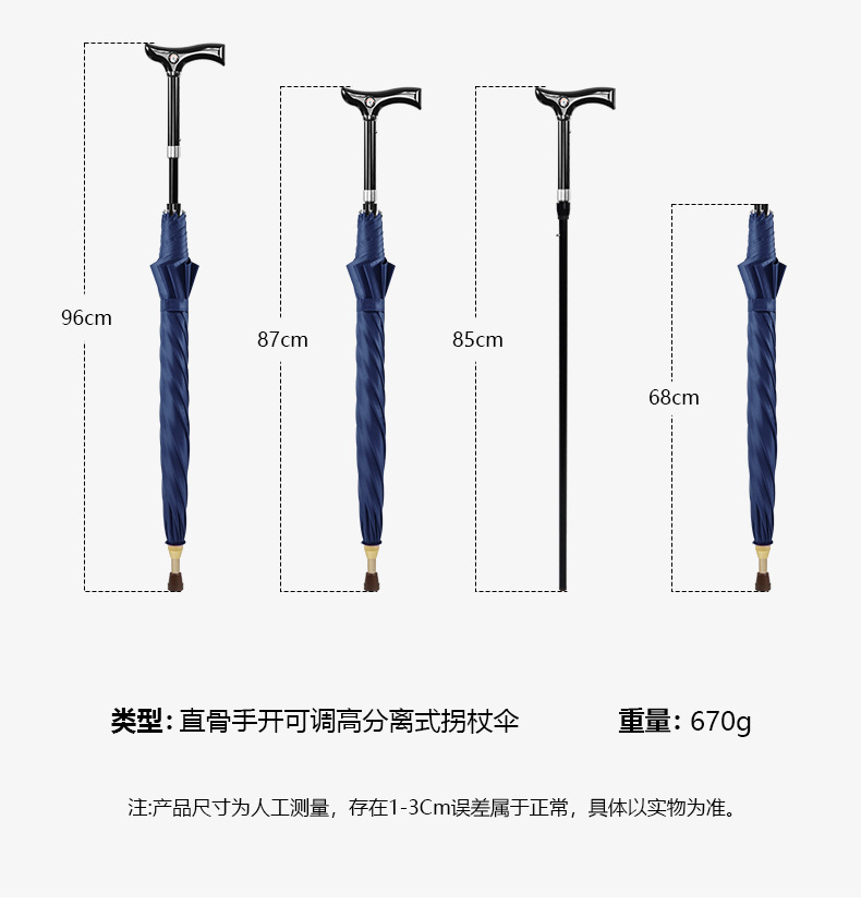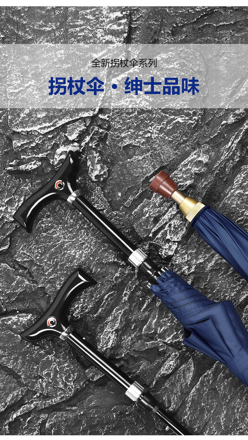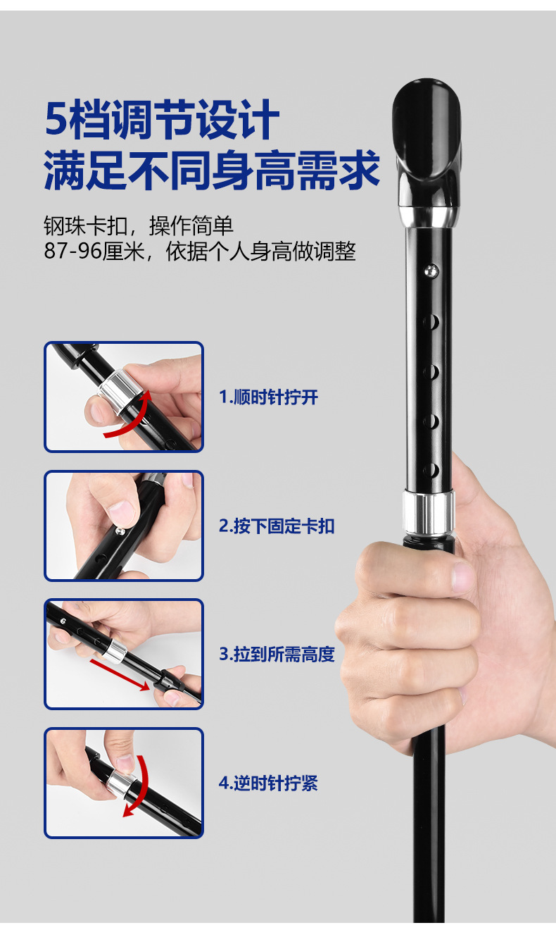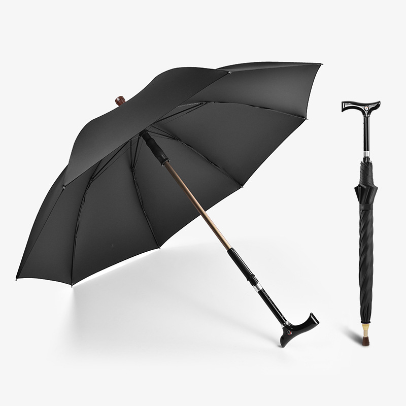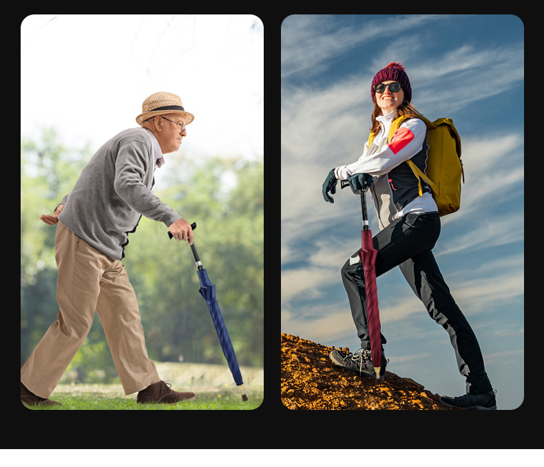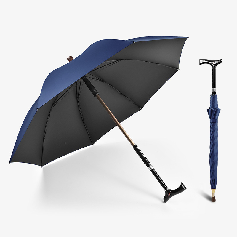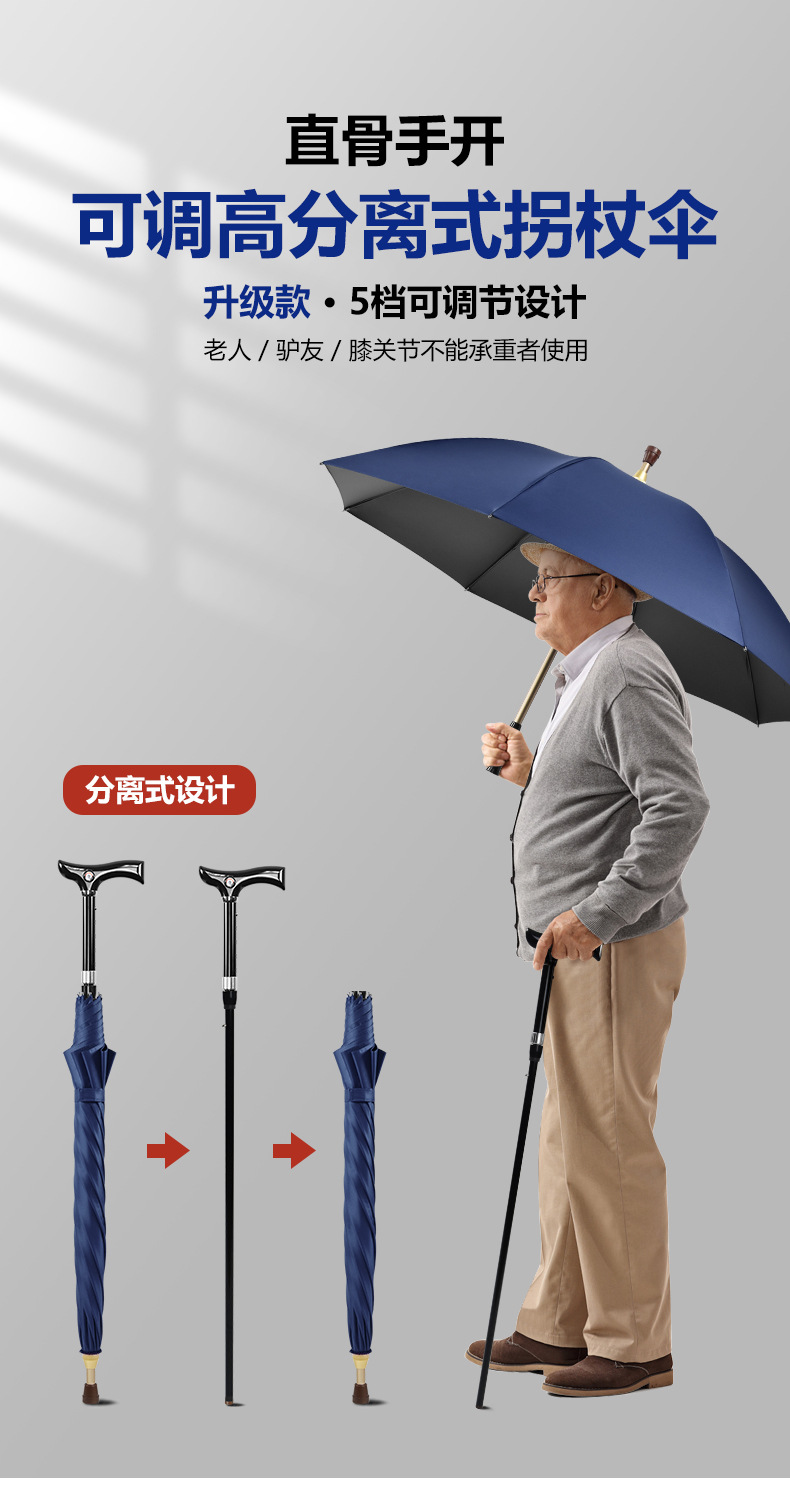 노인을위한 높이 조절 가능한 드로어블 지팡이 우산 다목적 재활 지팡이 우산 미끄럼 방지 분리 야외 등산 우산
